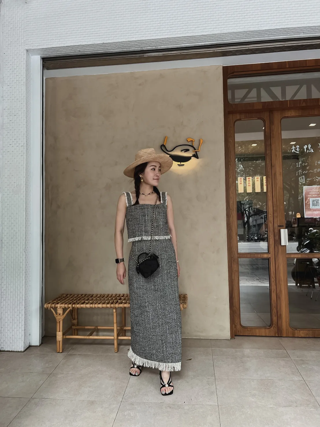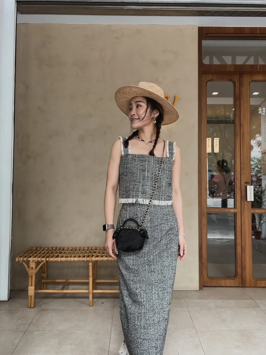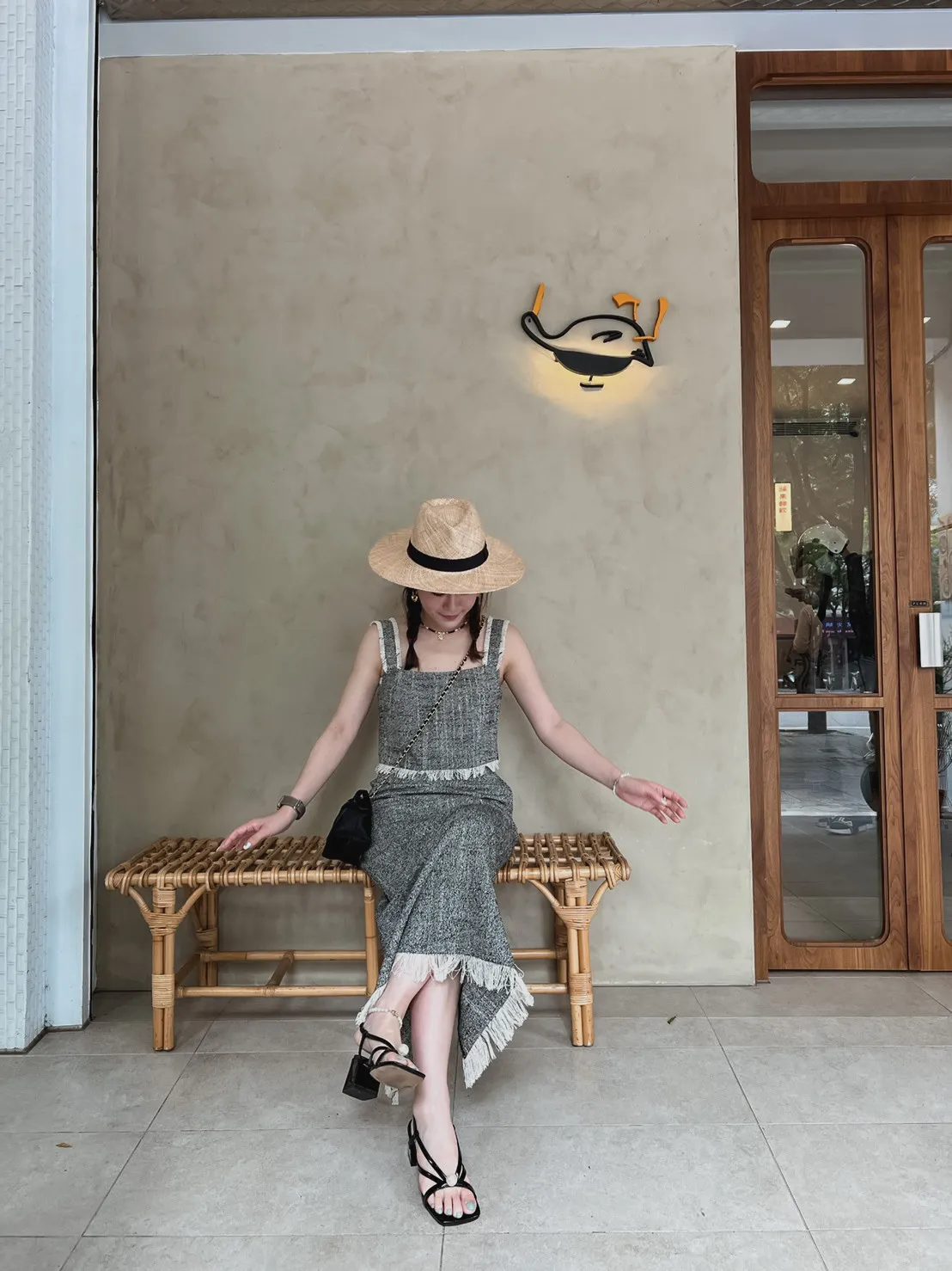 3097 夏日質感灰鬚鬚後開衩長裙(適合S~M)