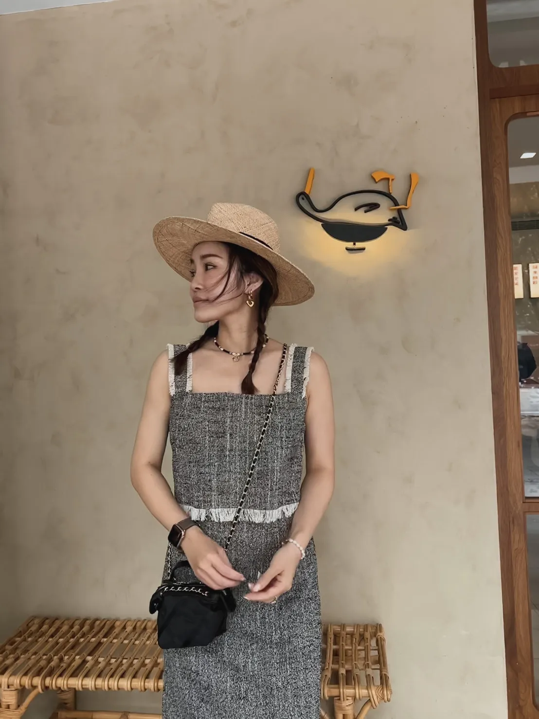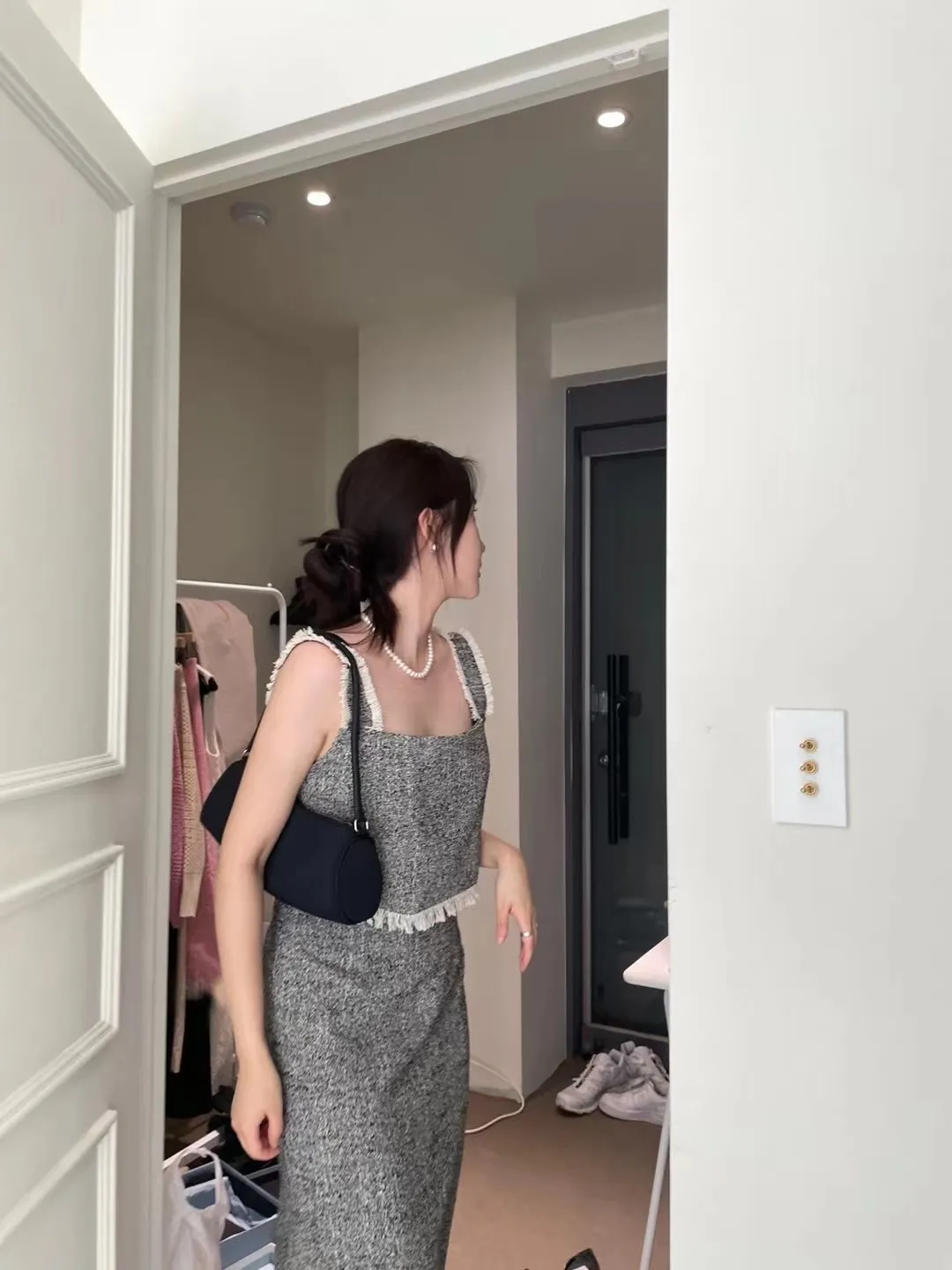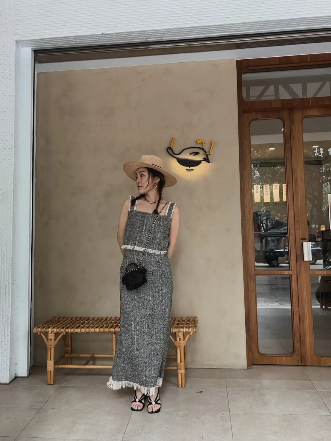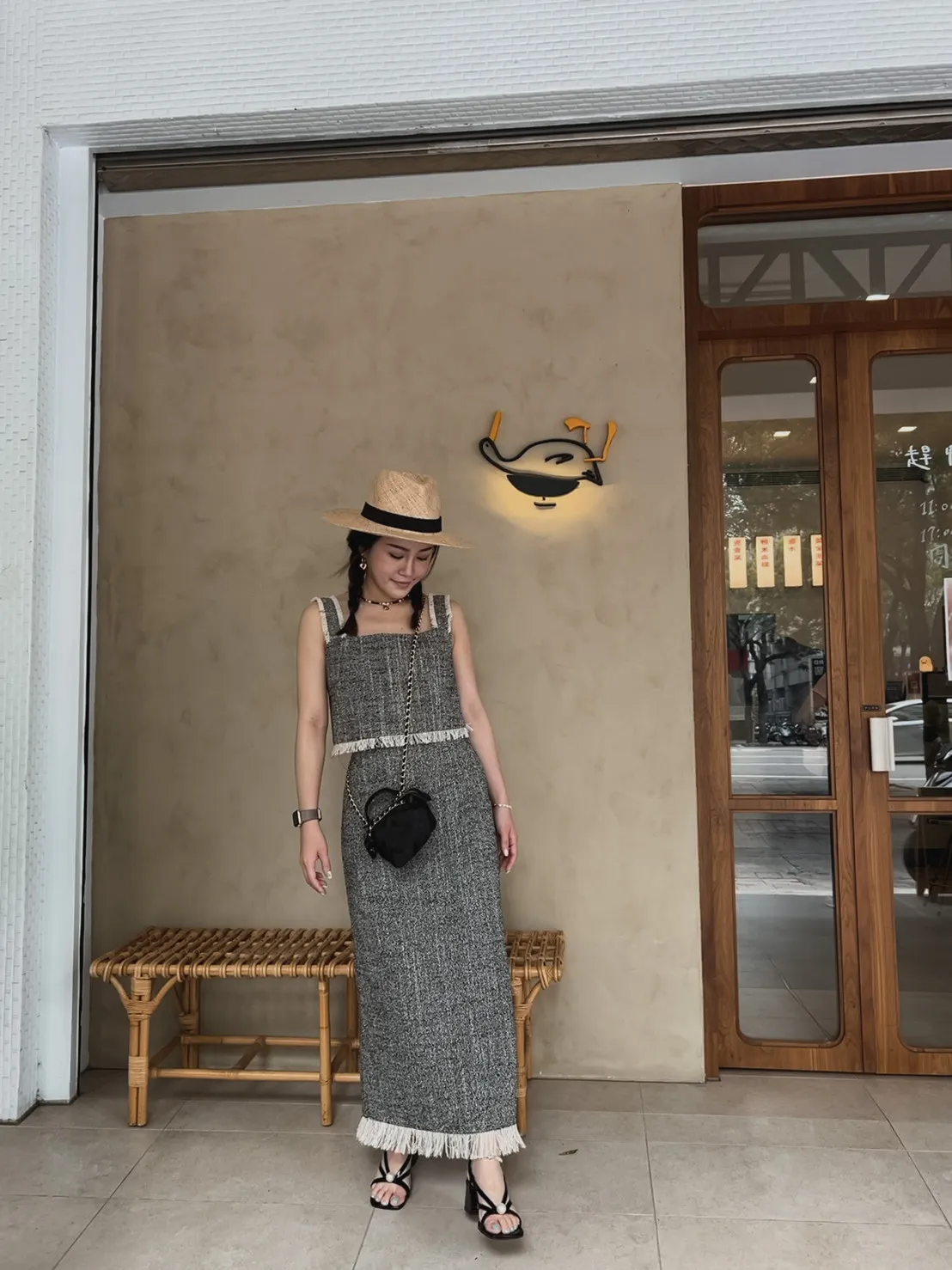 3097 夏日質感灰鬚鬚後開衩長裙(適合S~M)