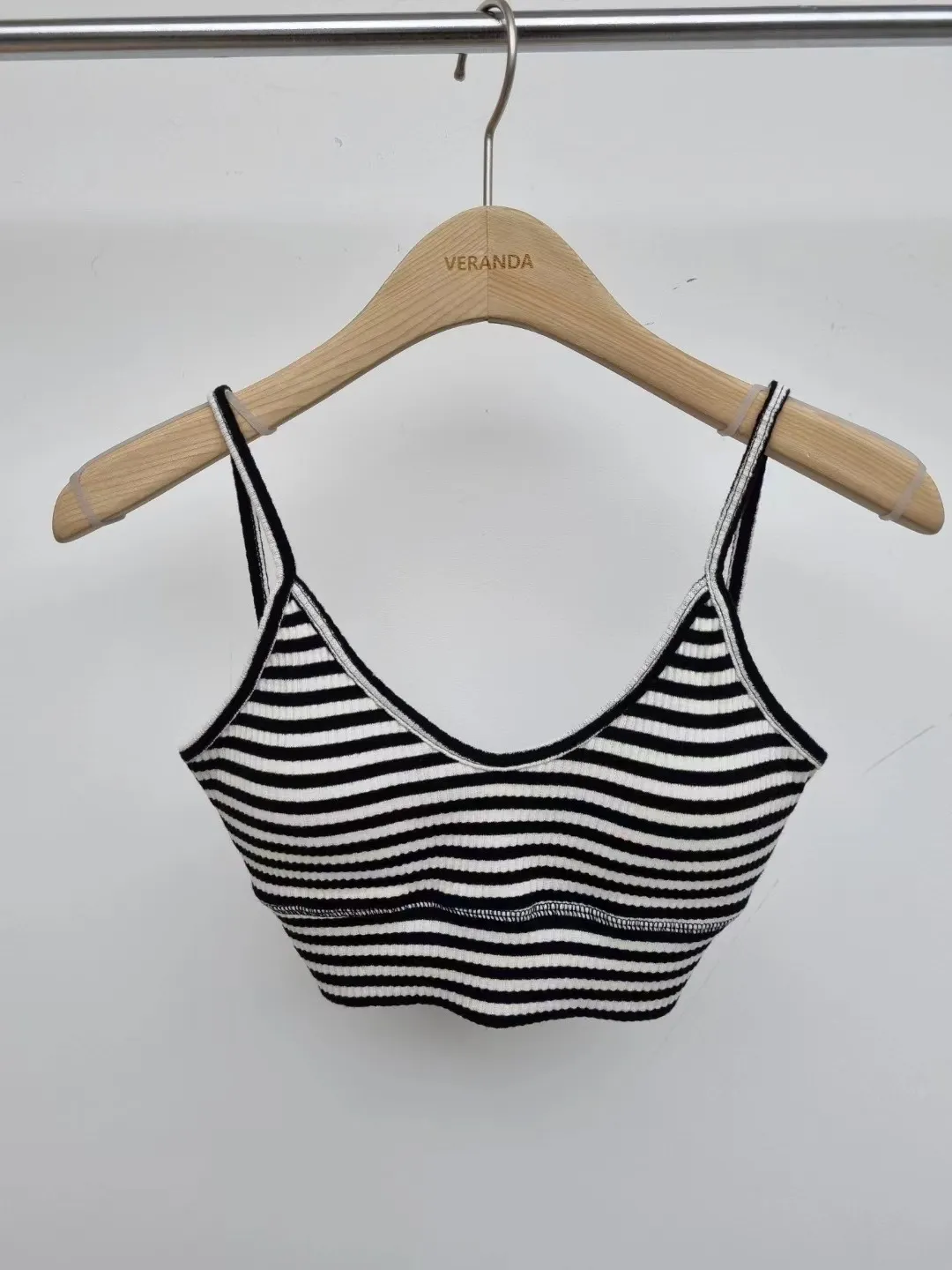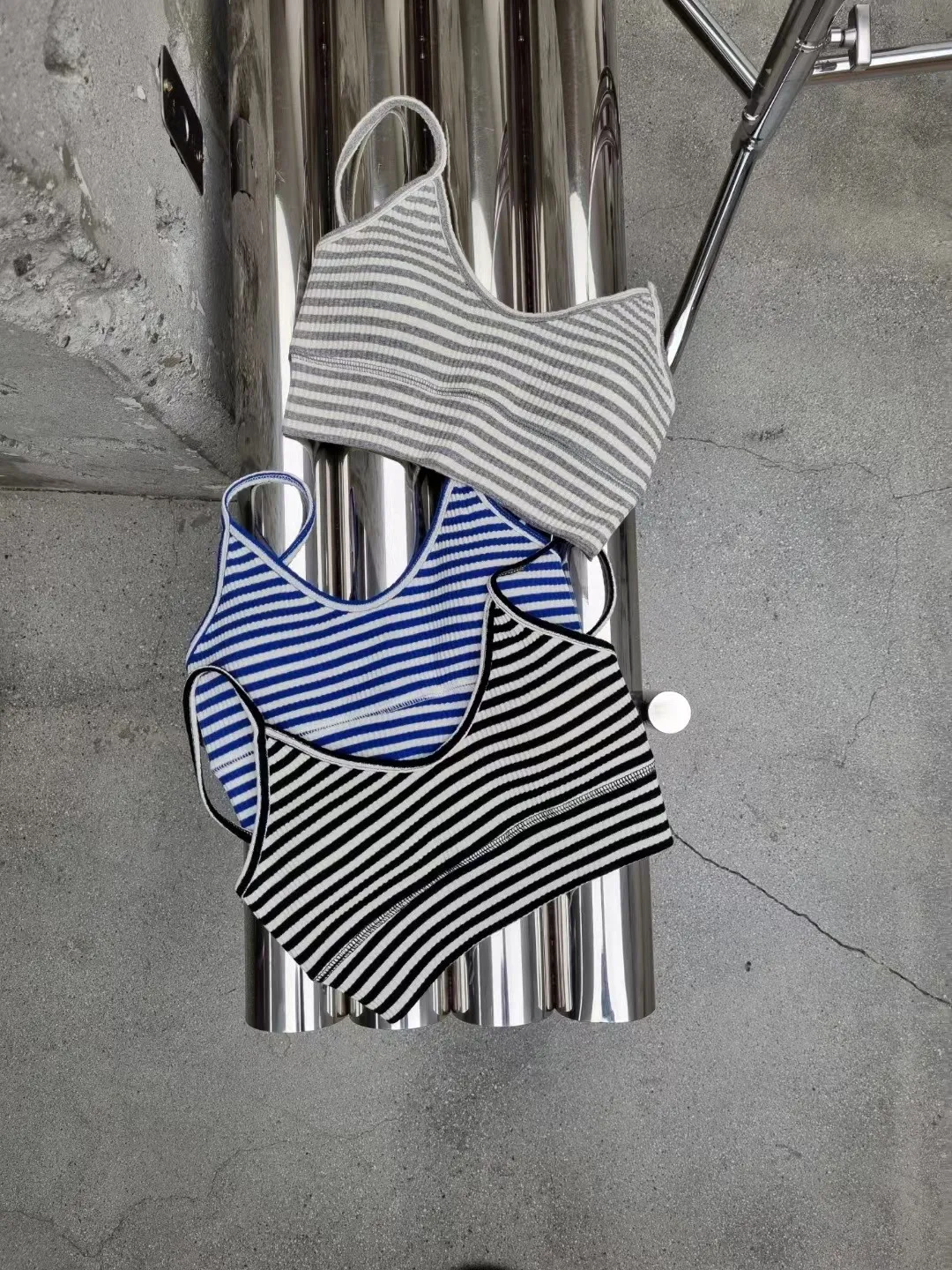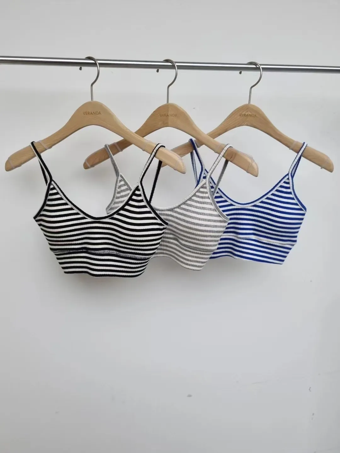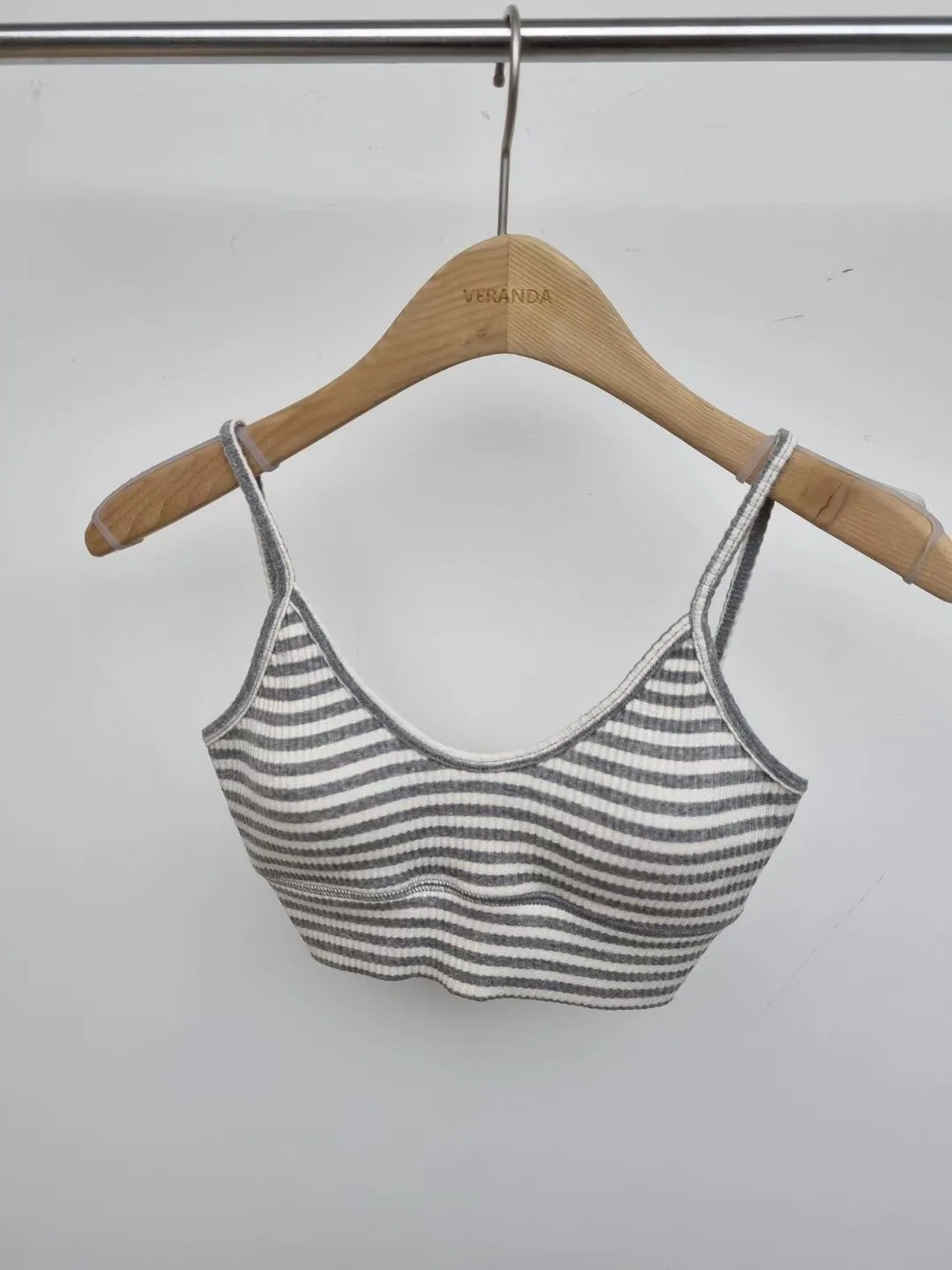 3331聚攏V領條紋背心bra top(灰)