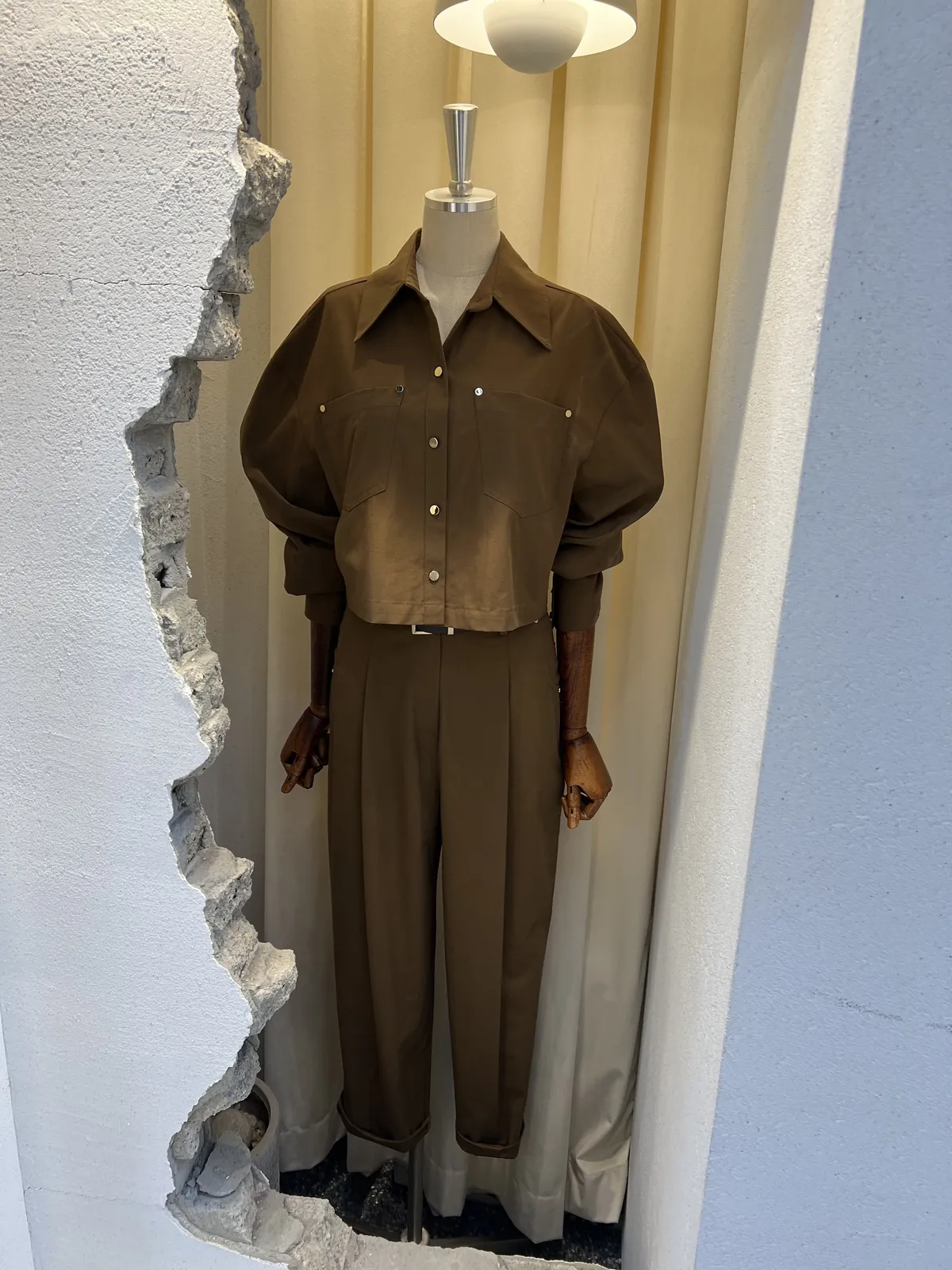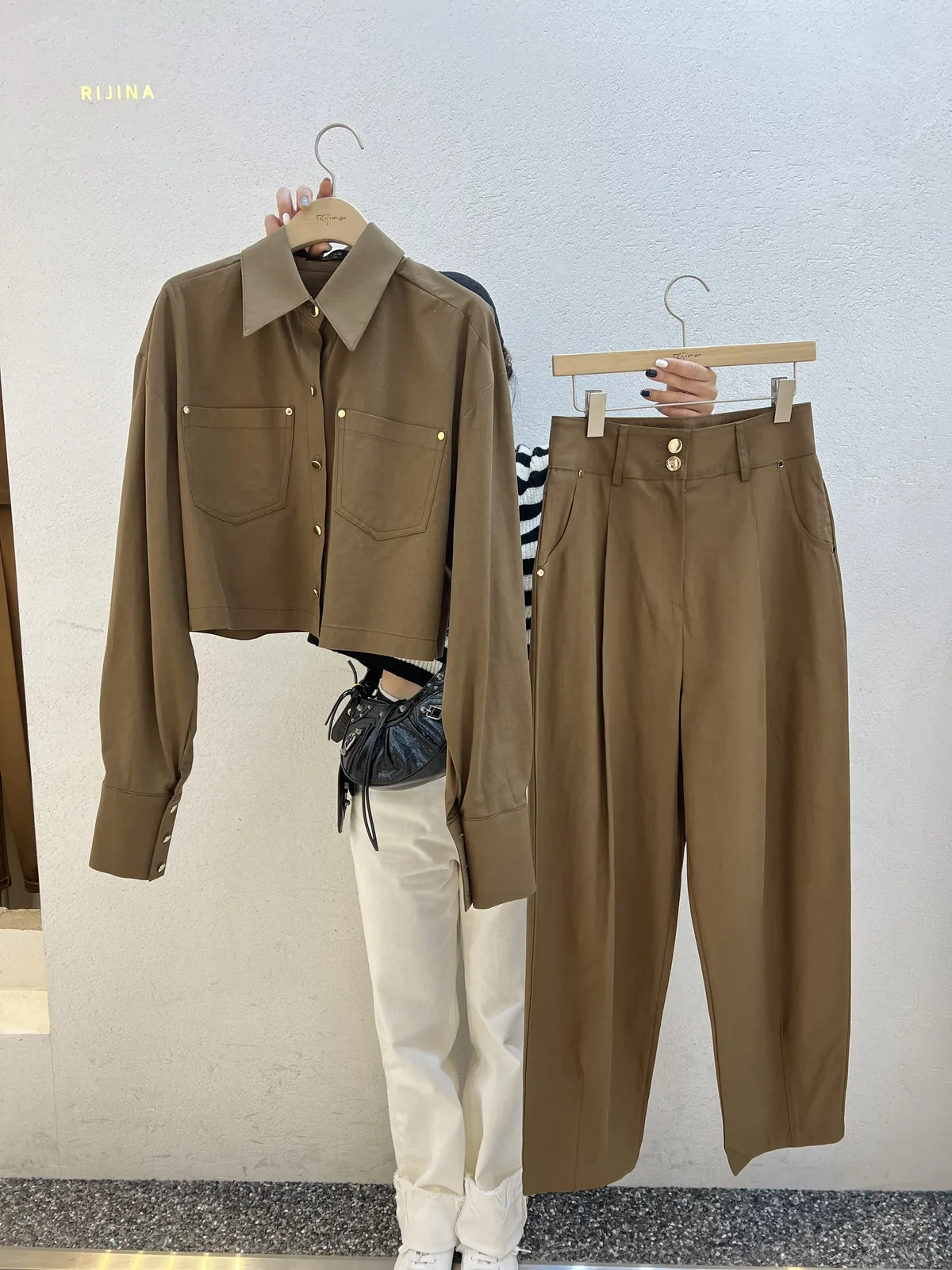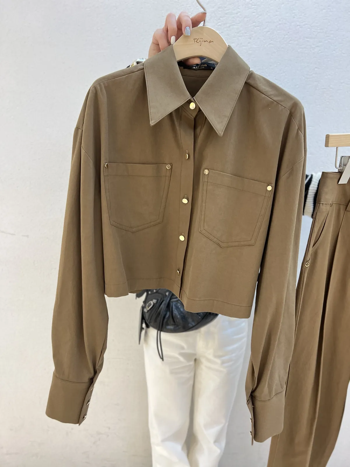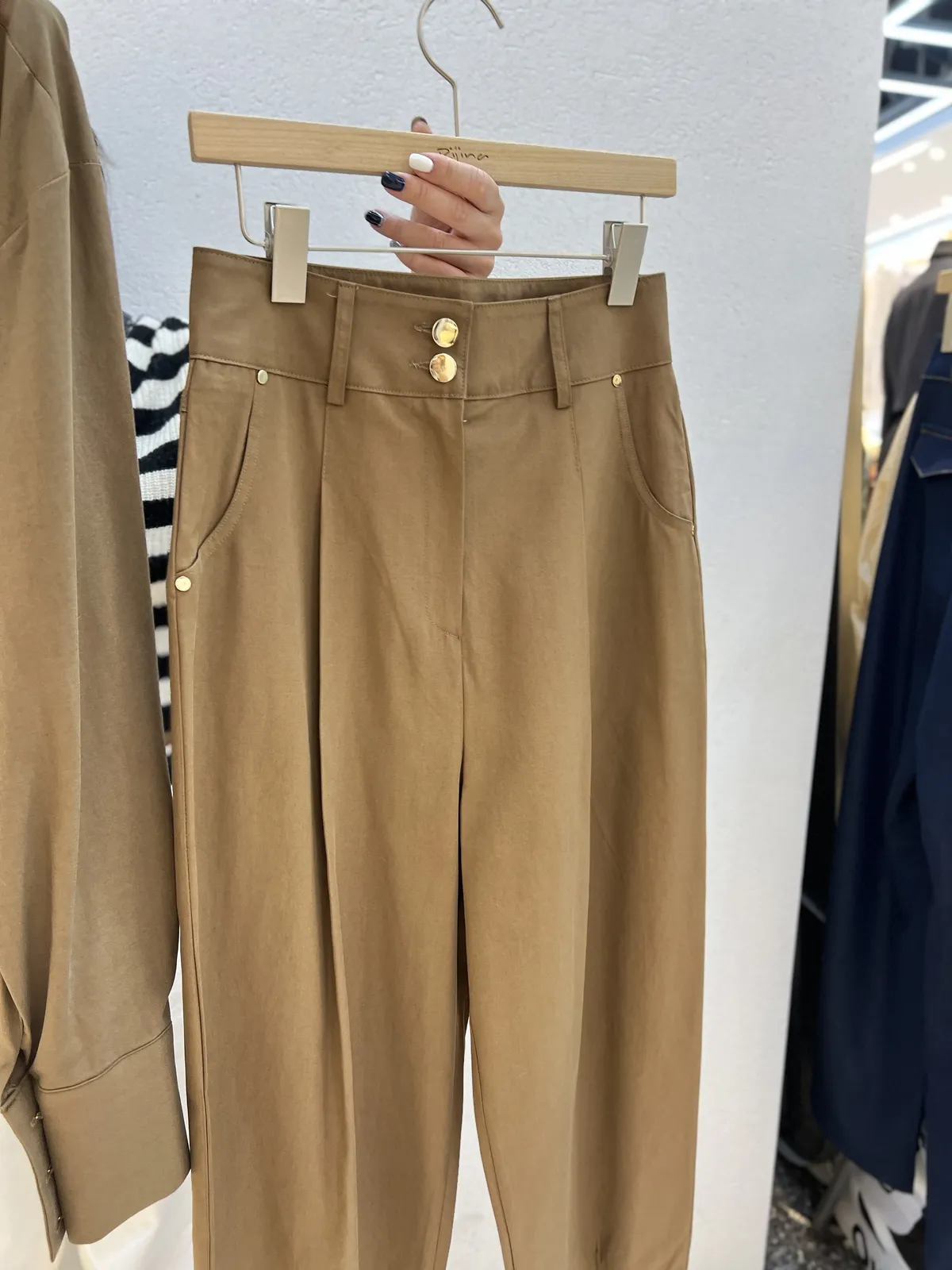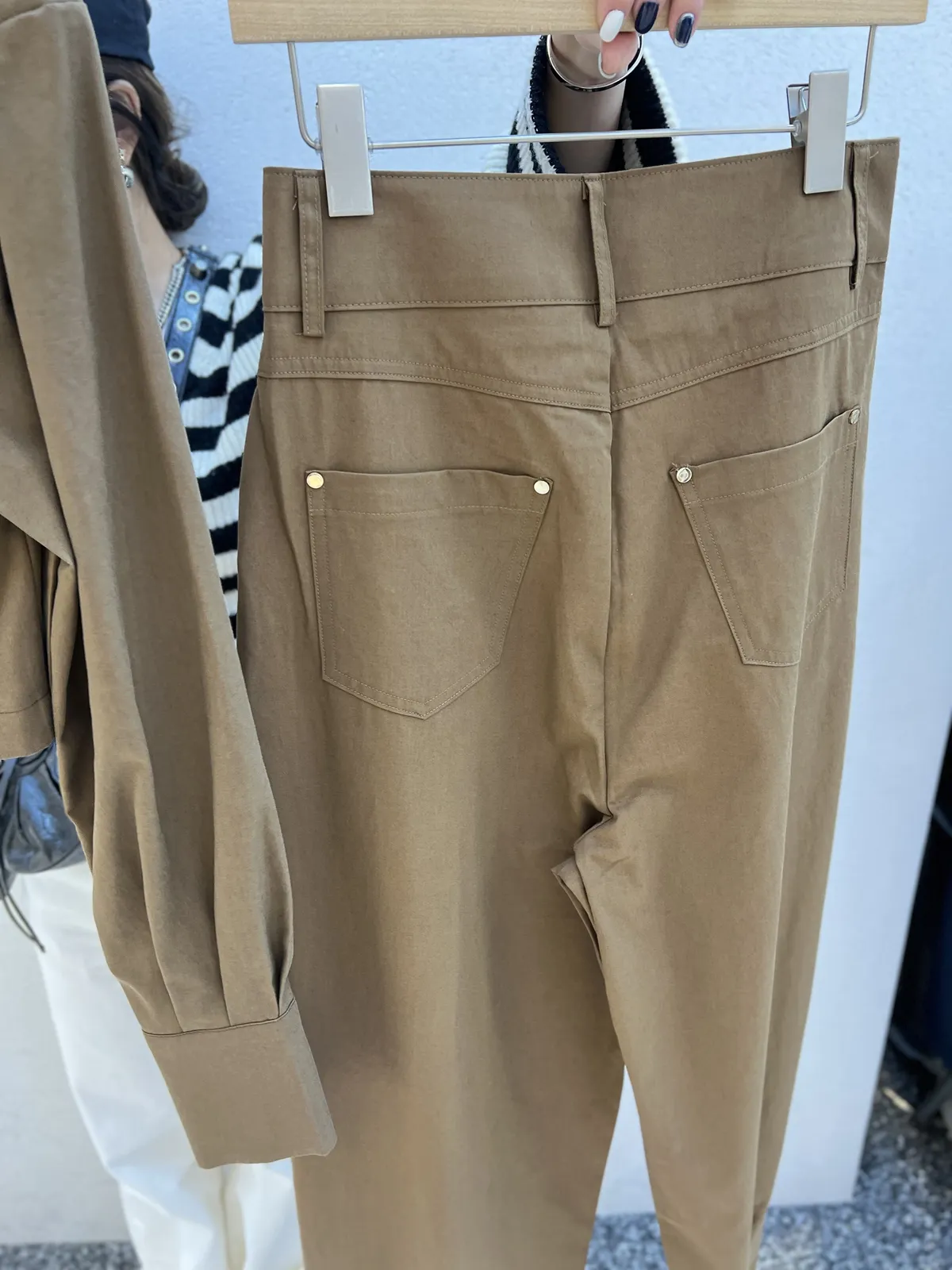 3472高級感一眼入貨!金釦口袋卡其褲子S