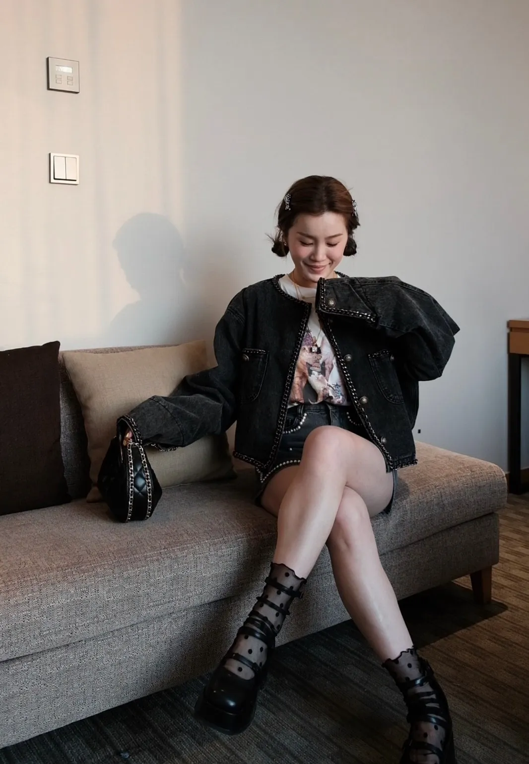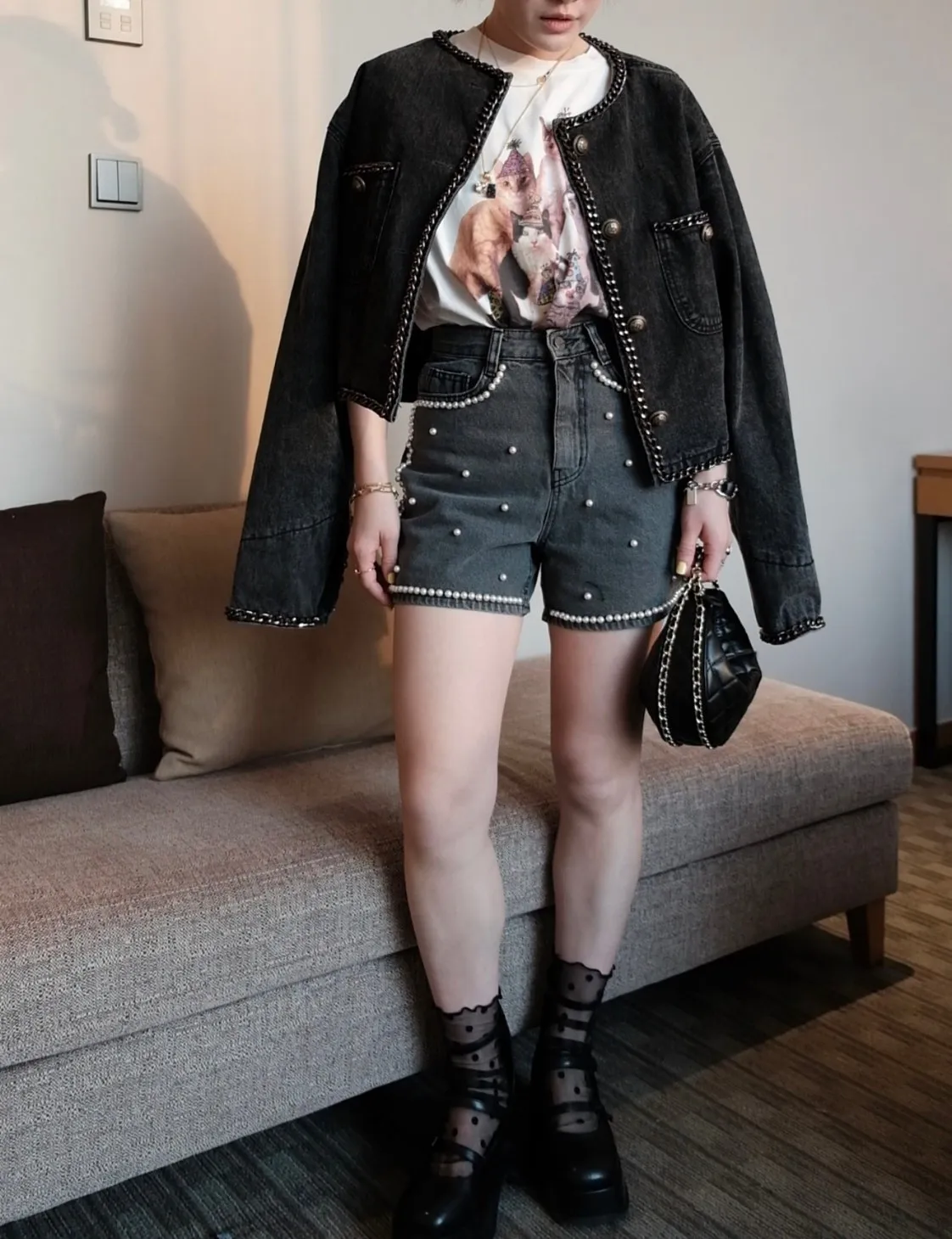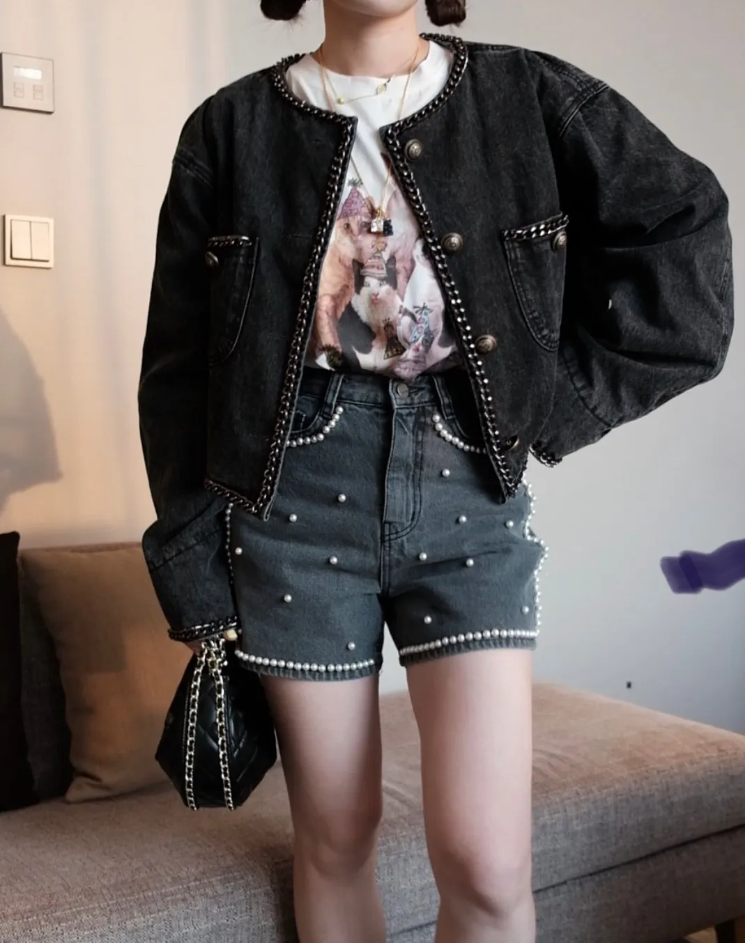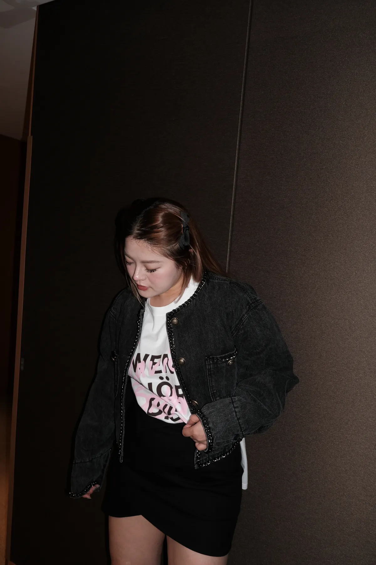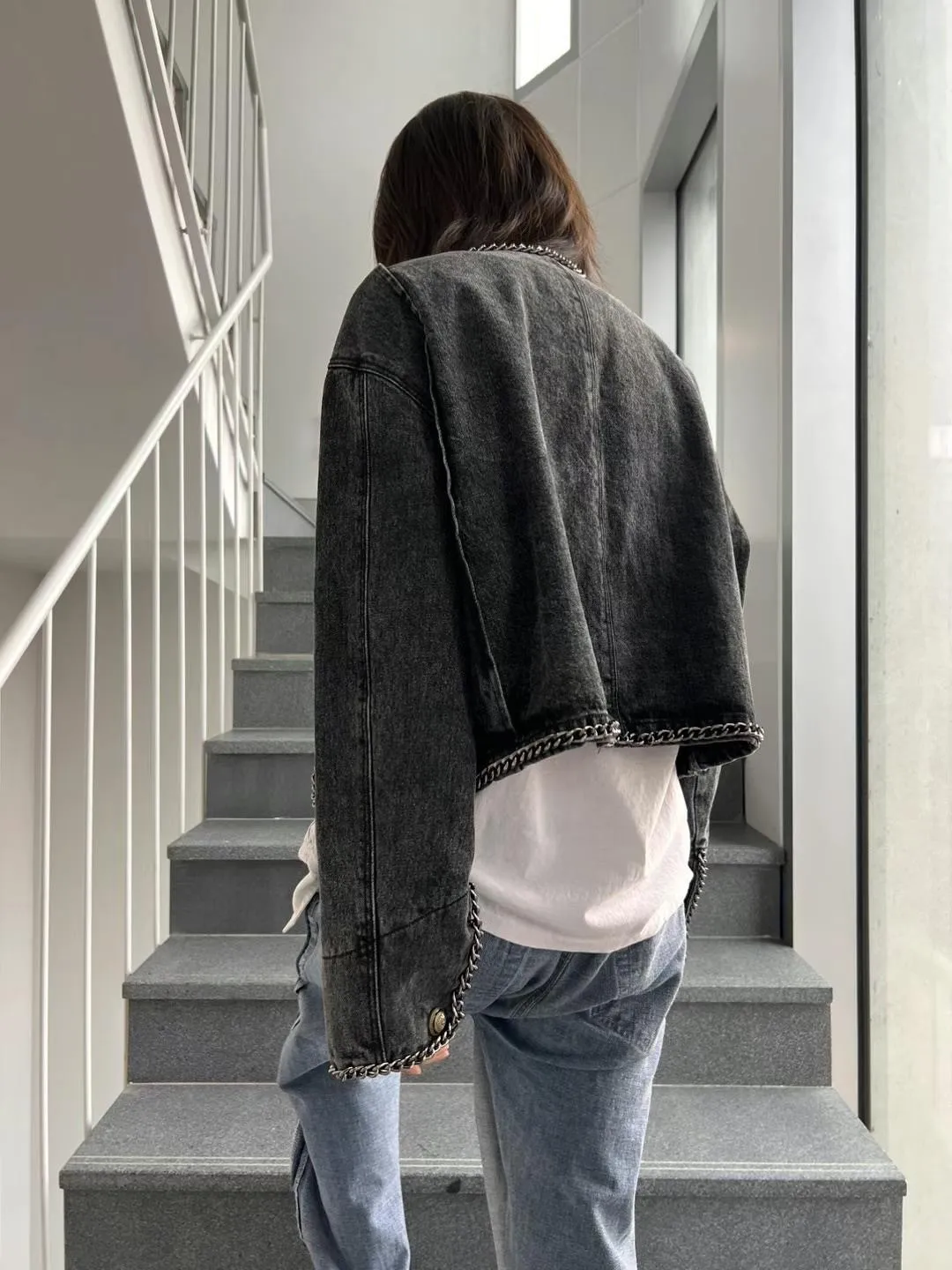 4770『加開訂製數量』牛仔外套天花板~重工鏈條高級水洗黑丹寧夾克