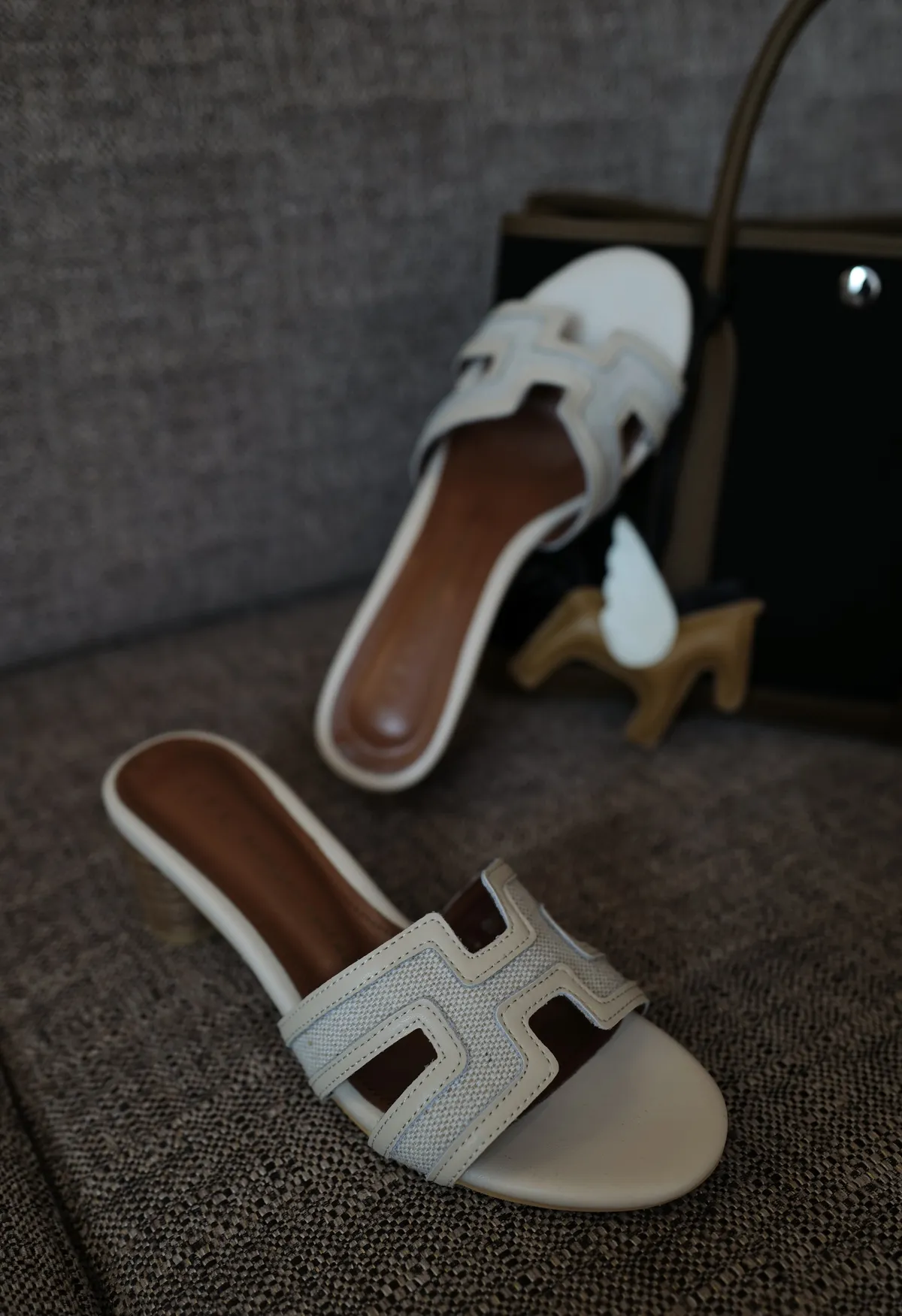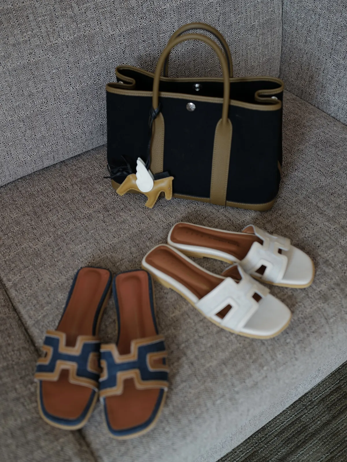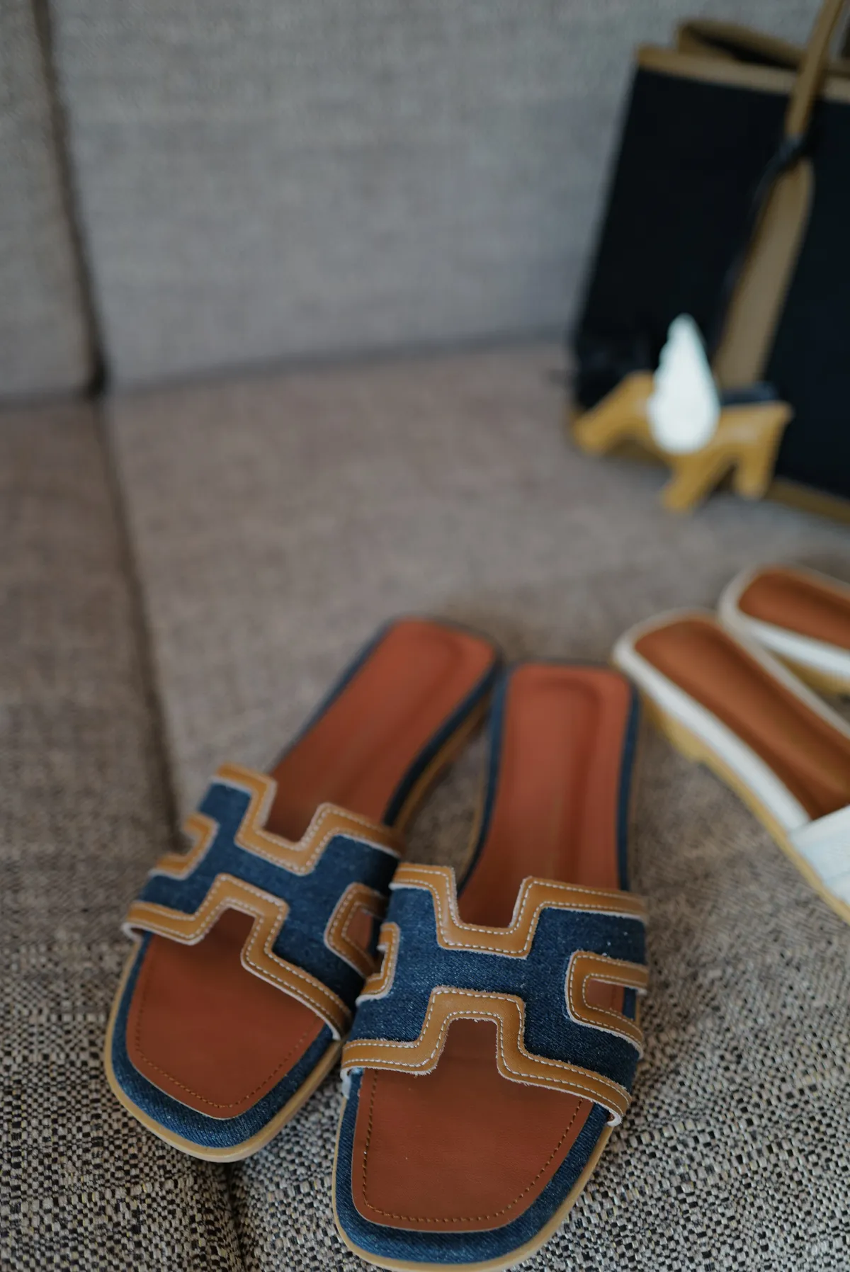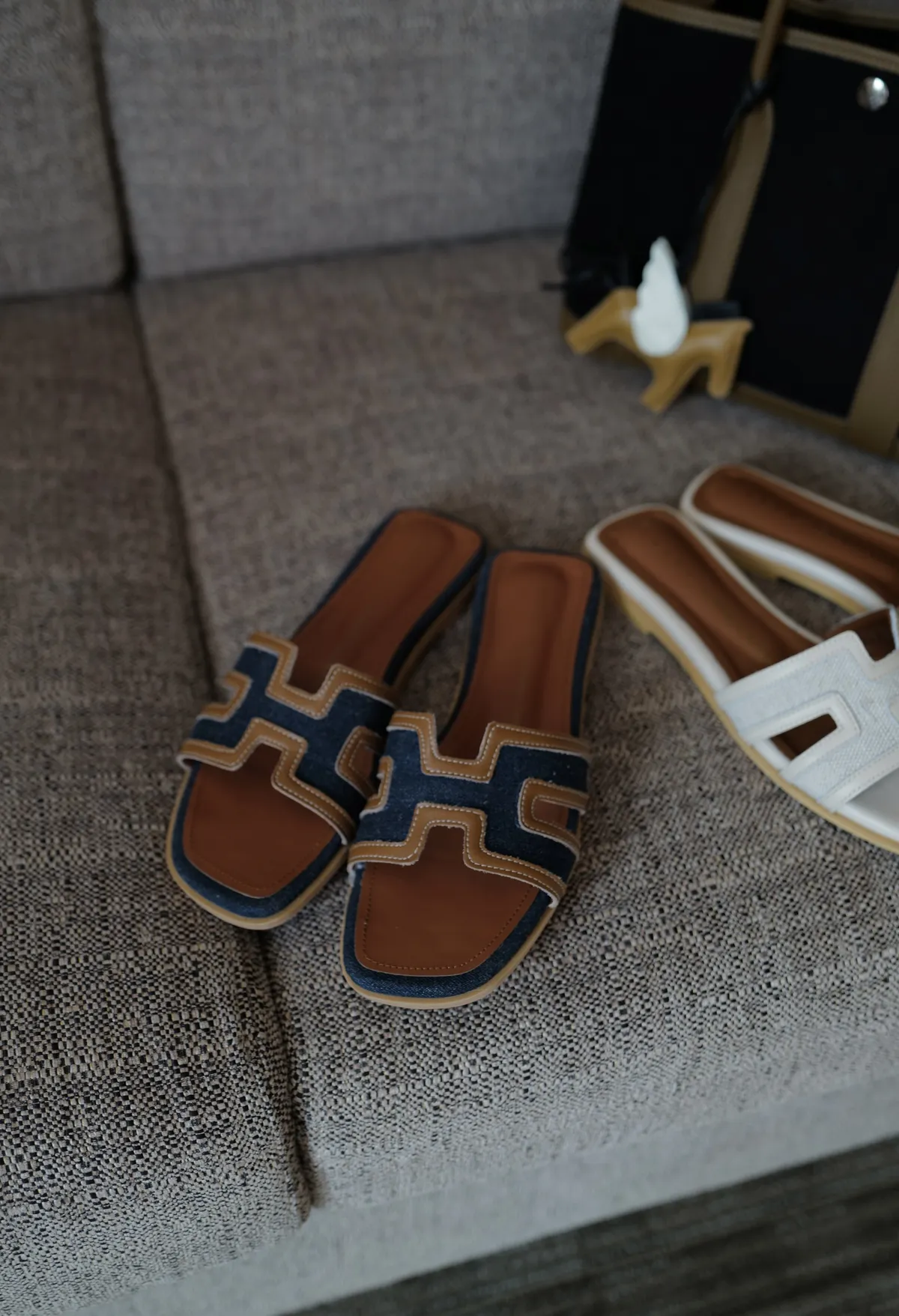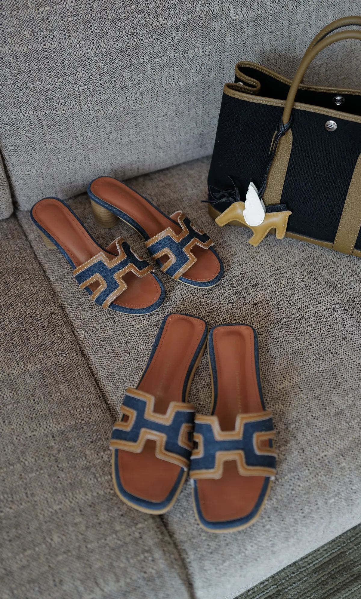 4815 韓國製牛皮丹寧拼接H涼鞋(平底/低跟)