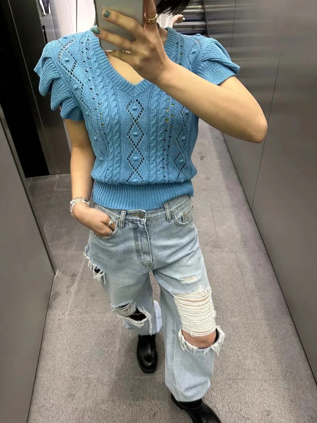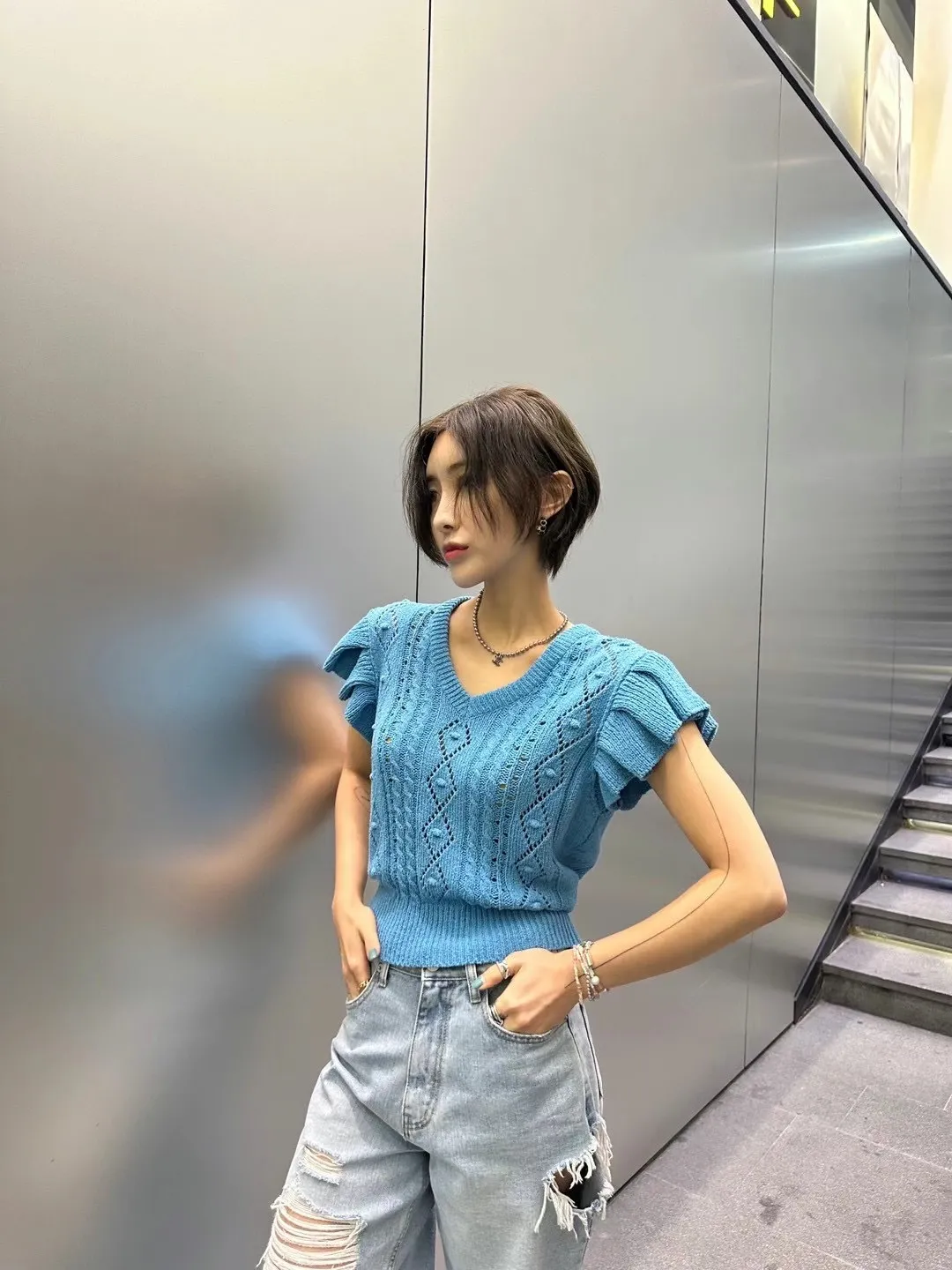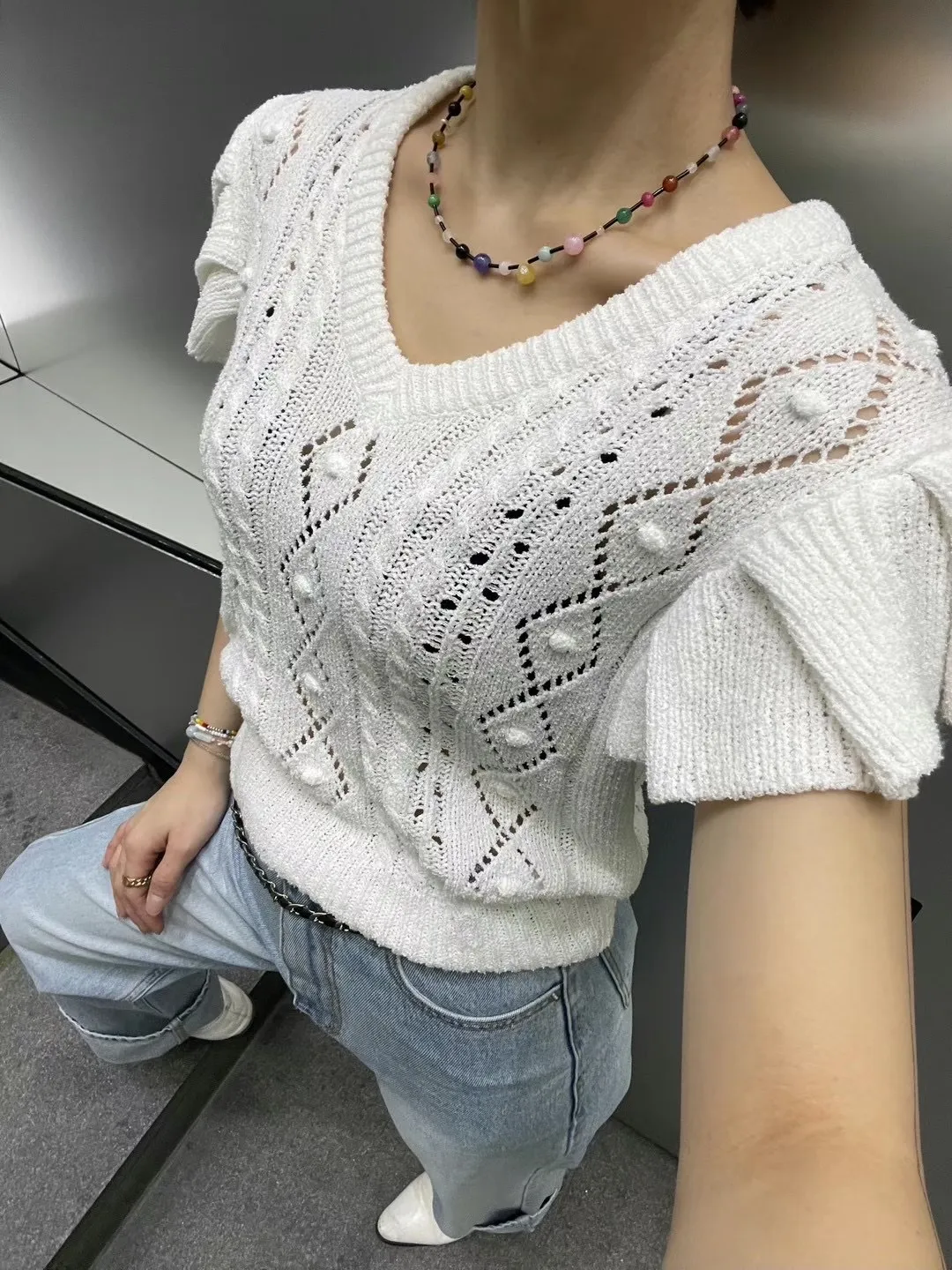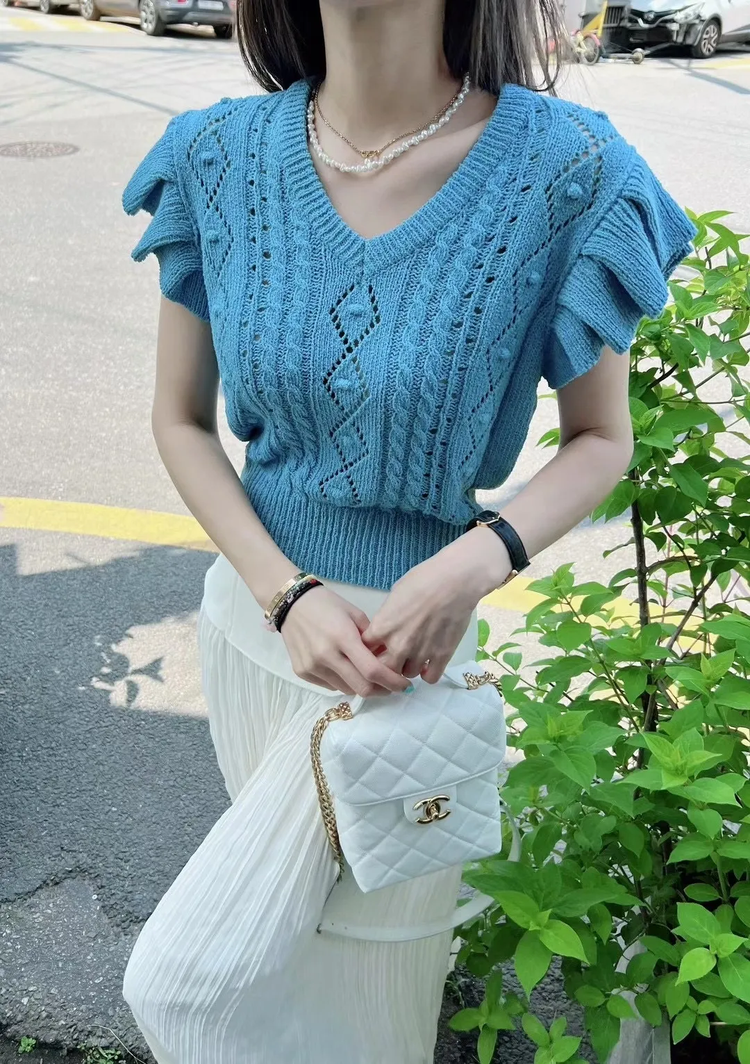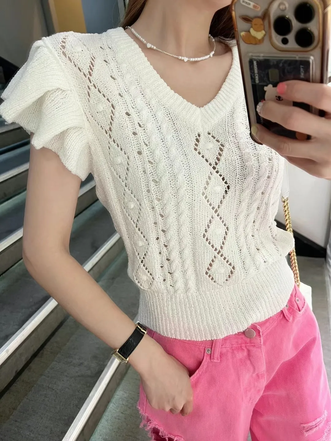 5003 精緻波浪鏤空雕花針織背心