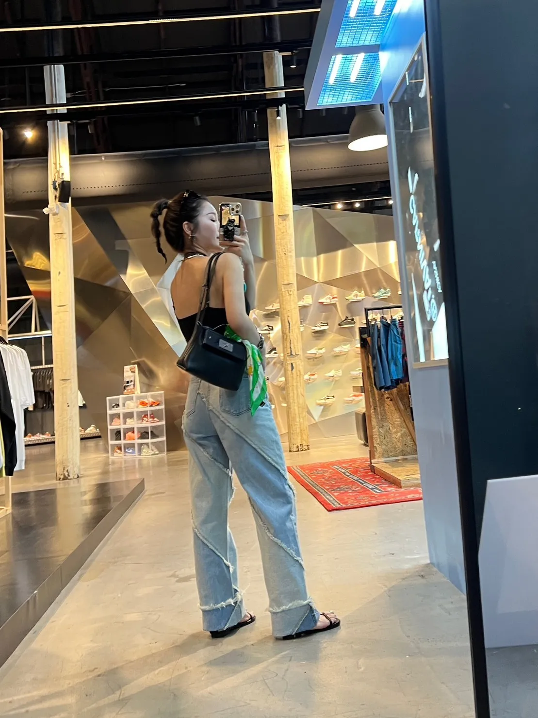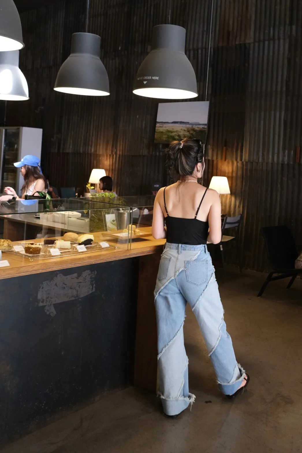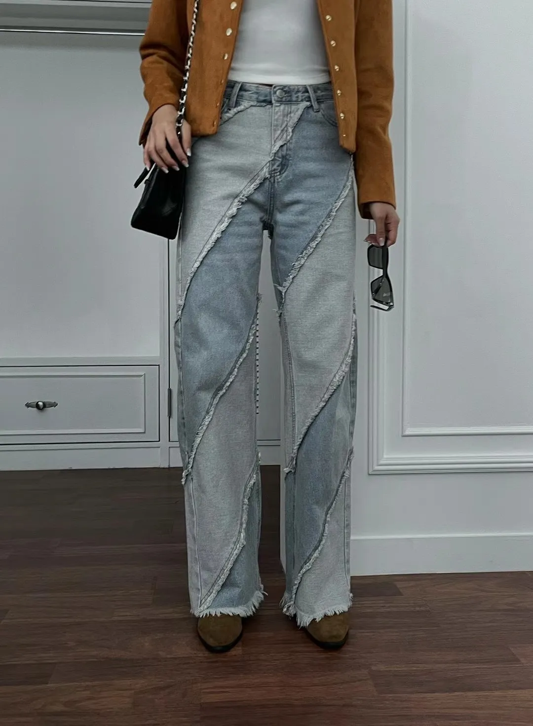 5244 這件太時髦必收!拼接單寧直筒牛仔褲[L號]M可穿版偏小
