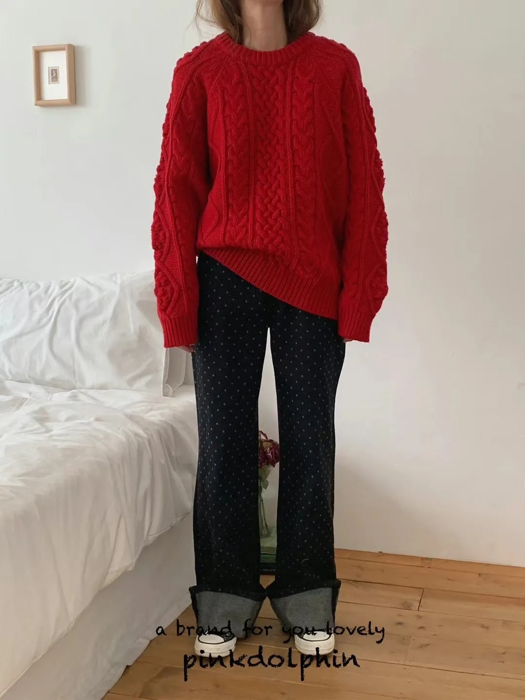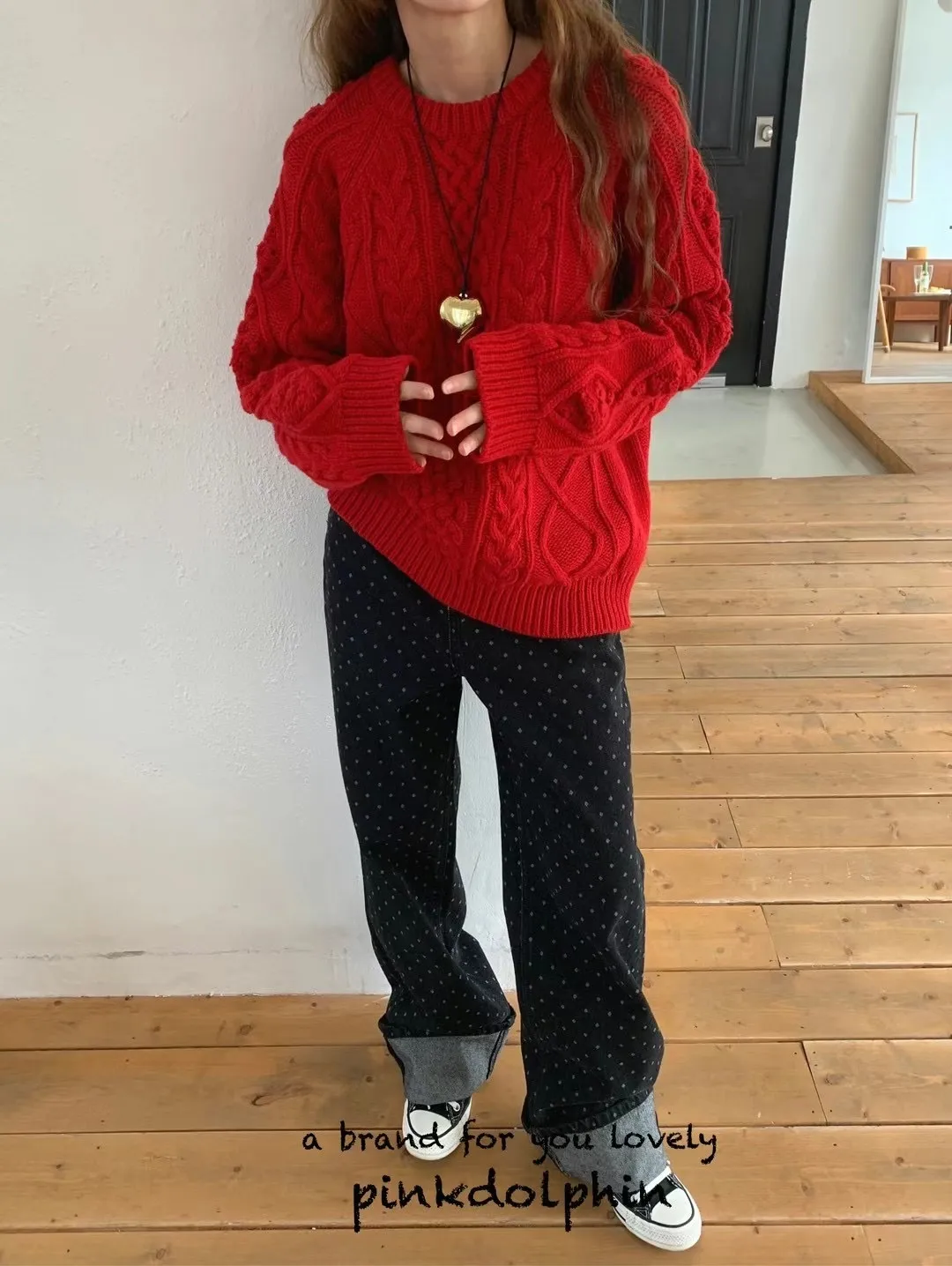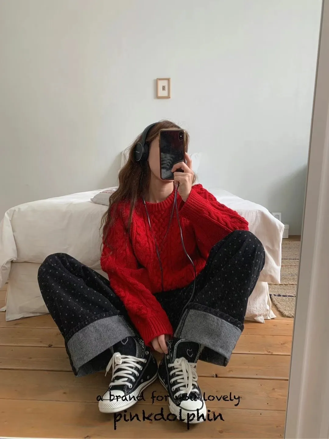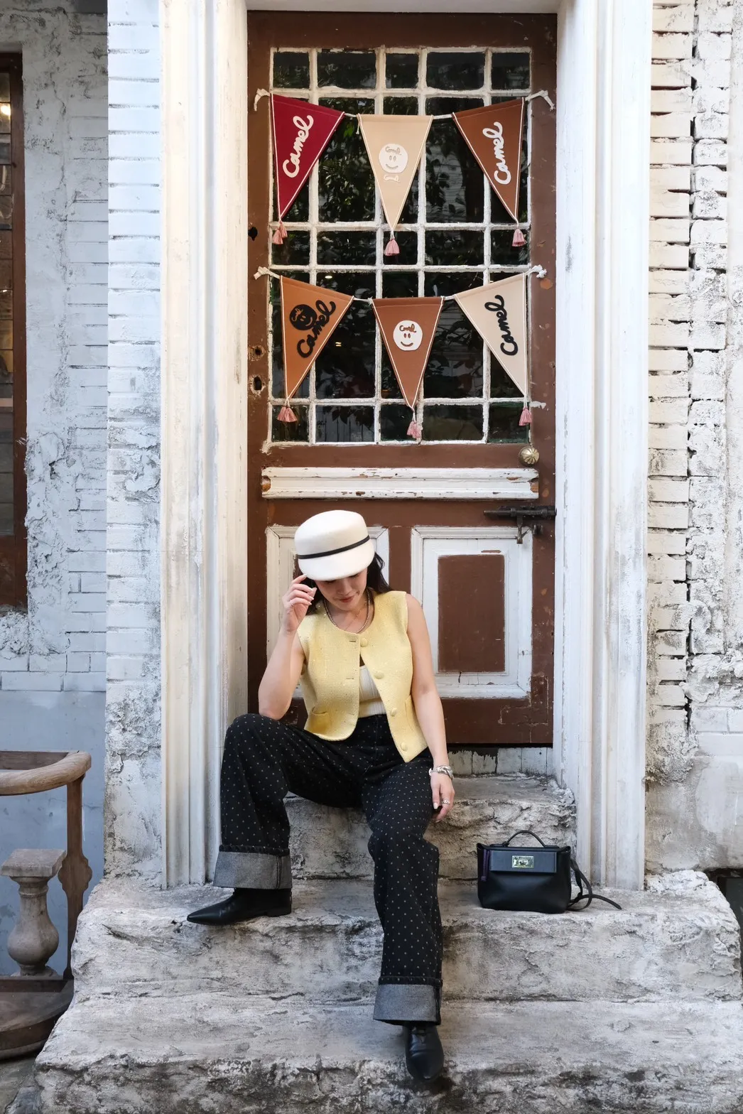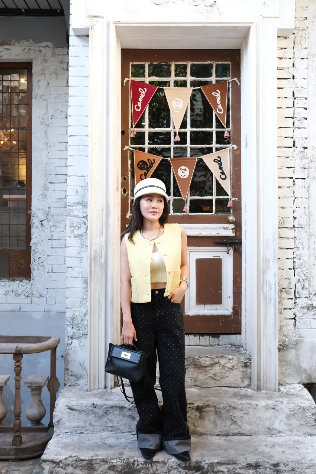 5287 (L號)小香風波點炭黑翻摺牛仔褲