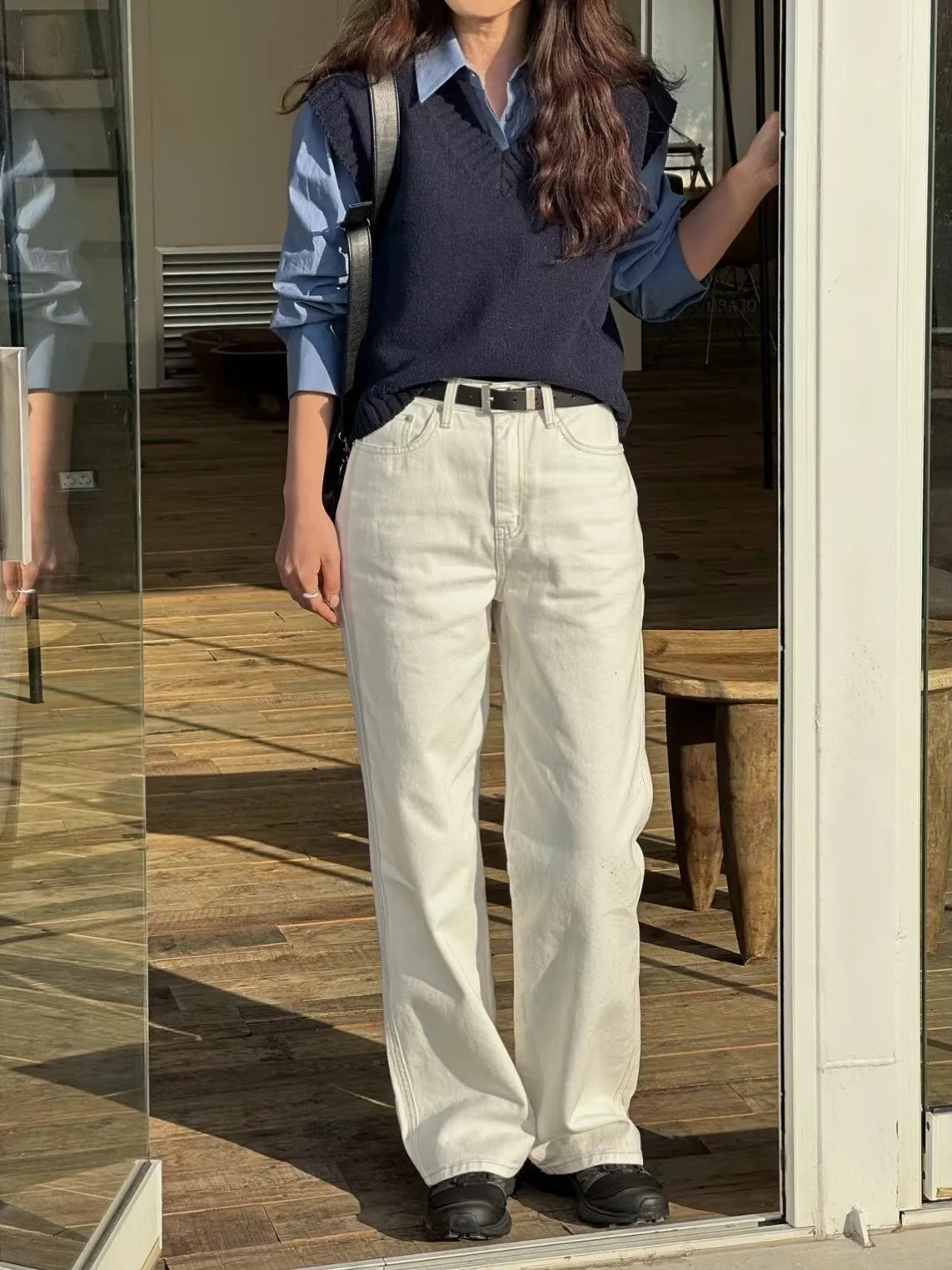 5365 直筒牛仔白褲