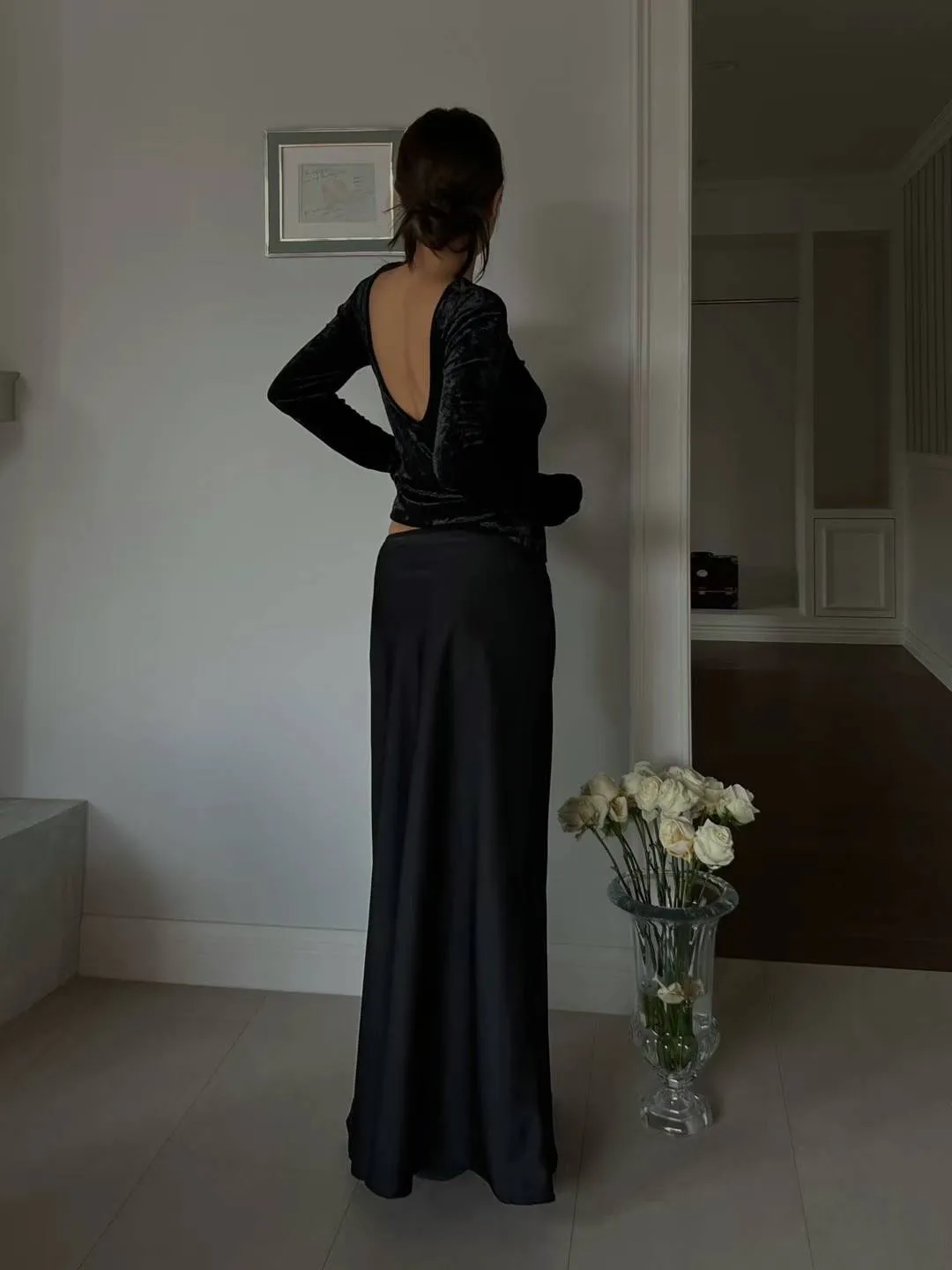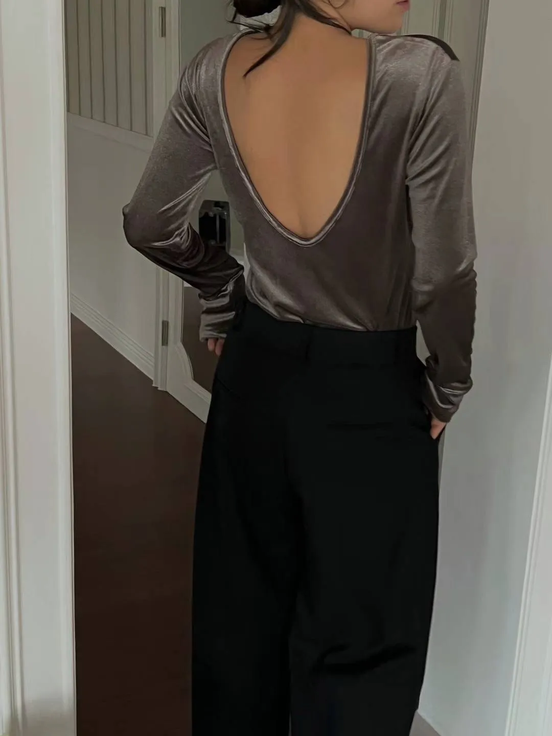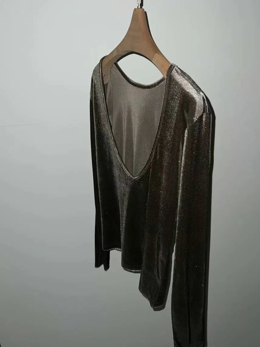 5944 絲絨閃粉露背上衣