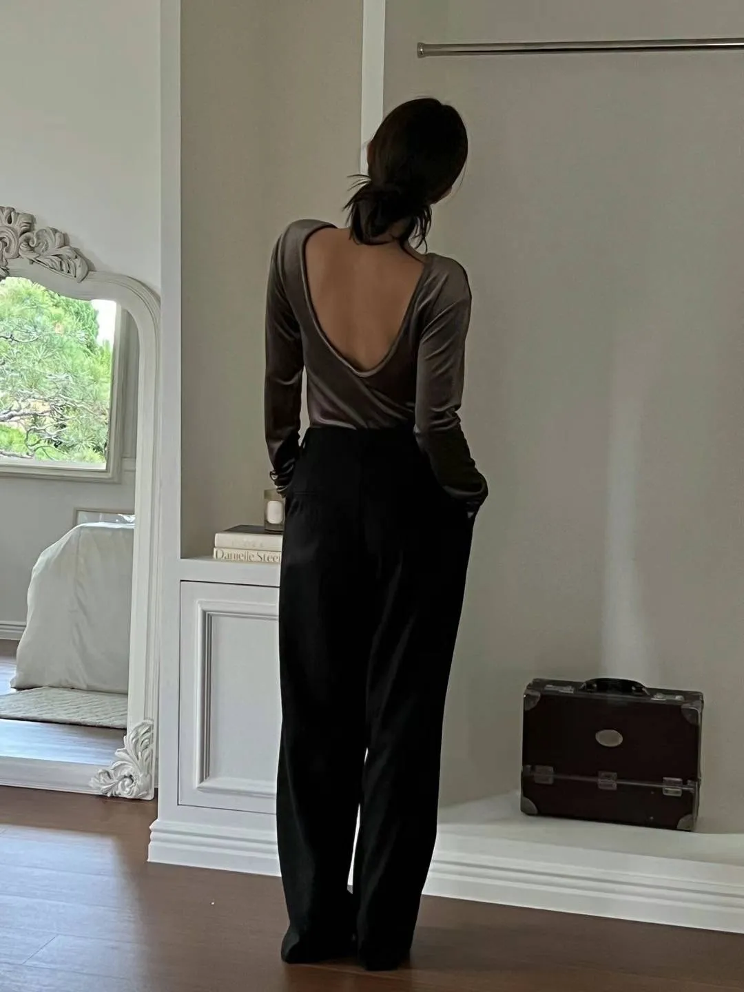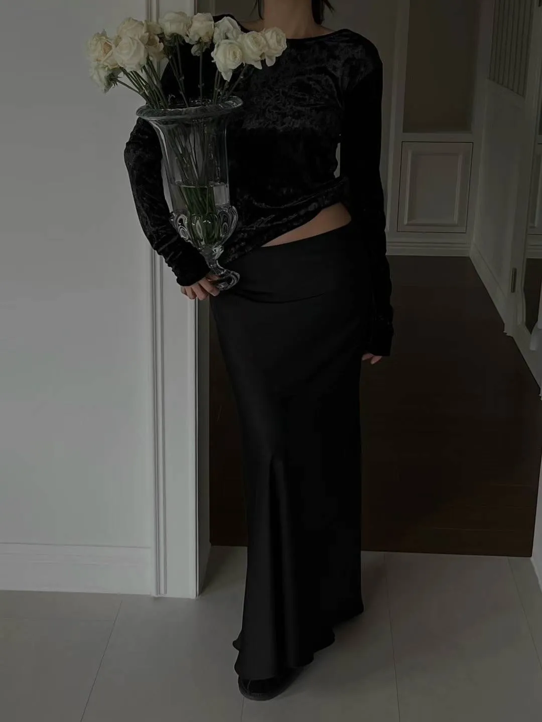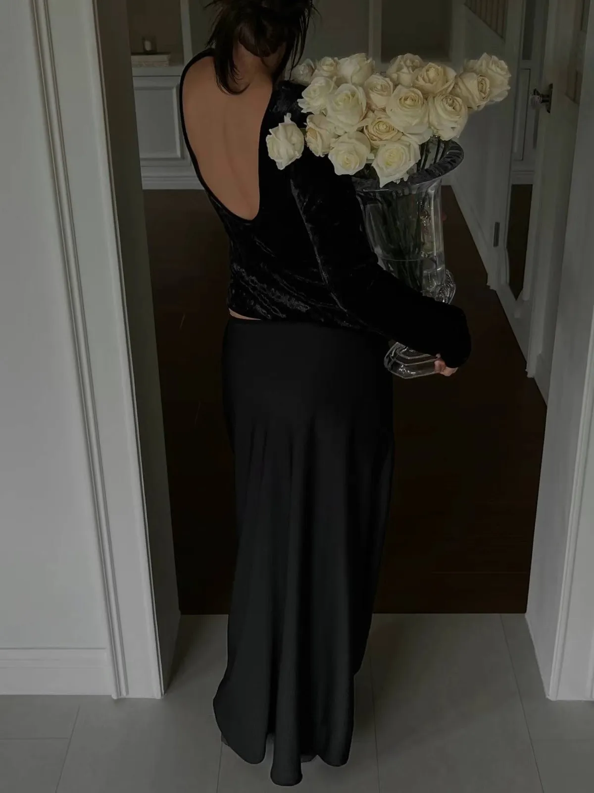 5944 絲絨閃粉露背上衣