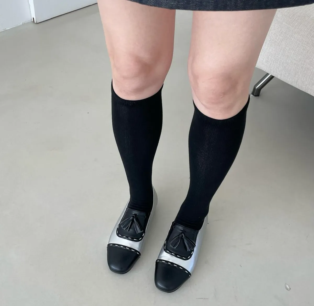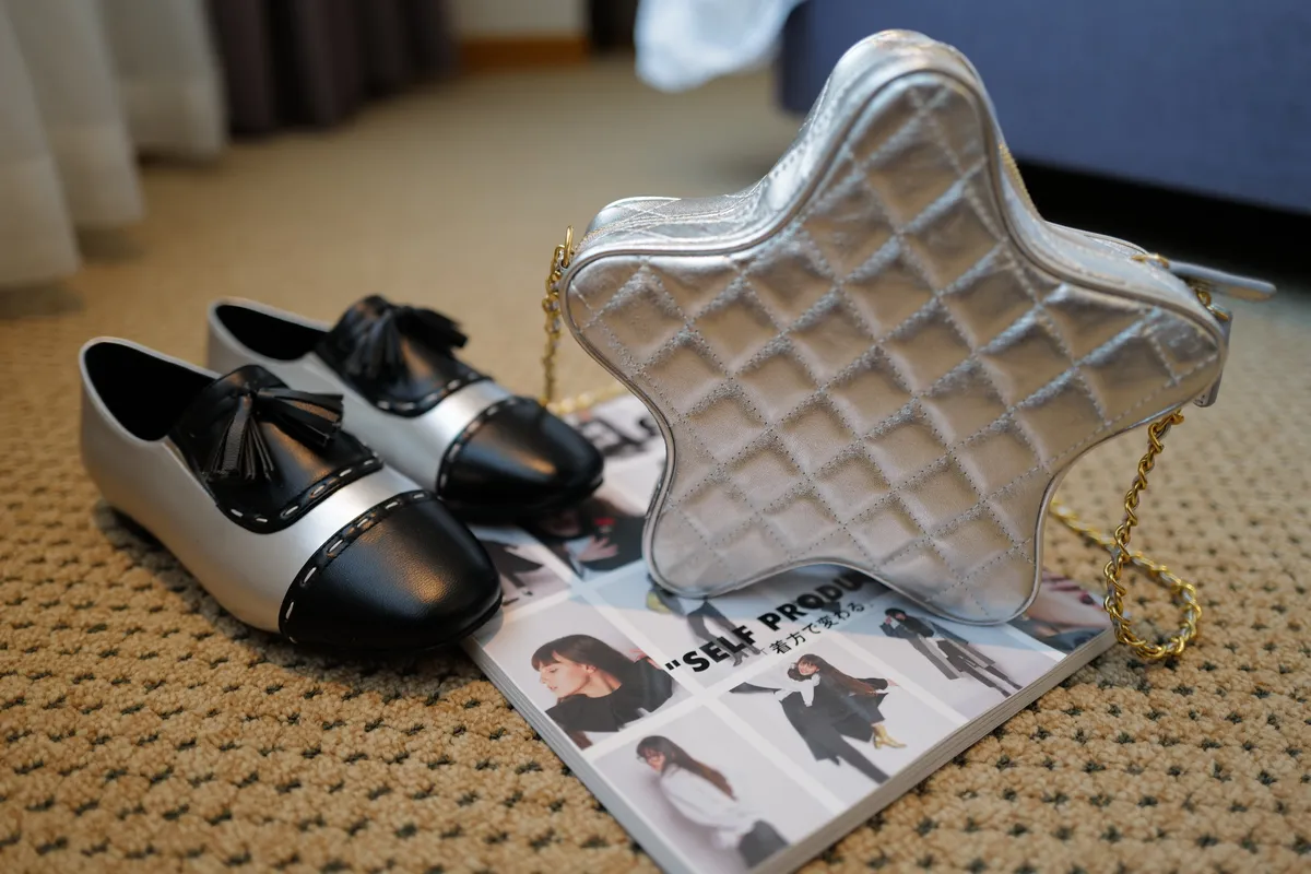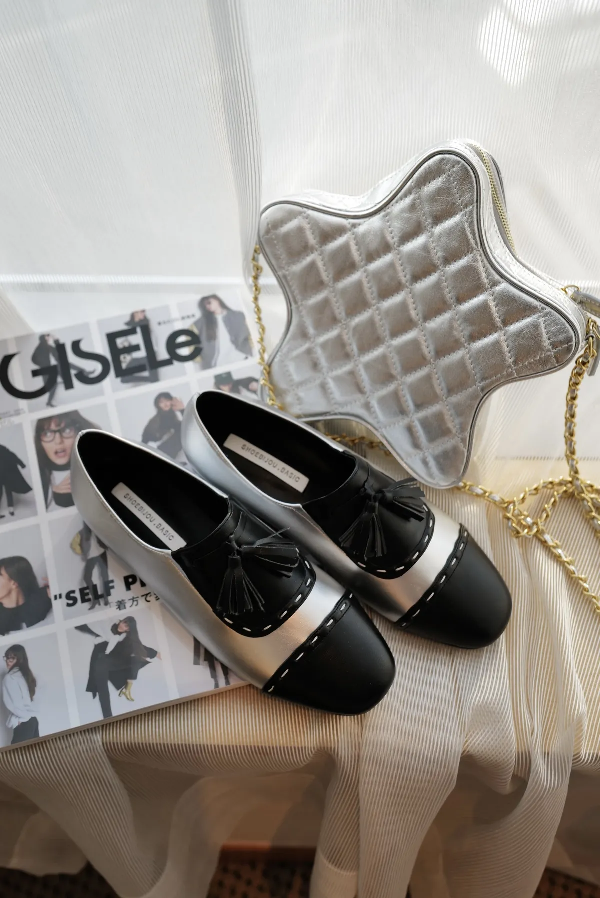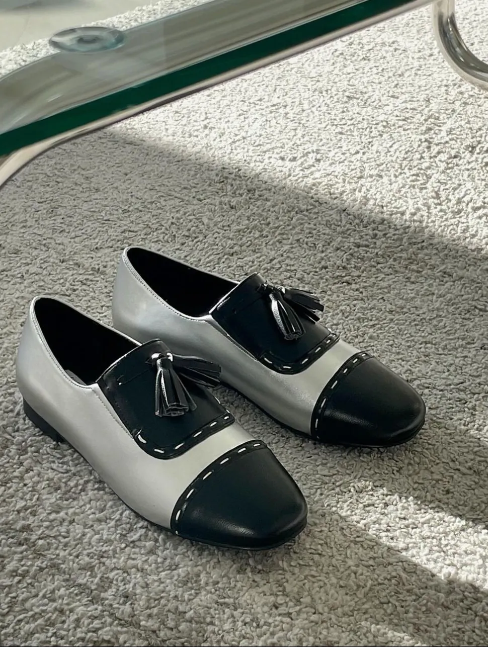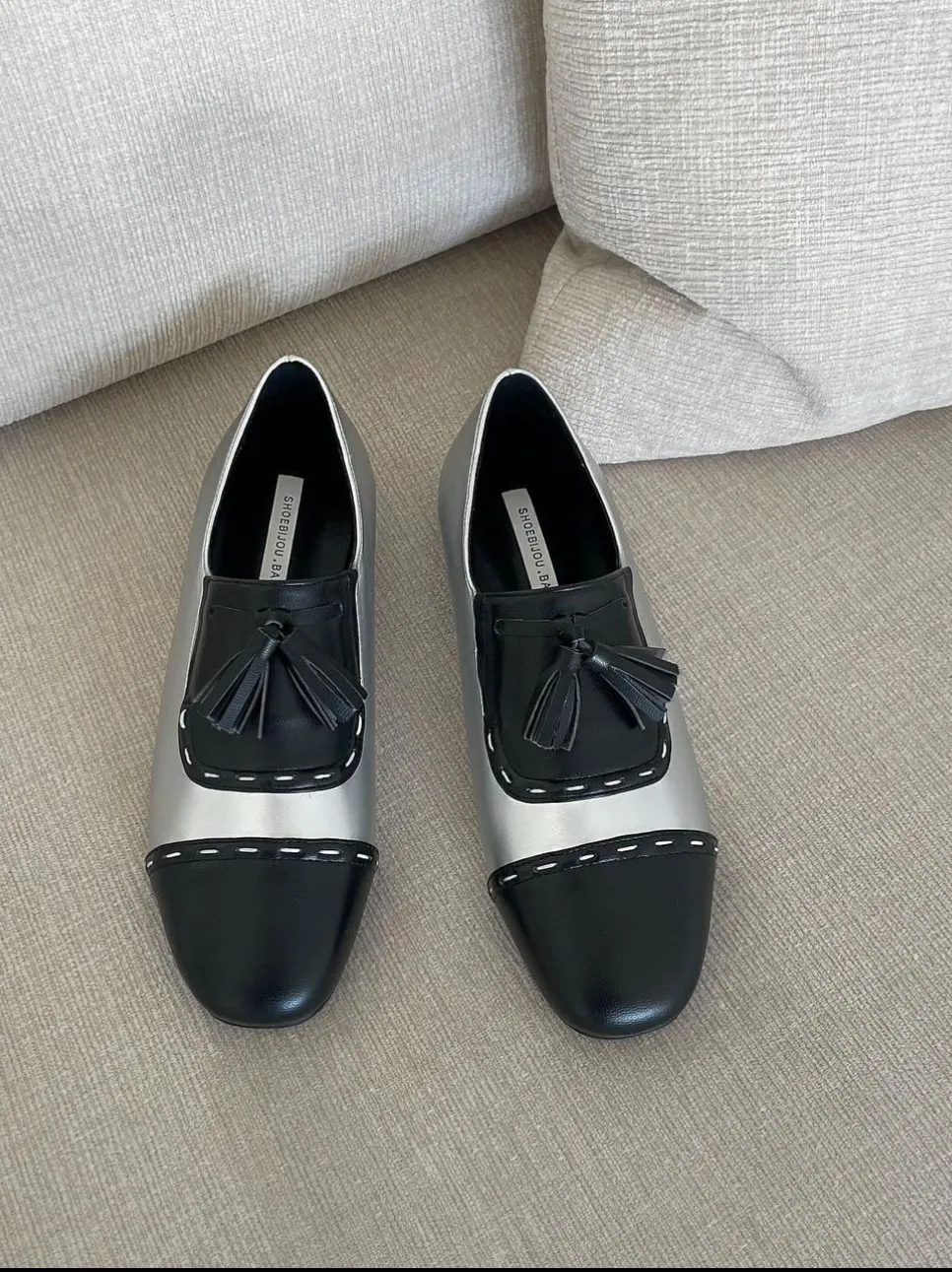 5975 霧銀拼色圓頭流蘇牛津鞋