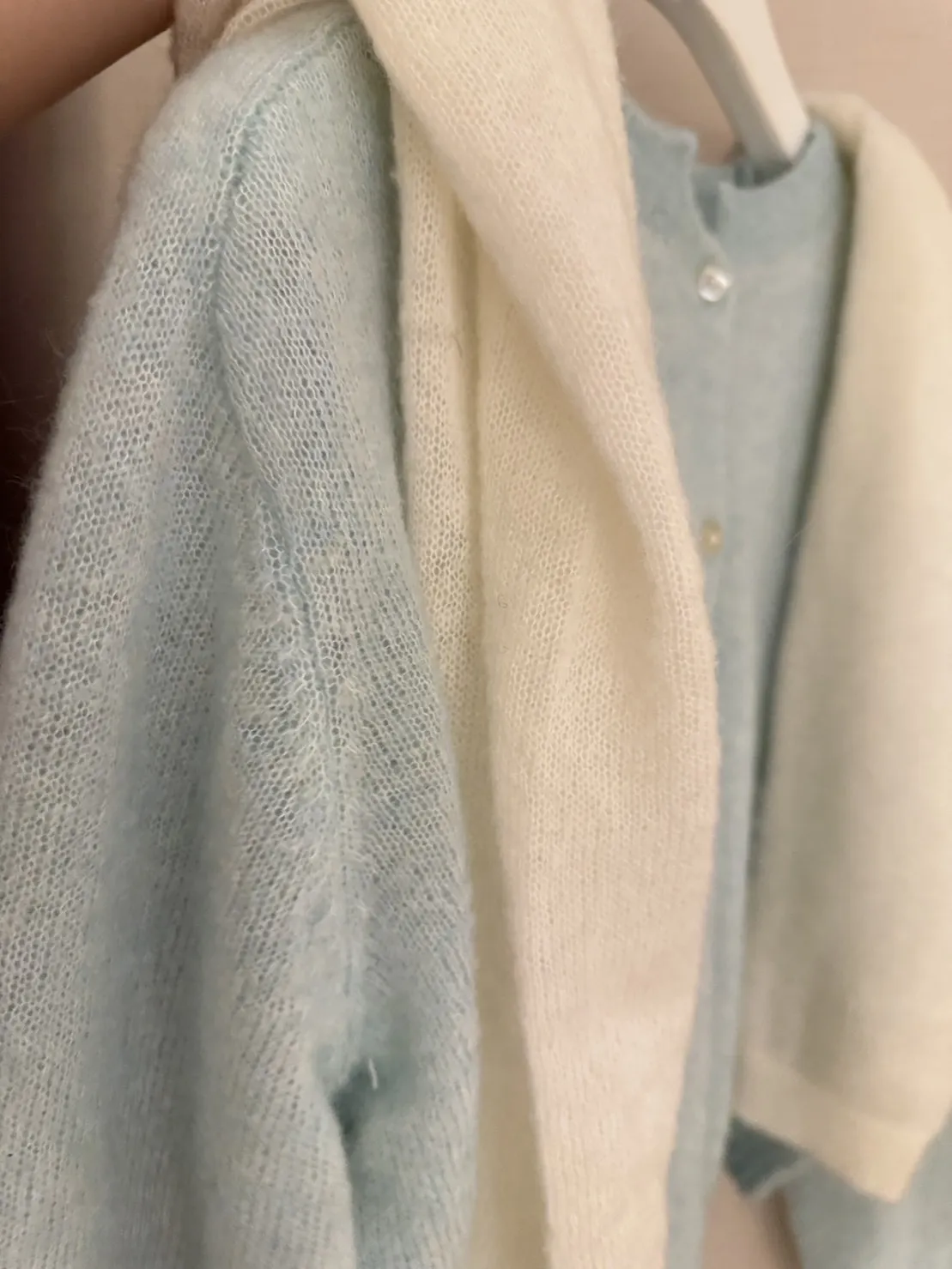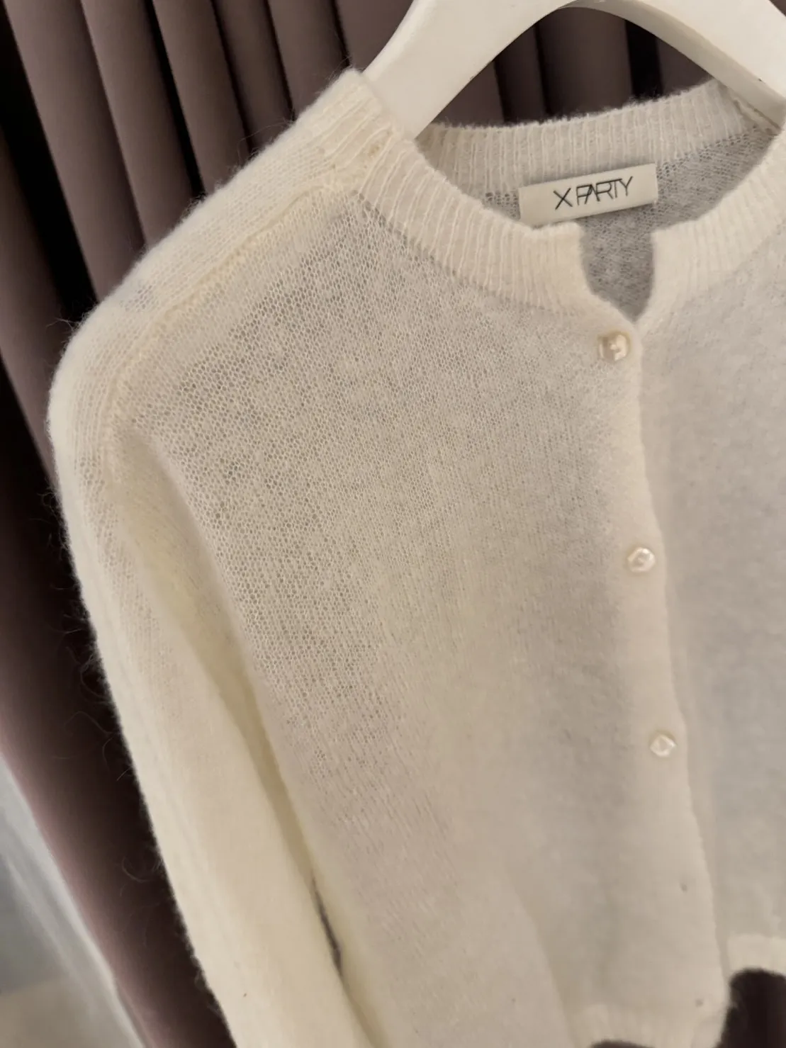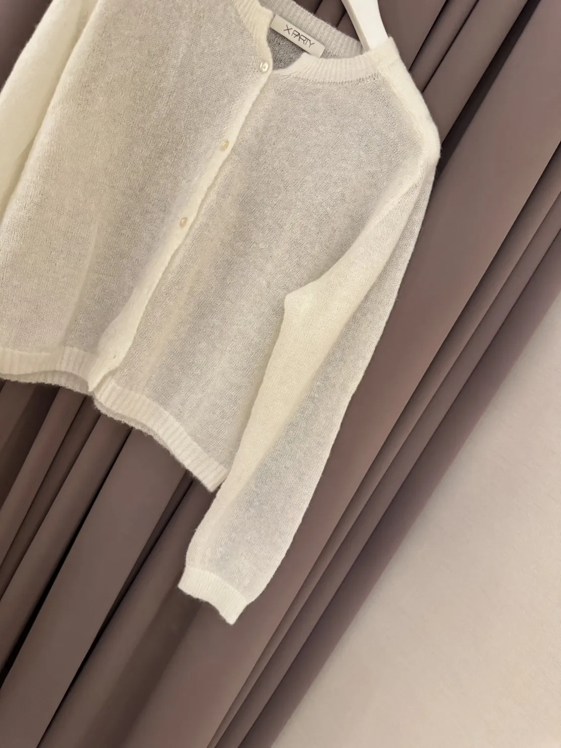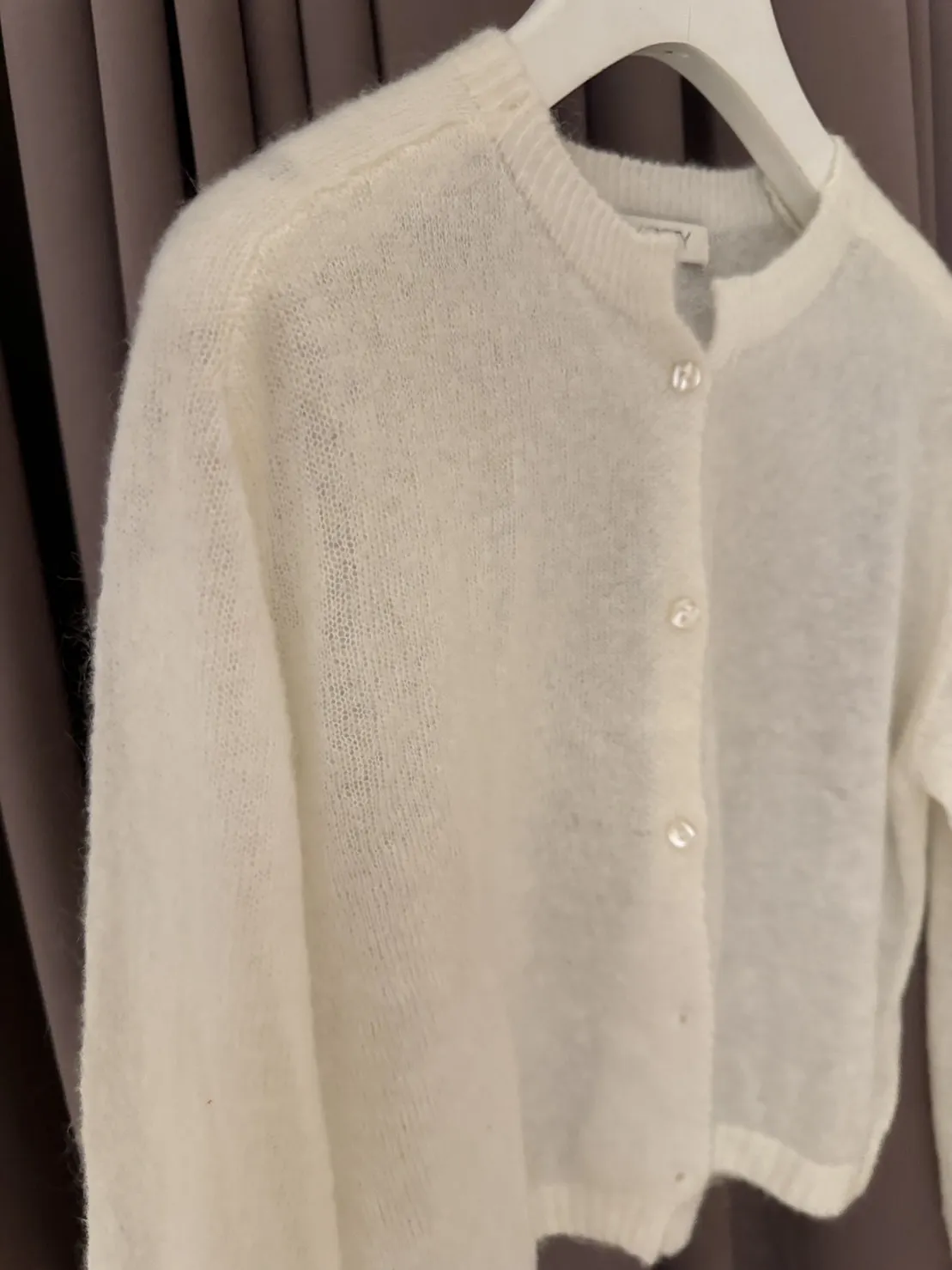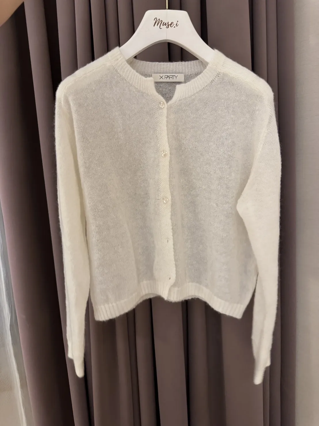6012薄透排扣針織小毛衣外套(輕柔馬海毛)