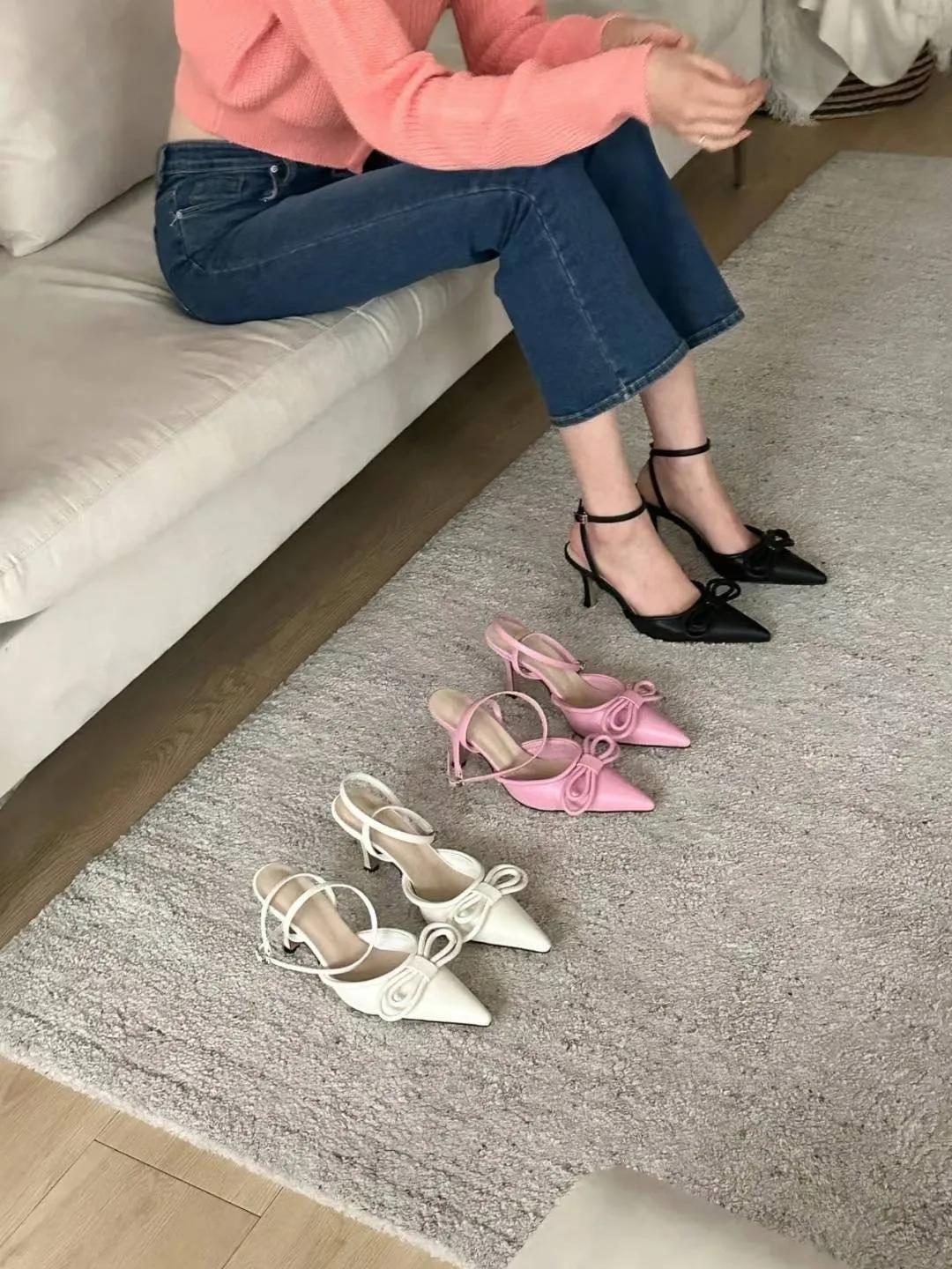 6129旋轉樓梯必備~蝴蝶結高跟鞋 粉235