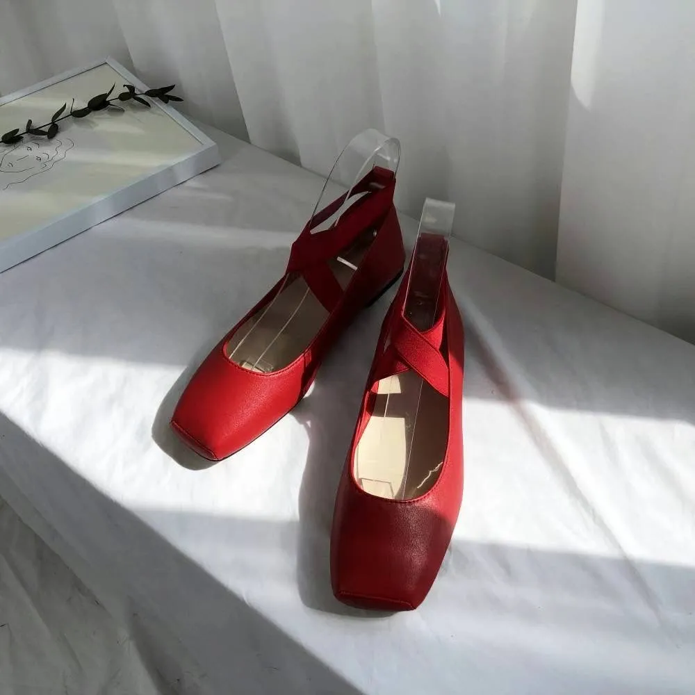 6152芭蕾舞女伶寬交叉方頭娃娃鞋