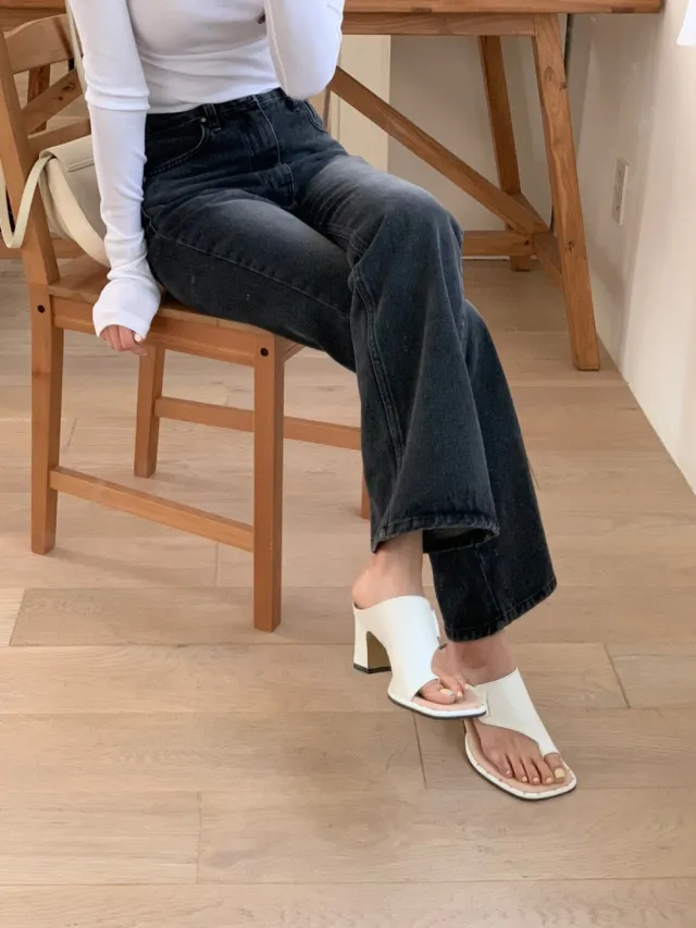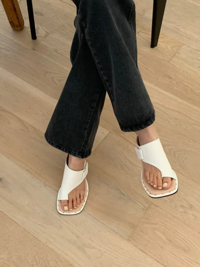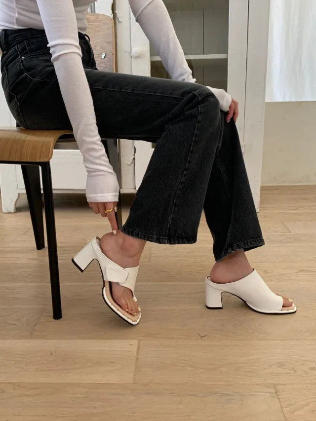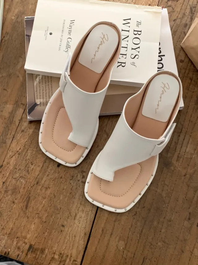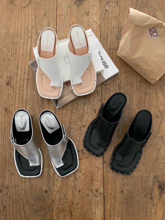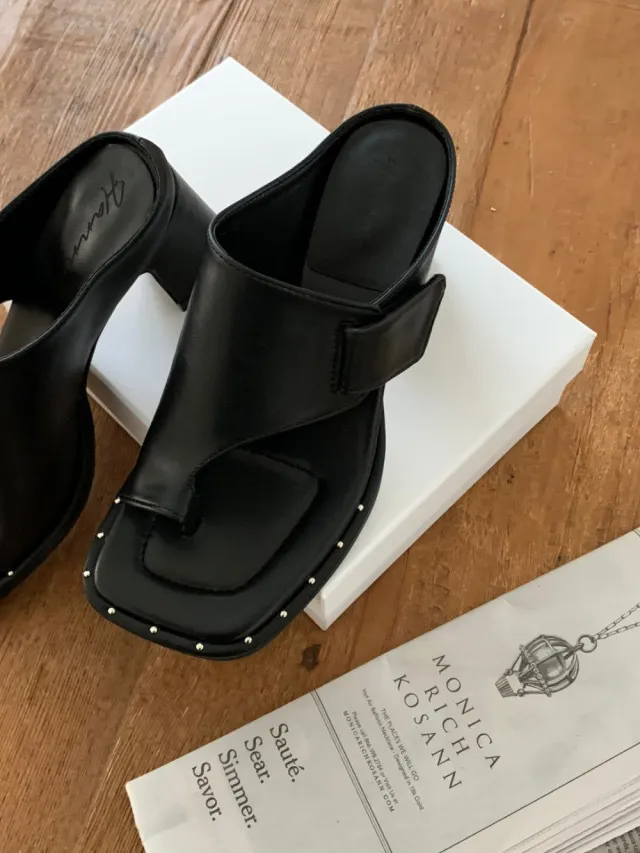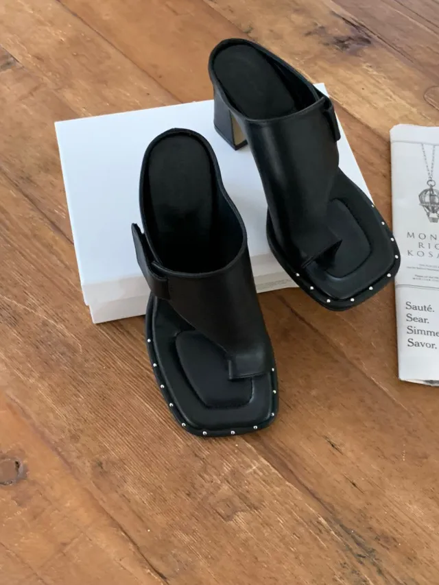 6353 簡約方頭卯釘粗跟涼鞋 黑25