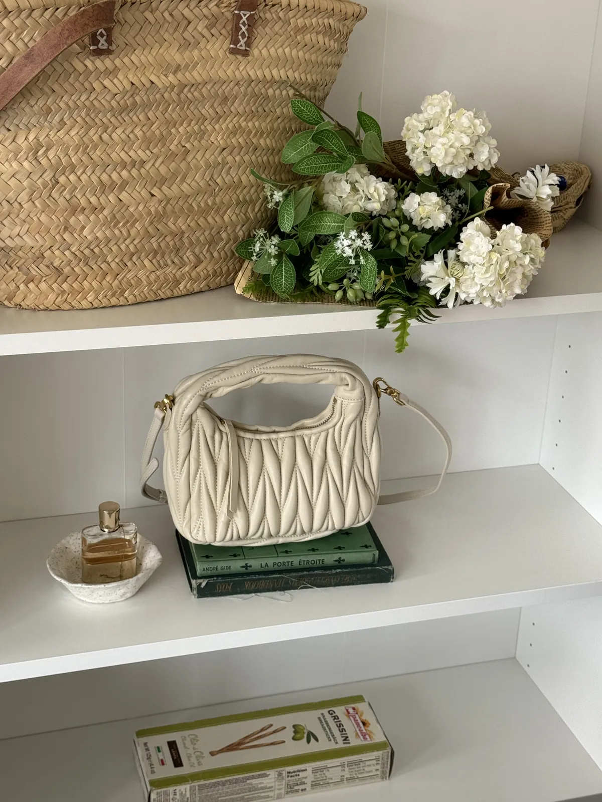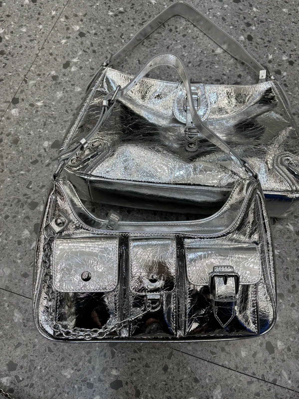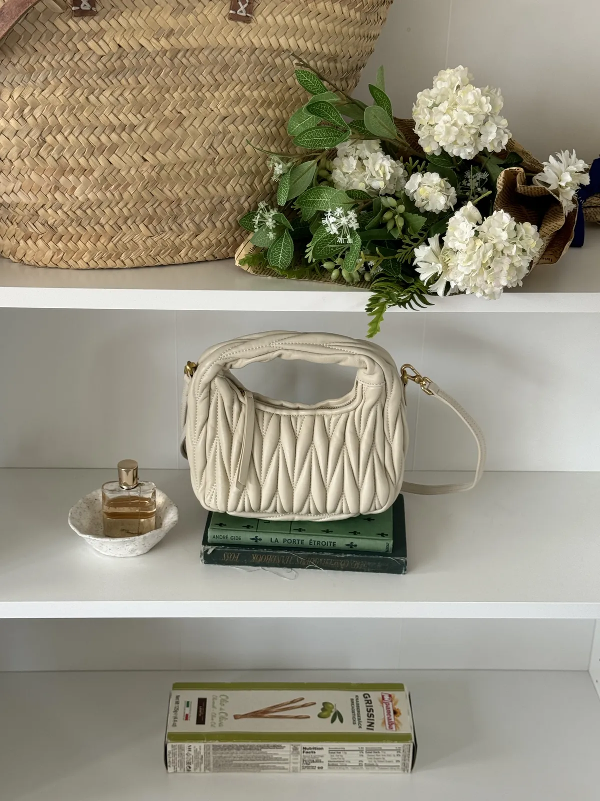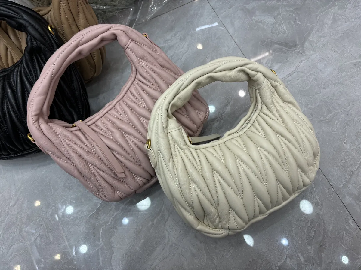 6361 優雅彎月皺皺手提包(羊皮)附長背帶