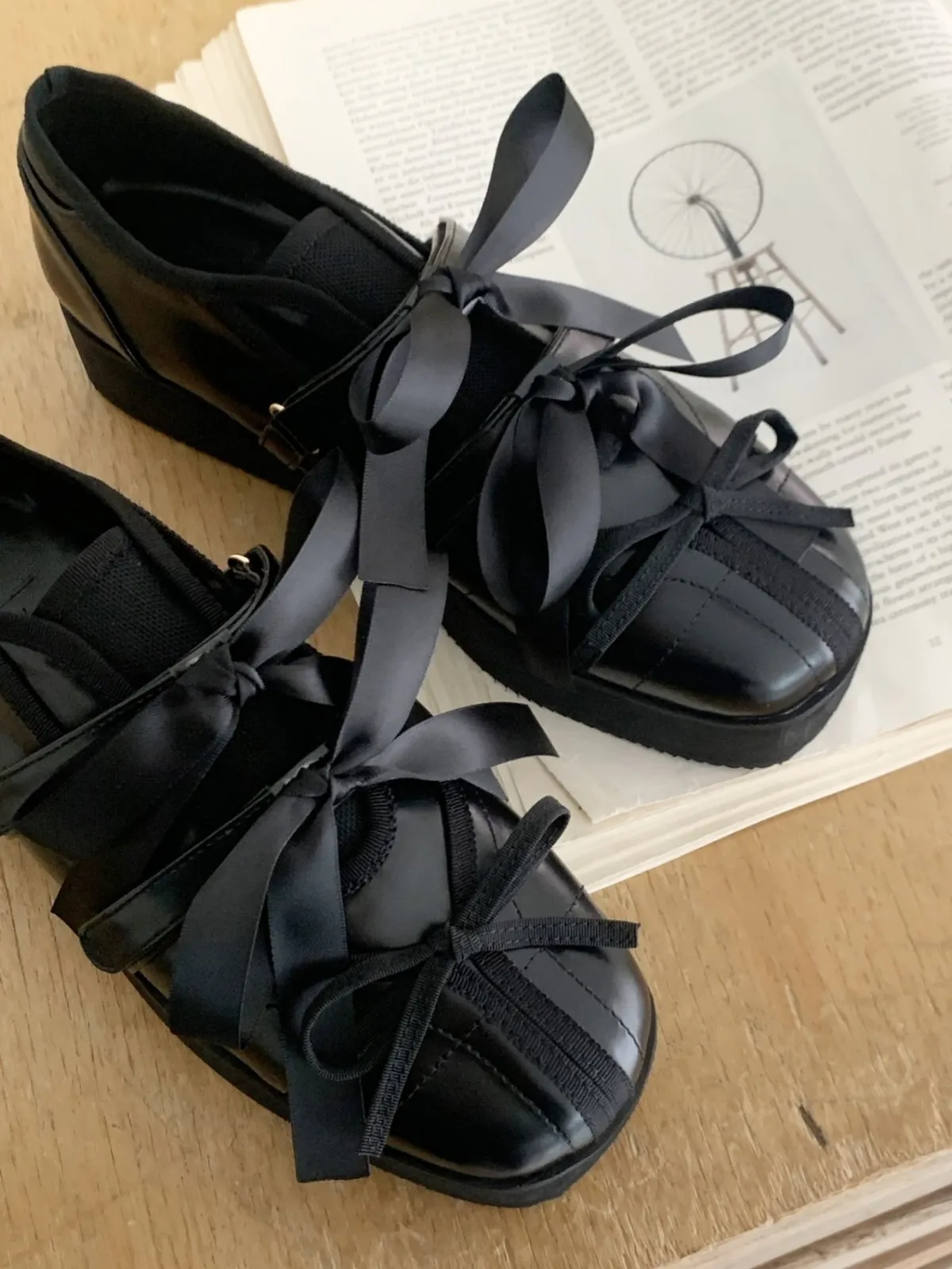6627魔鬼氈蝴蝶結時髦增高鞋