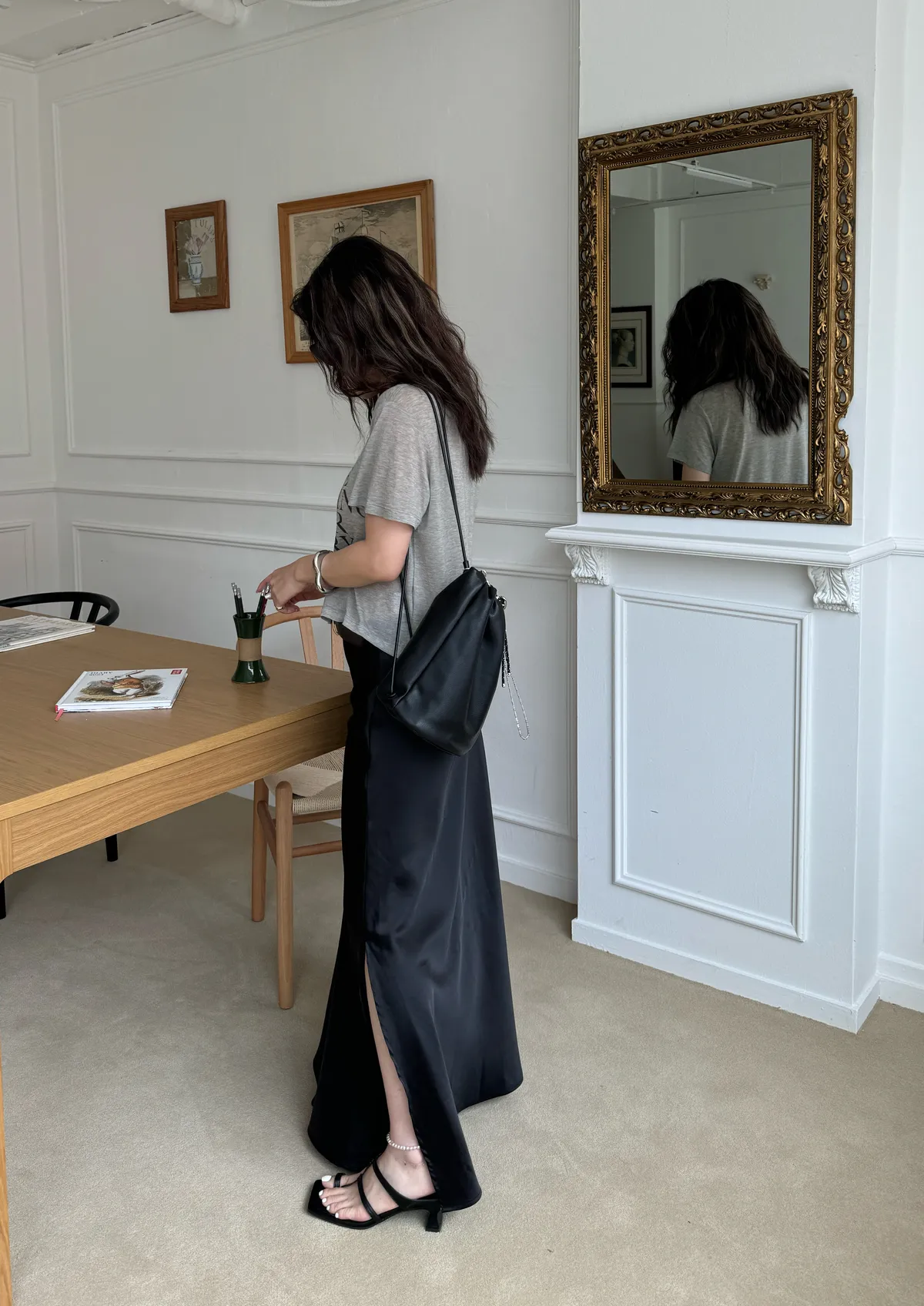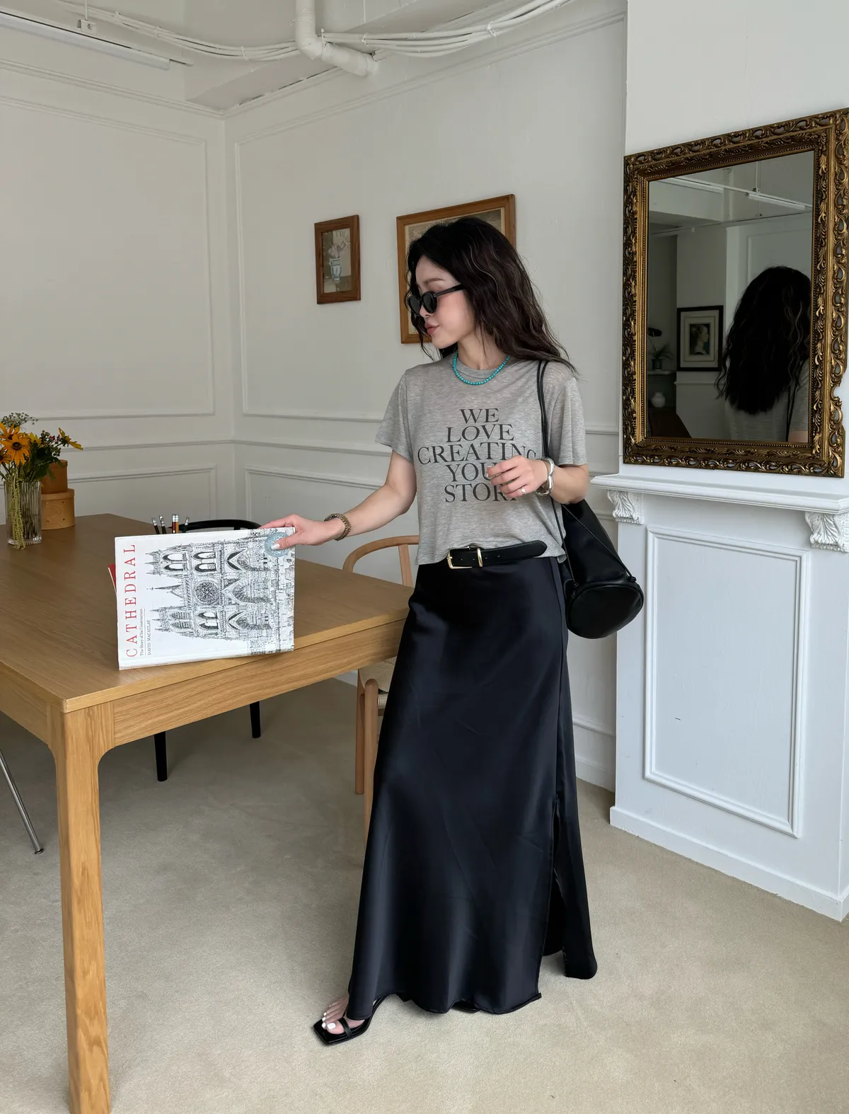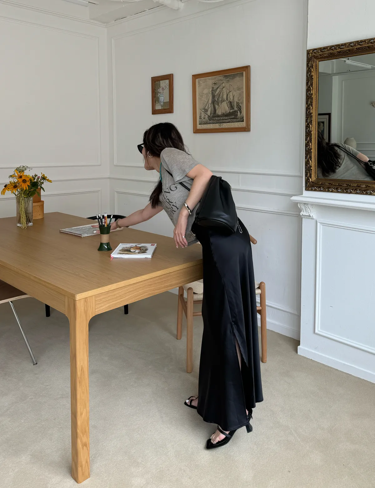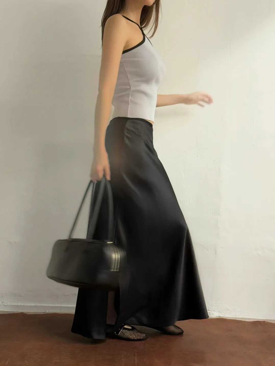 6873彈力緞面裙2.0時髦人必備款改版開衩光澤長裙