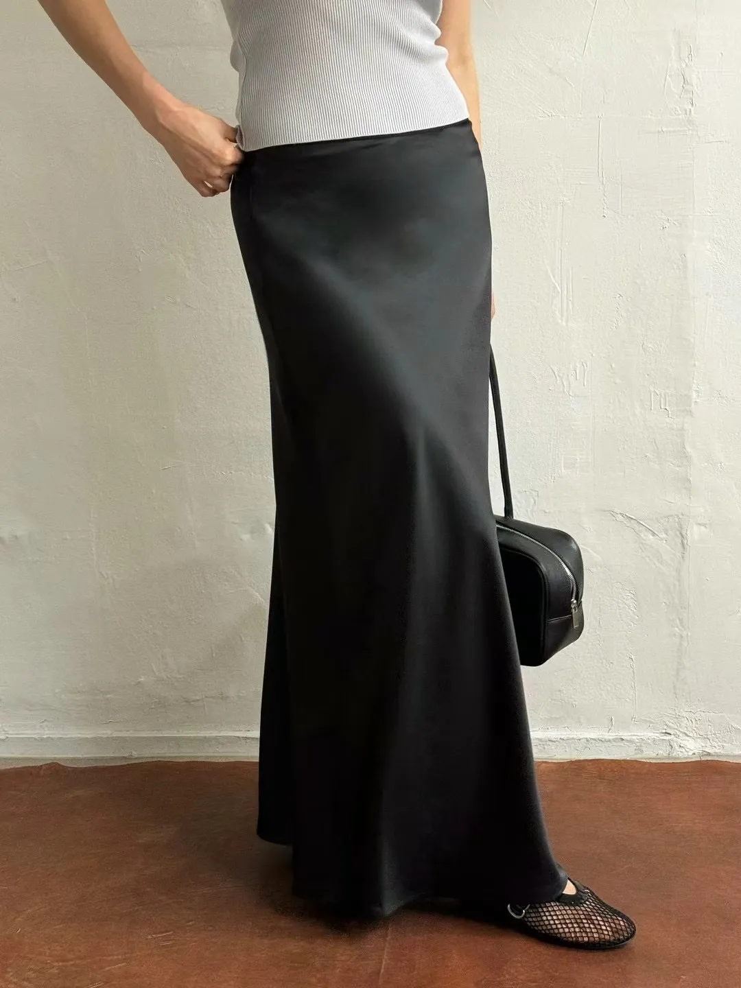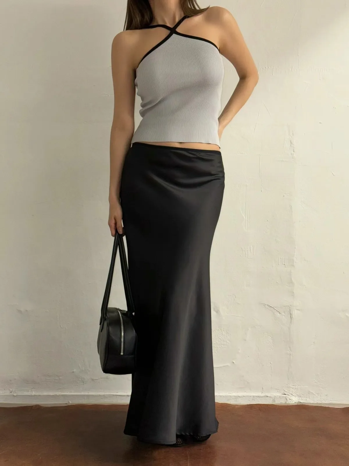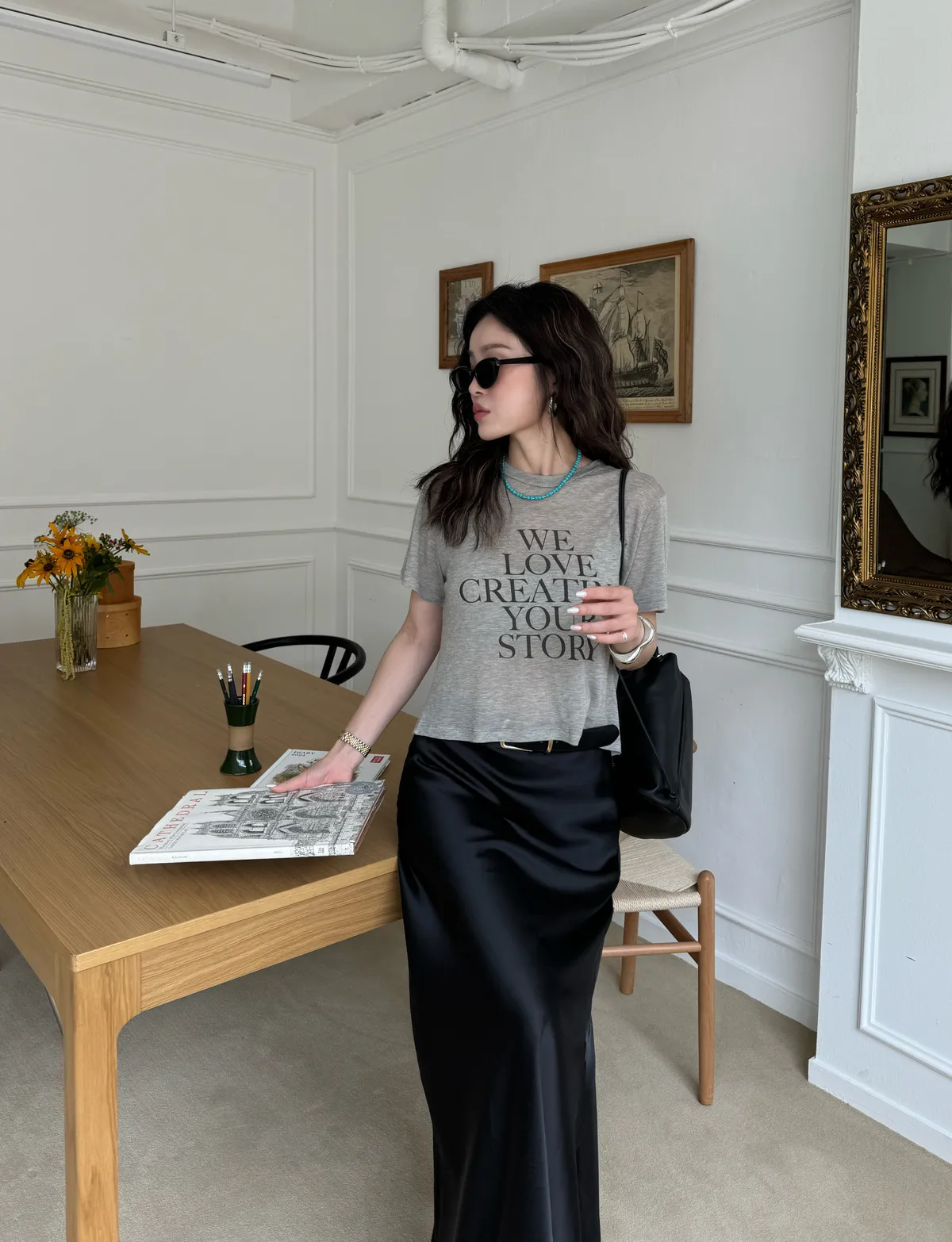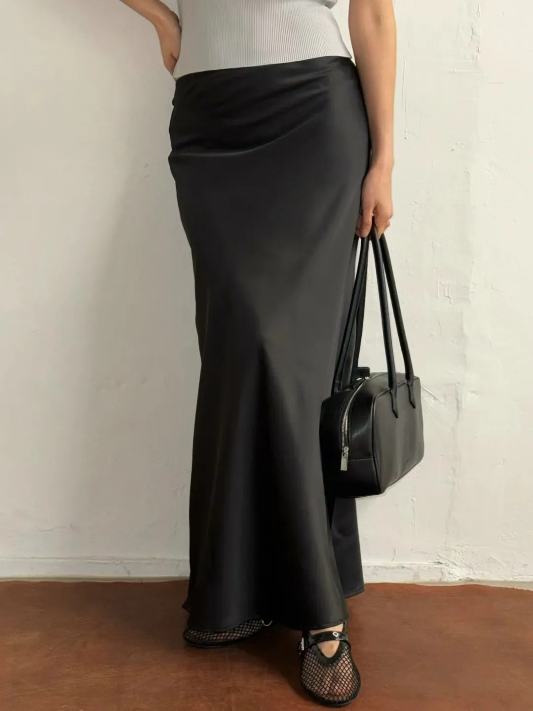 6873彈力緞面裙2.0時髦人必備款改版開衩光澤長裙