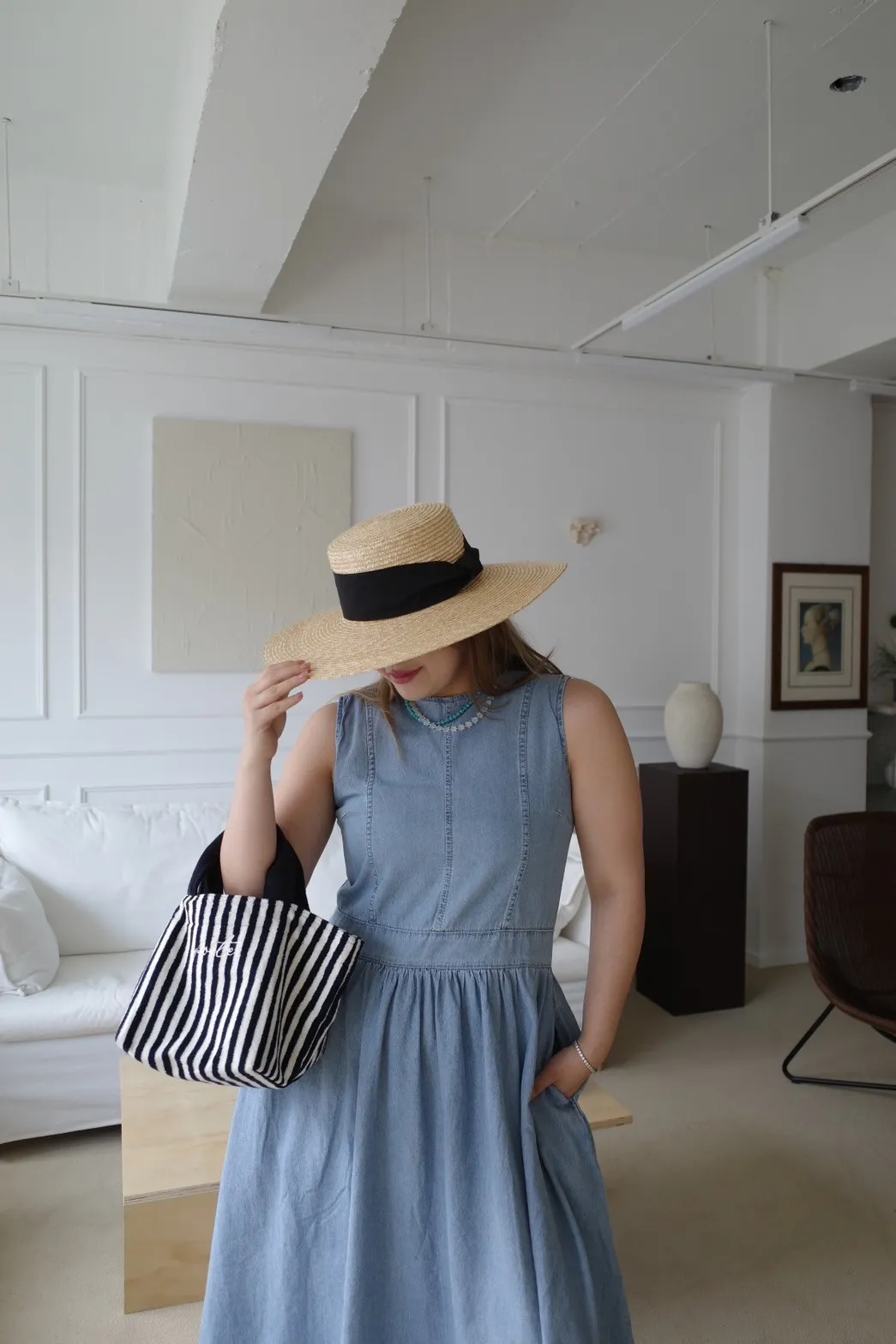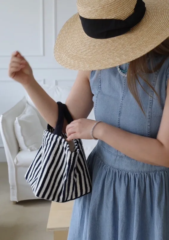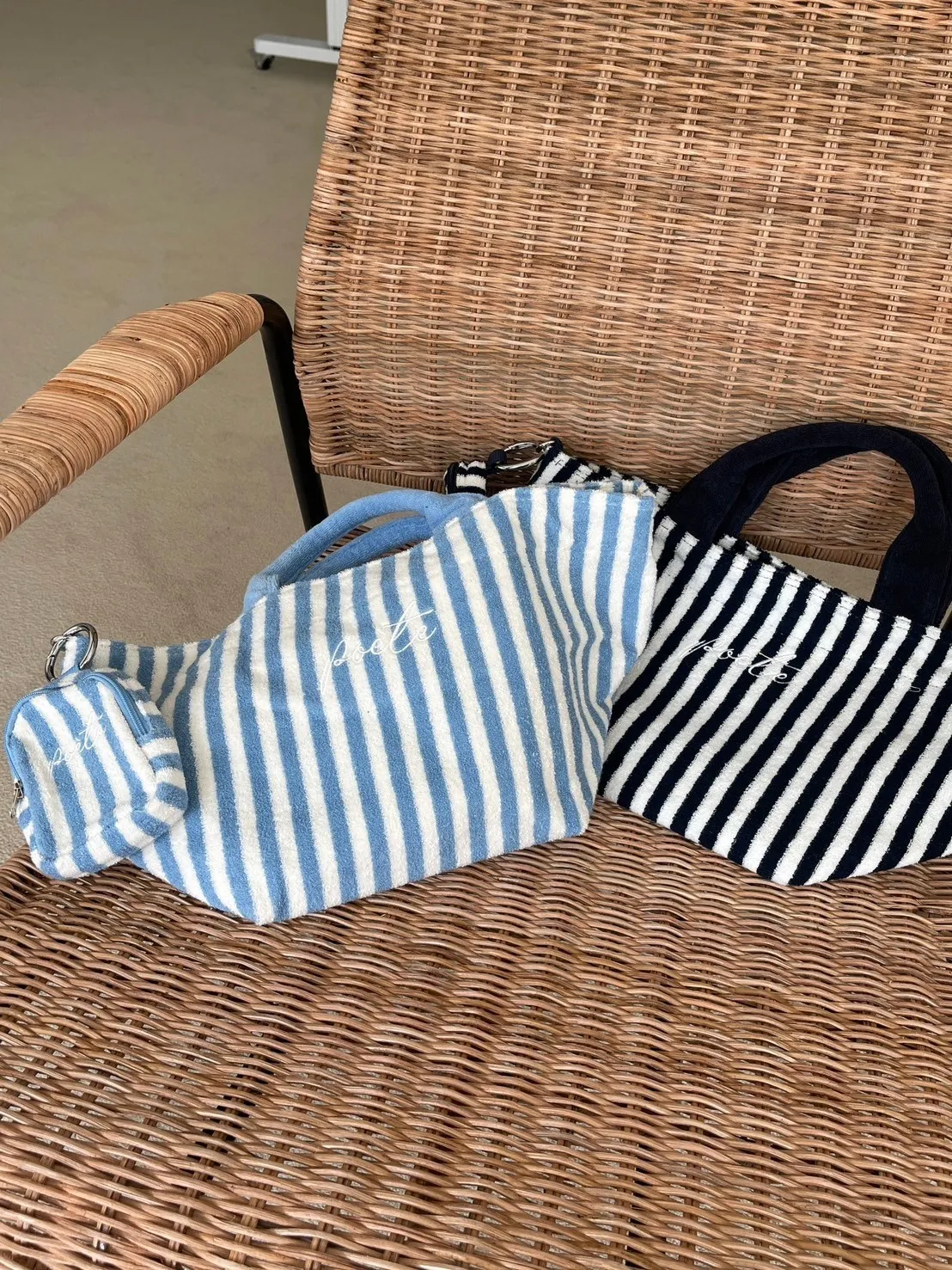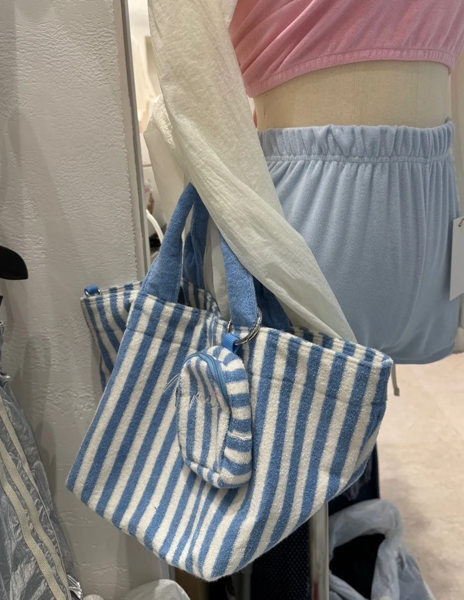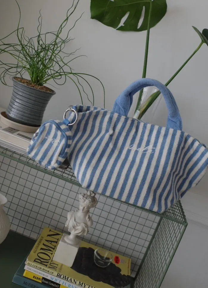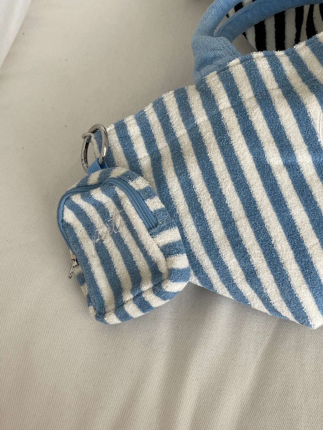 6935條紋毛巾布刺繡托特包+小包掛飾