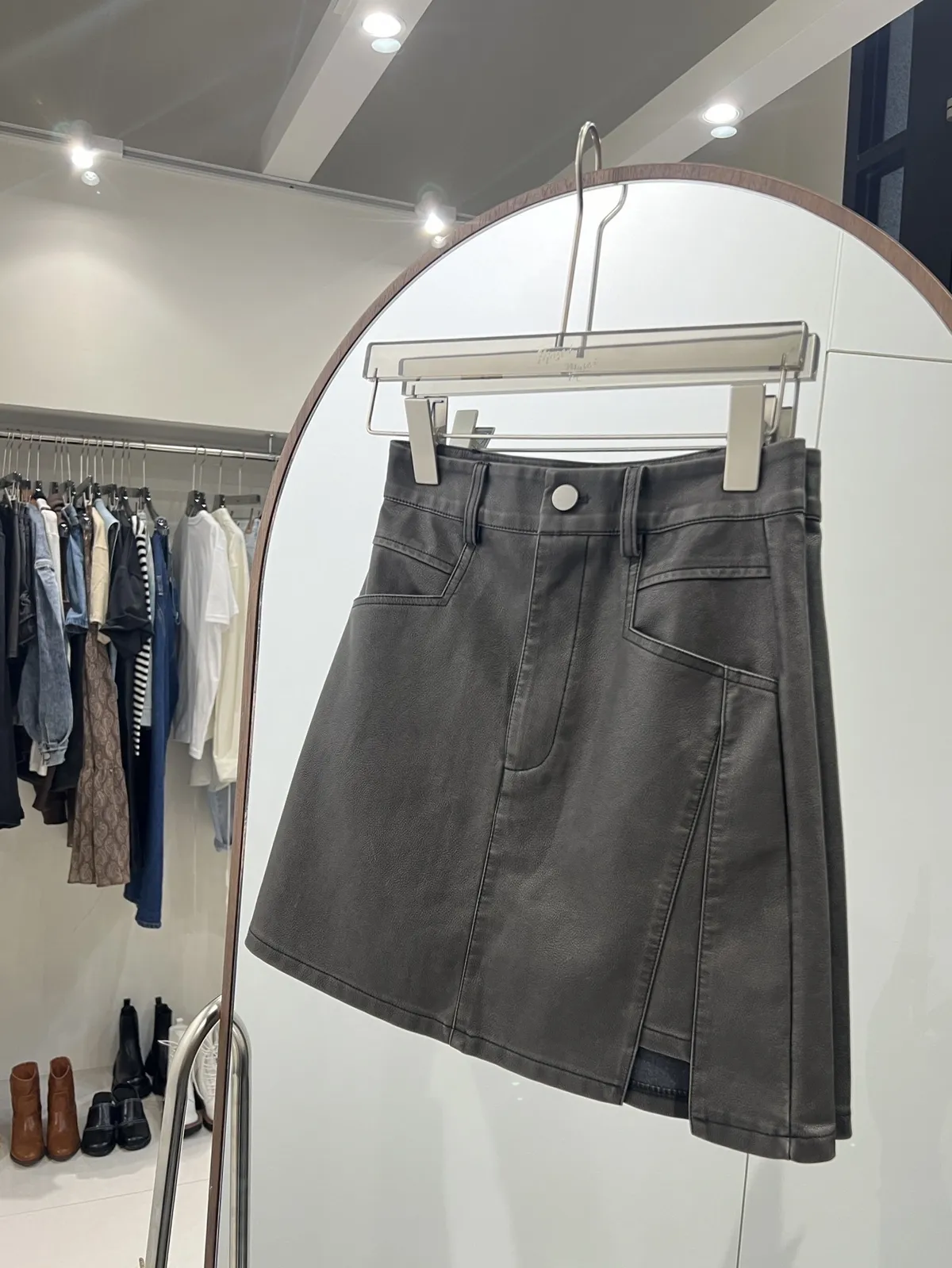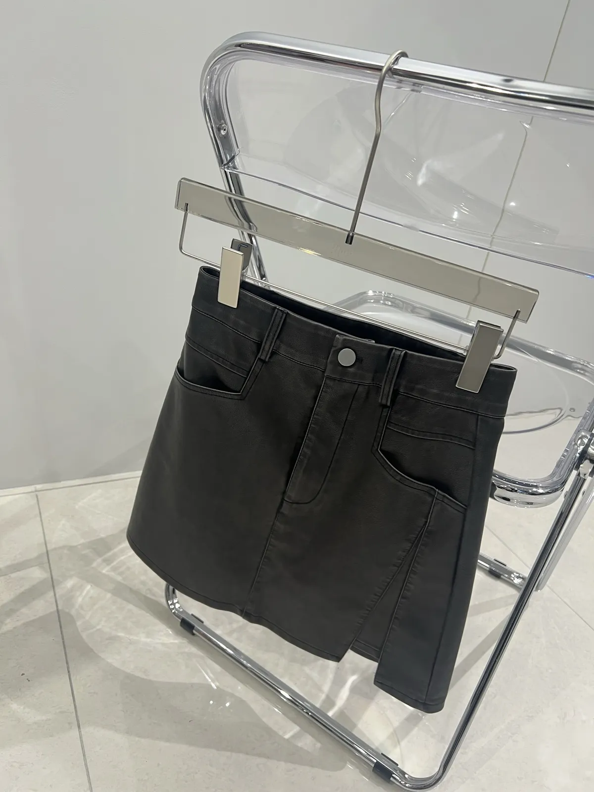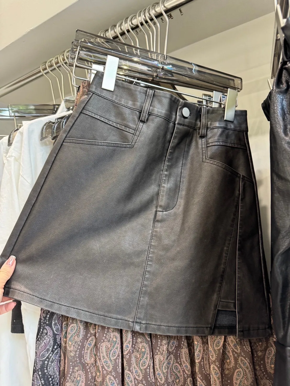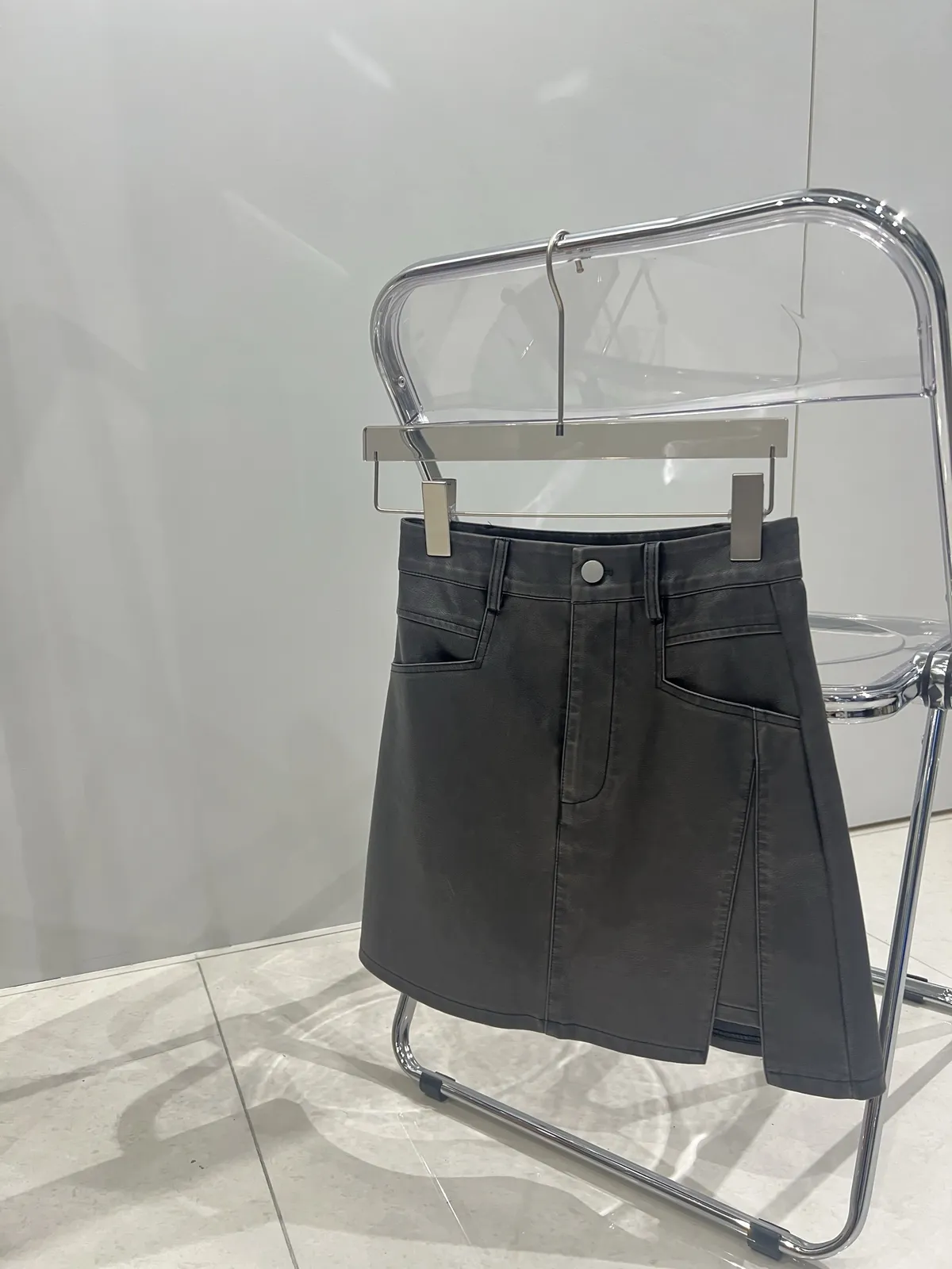 7155洗舊感刷色皮短裙(褲裙)