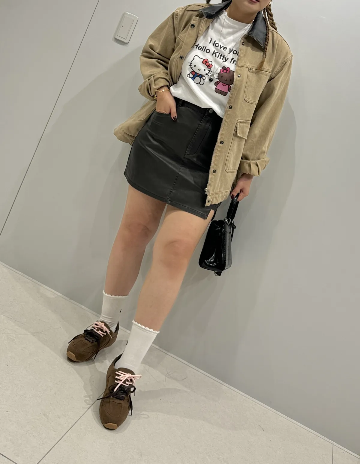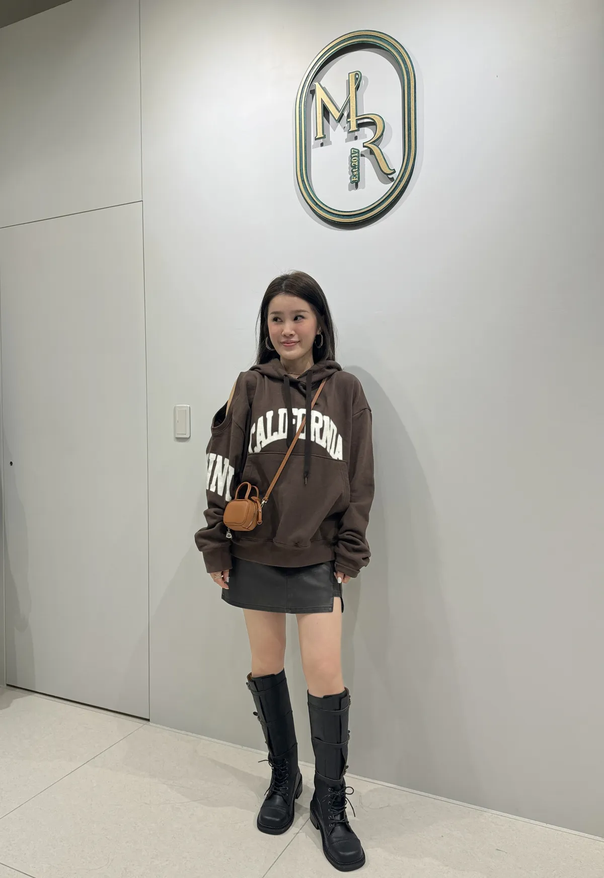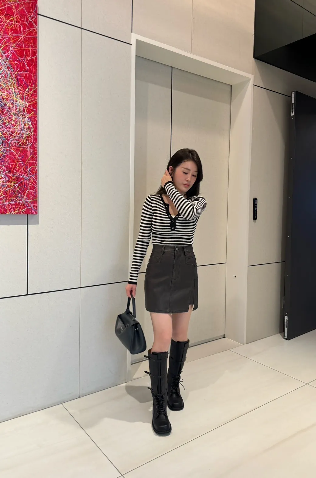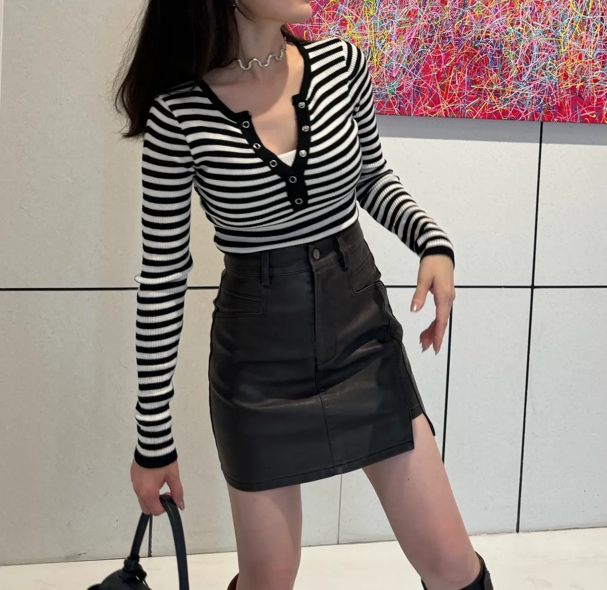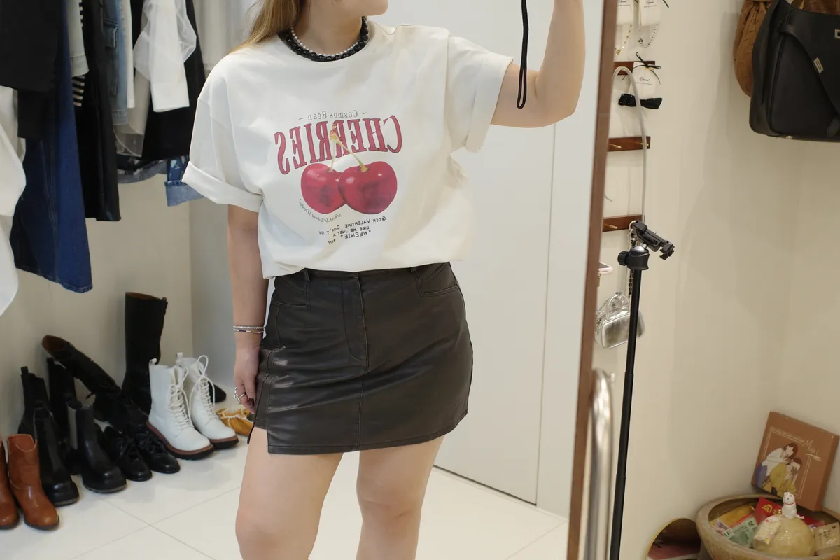 7155洗舊感刷色皮短裙(褲裙)