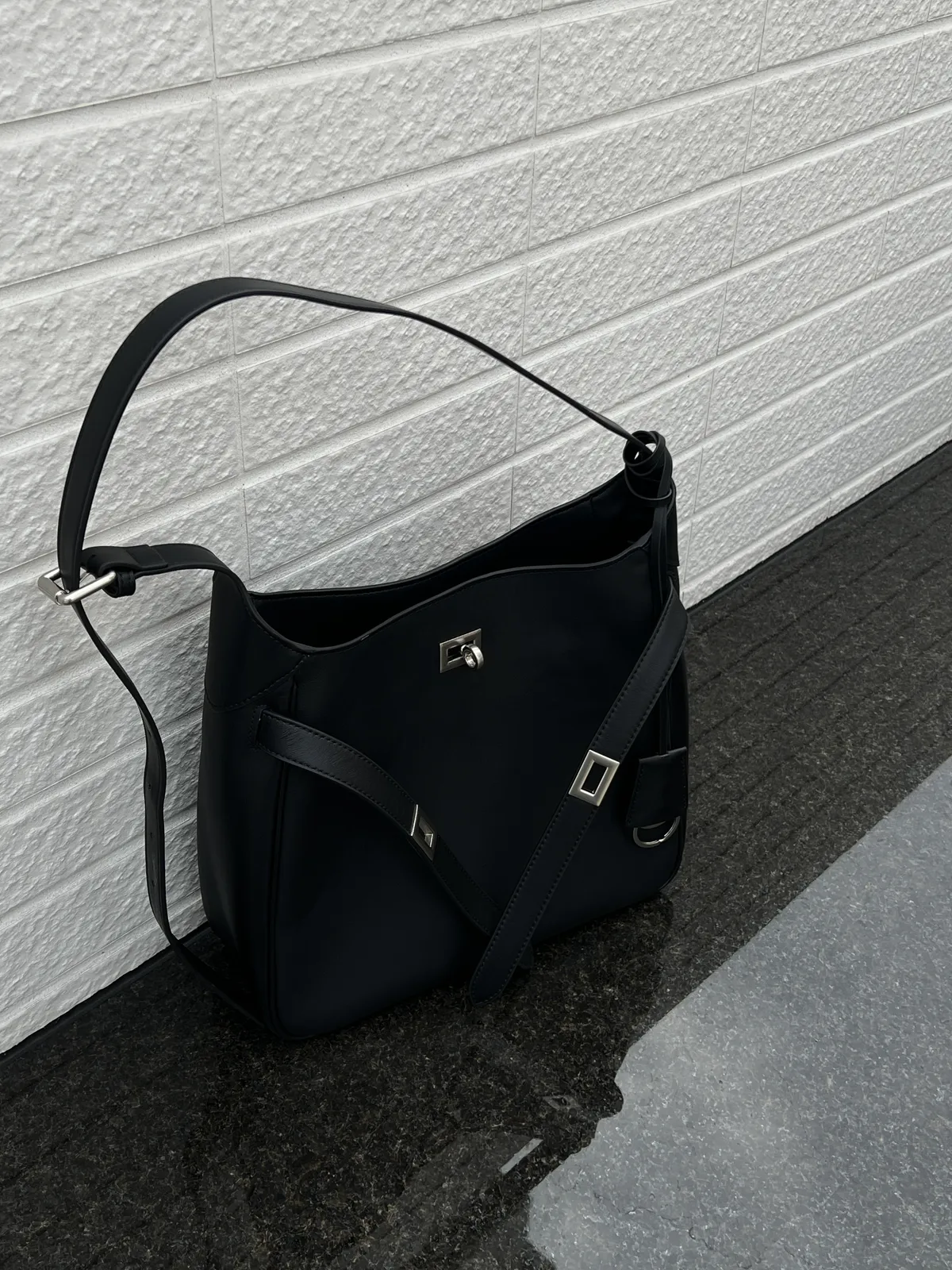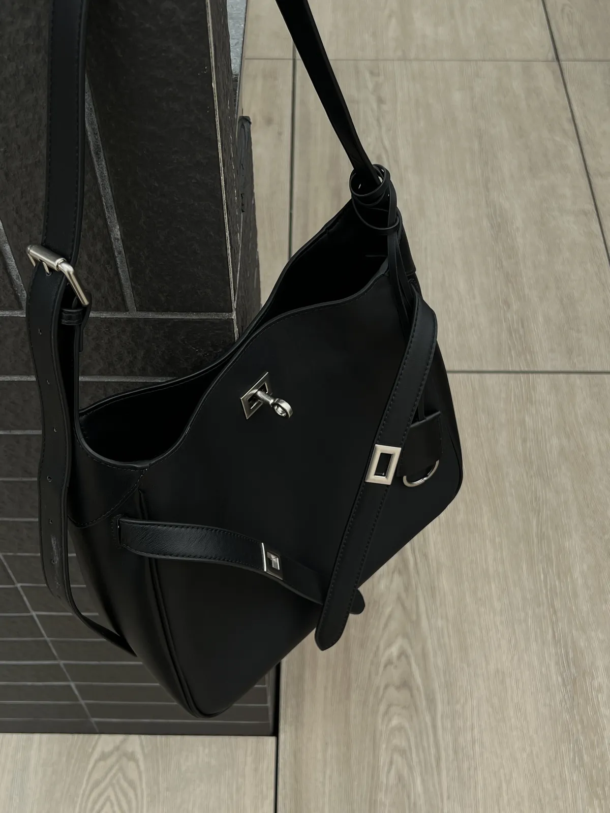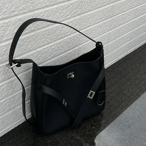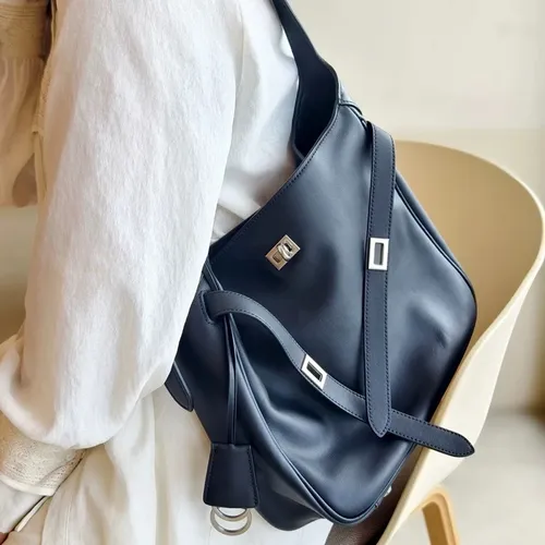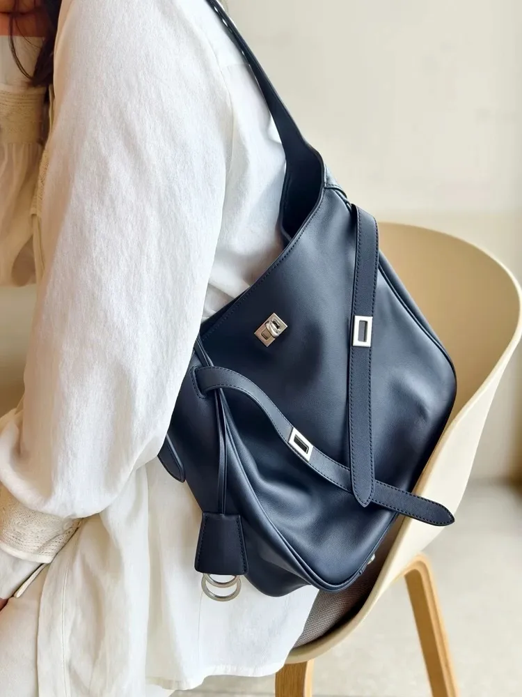 7178牛皮~時髦單肩扣帶托特水桶包