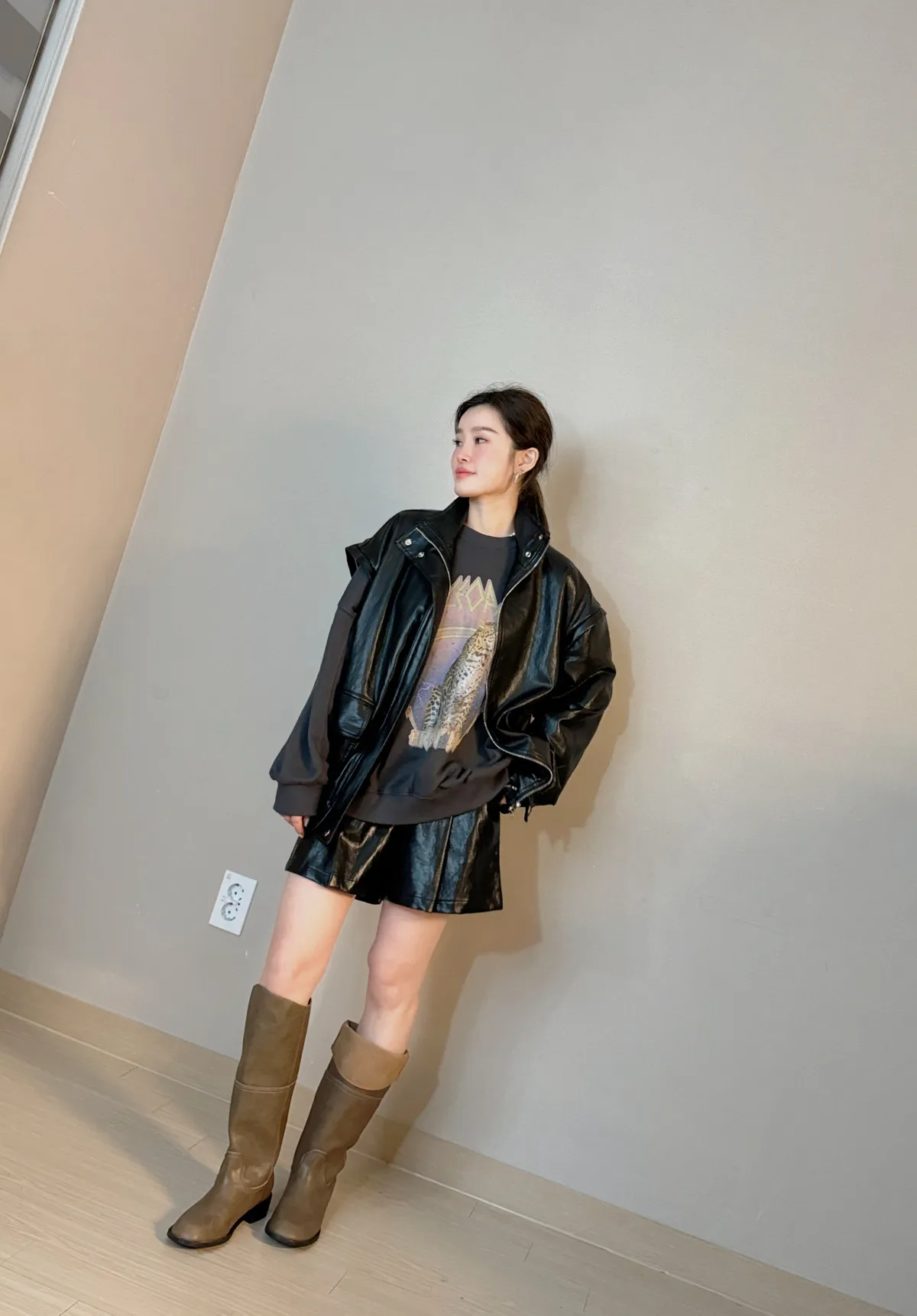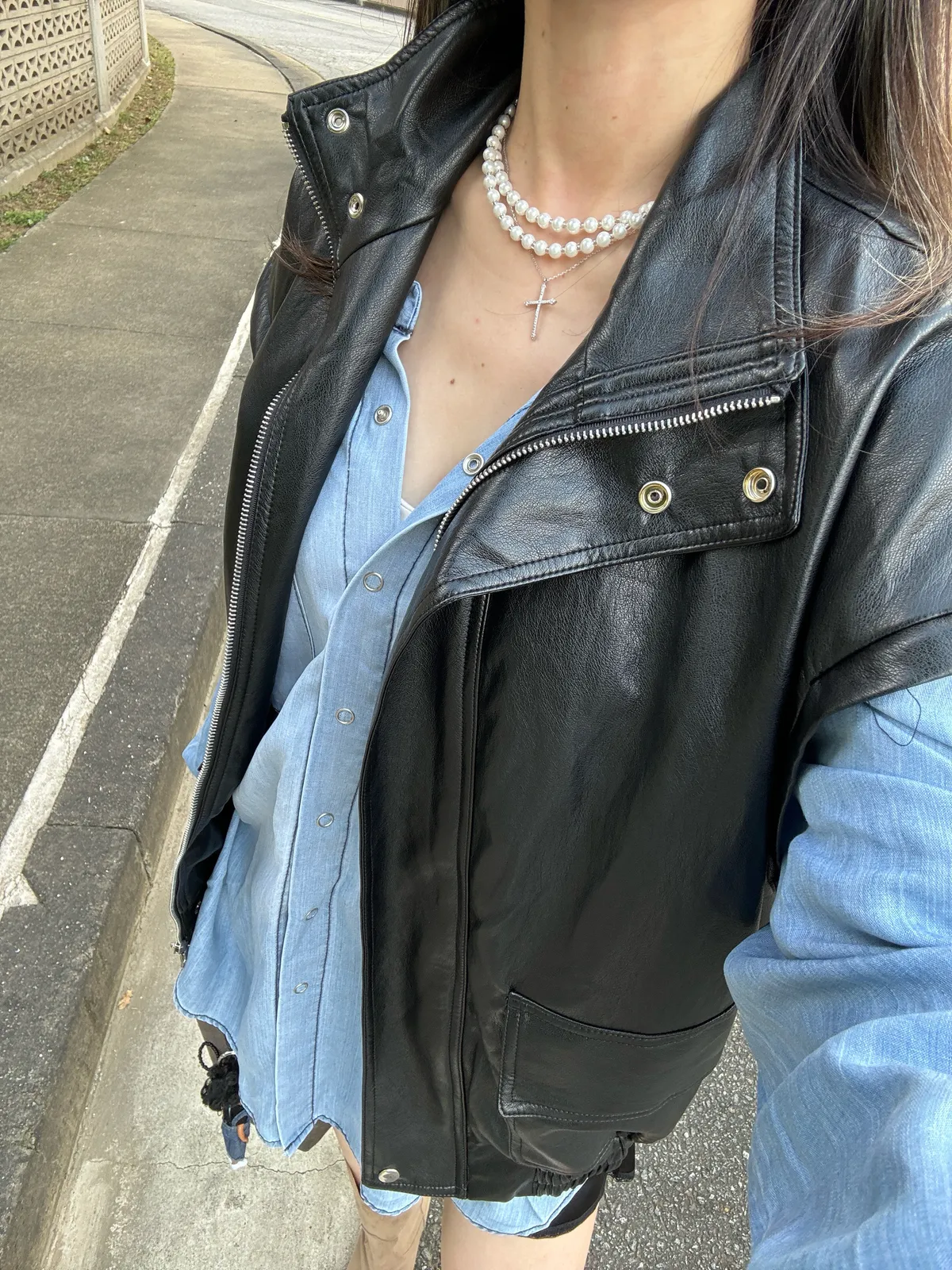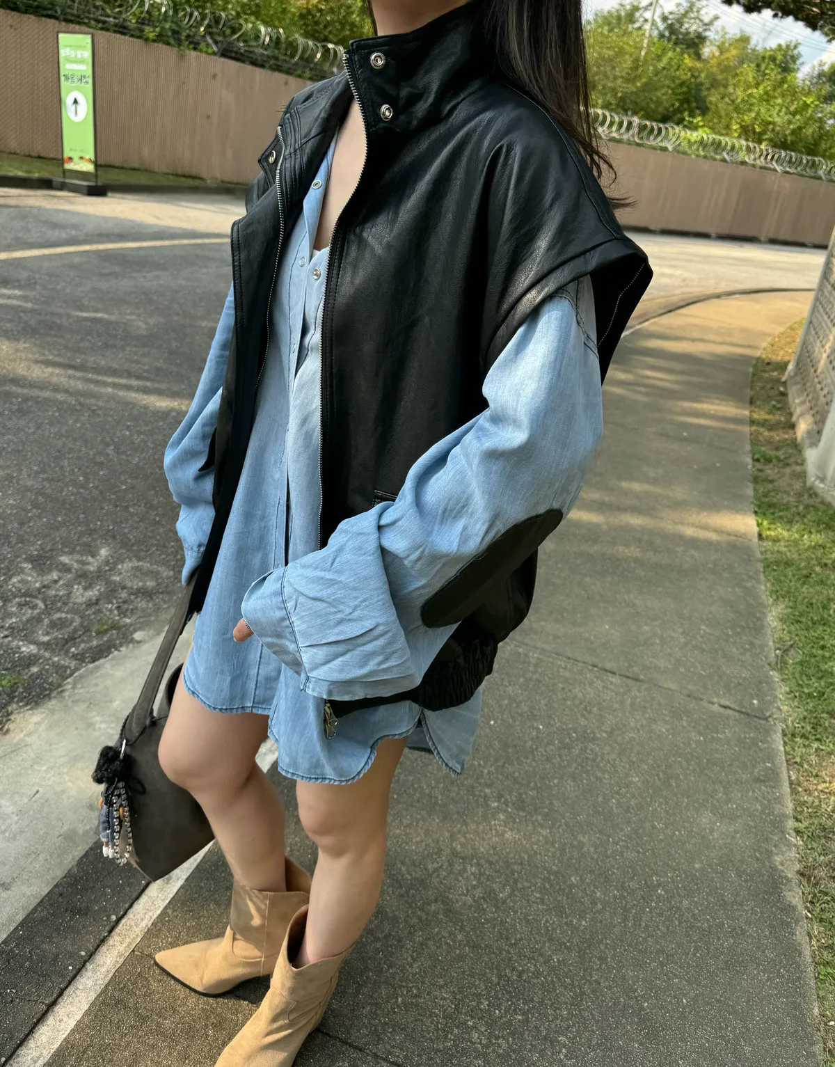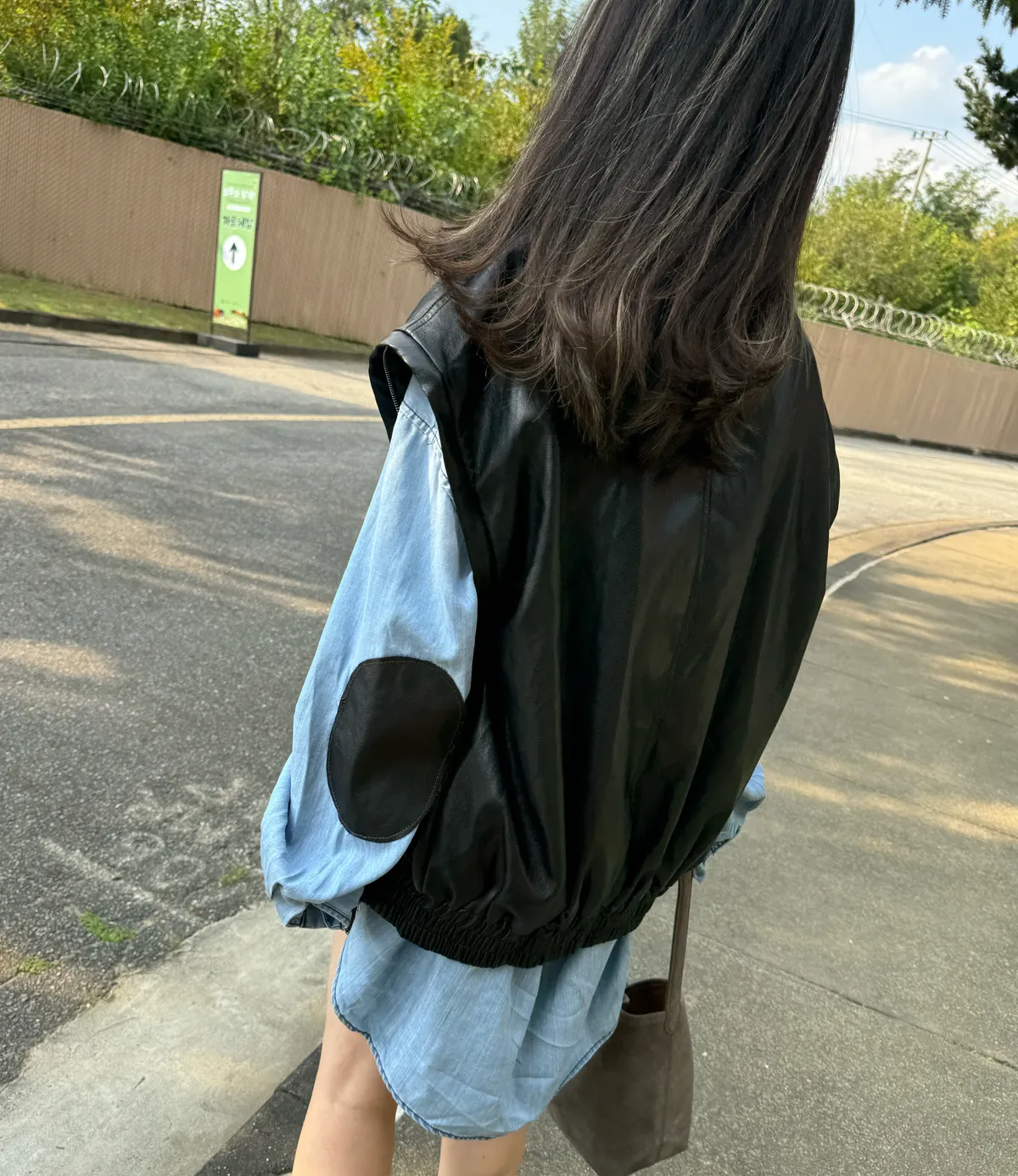 7285 獨家自製款 時髦個性 類羊皮手感皮革夾克/背心