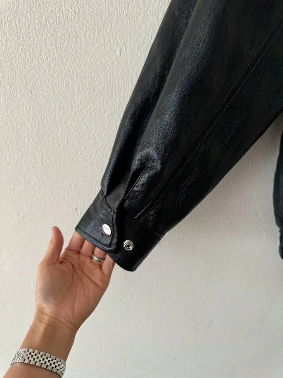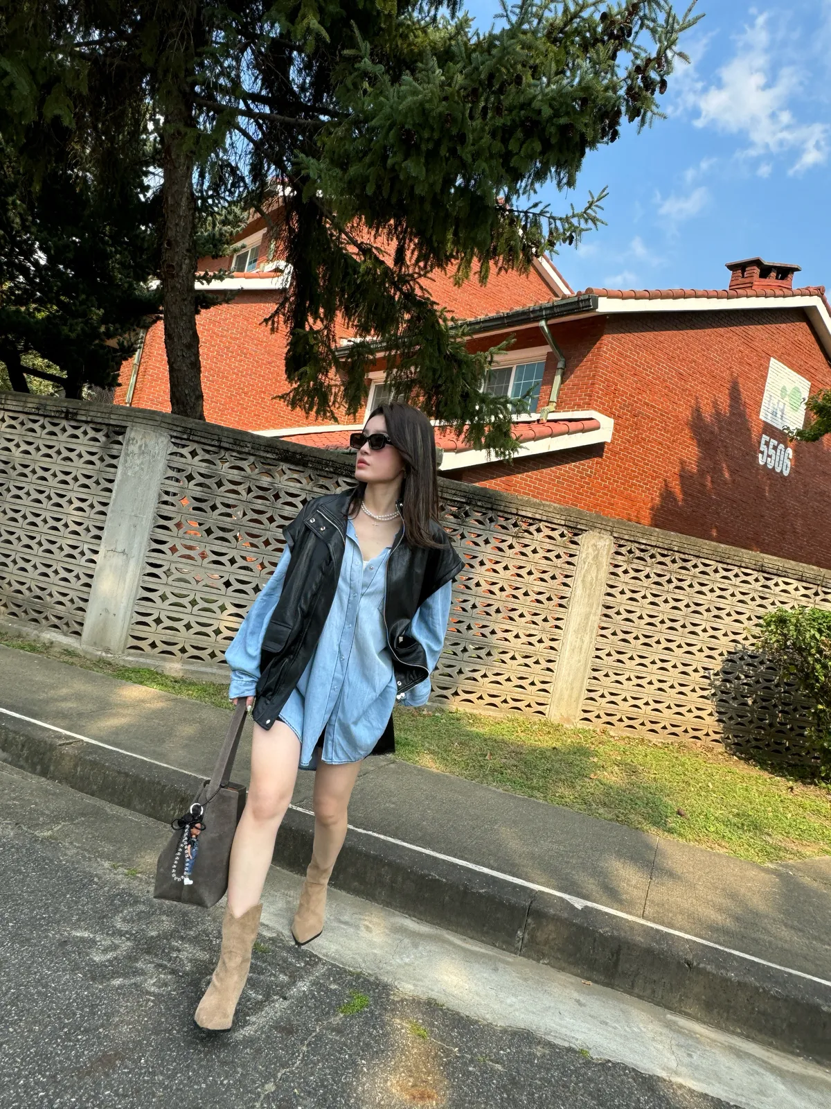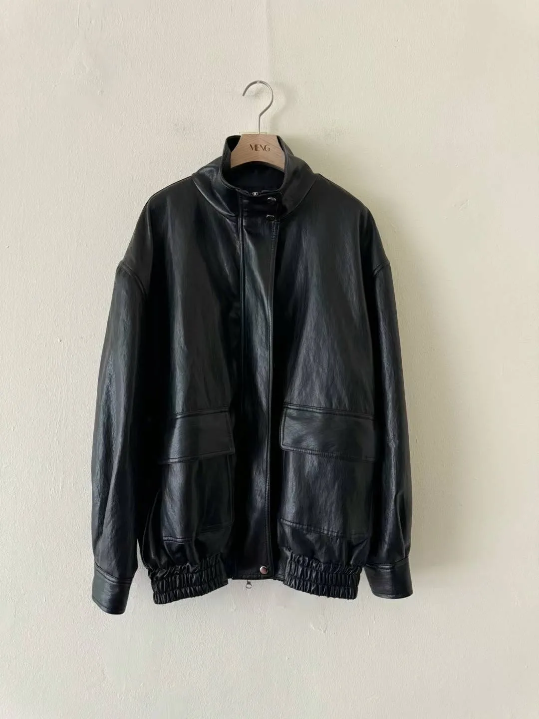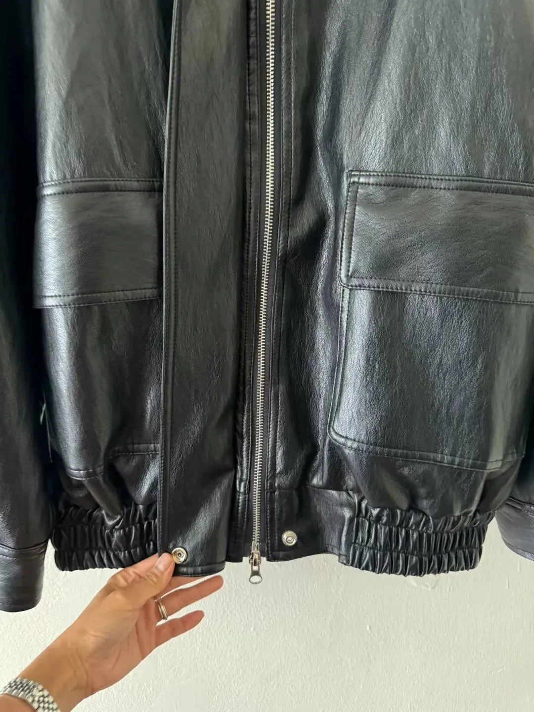 7285 獨家自製款 時髦個性 類羊皮手感皮革夾克/背心