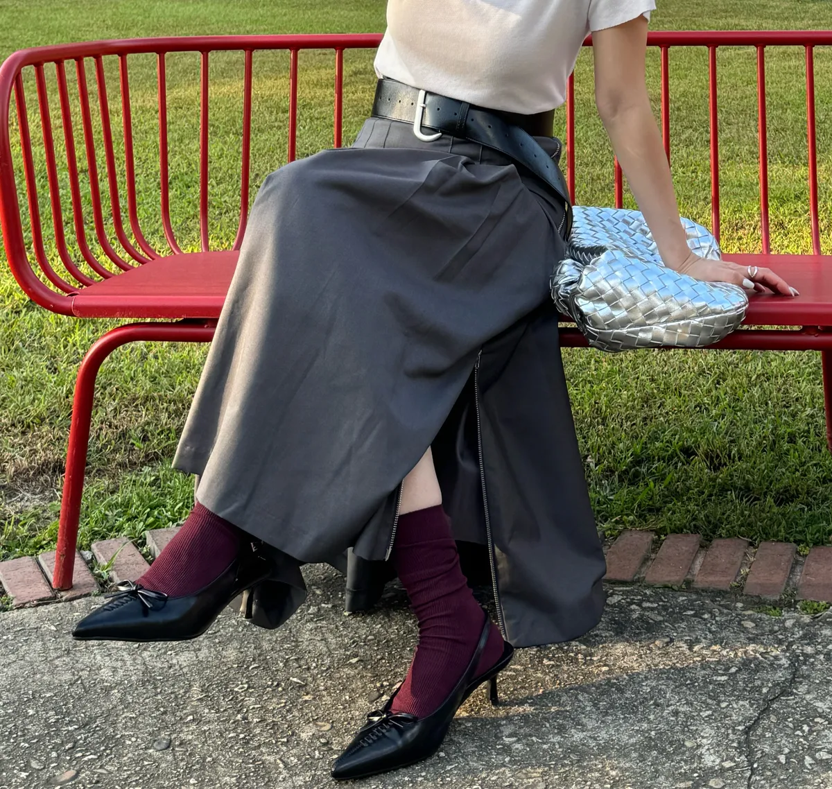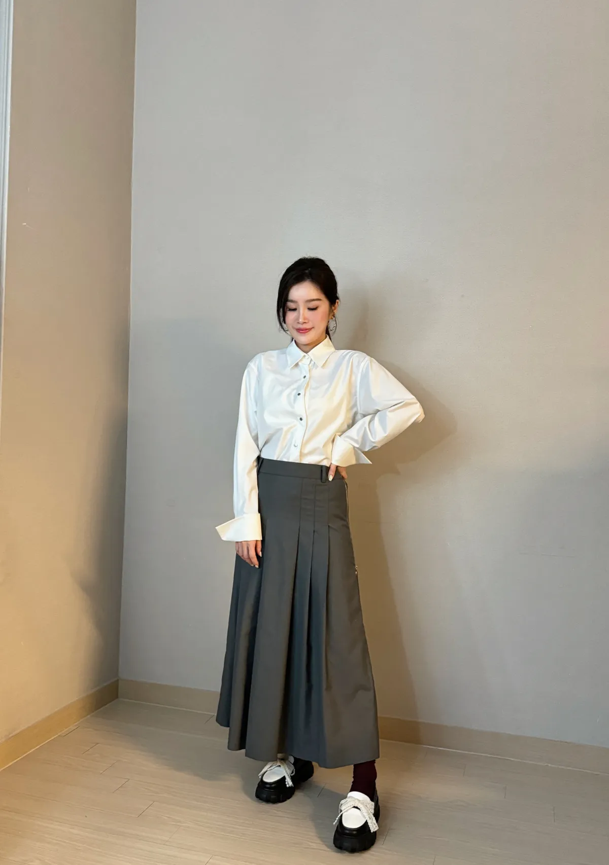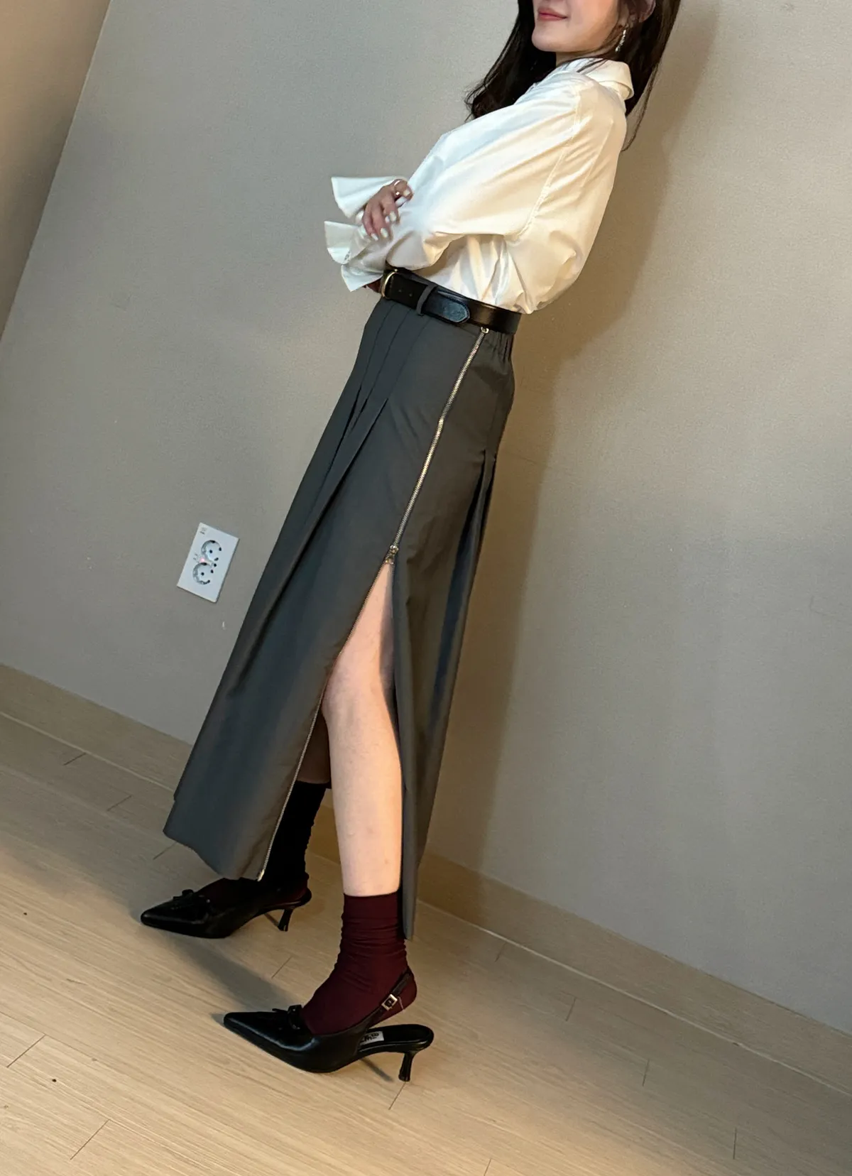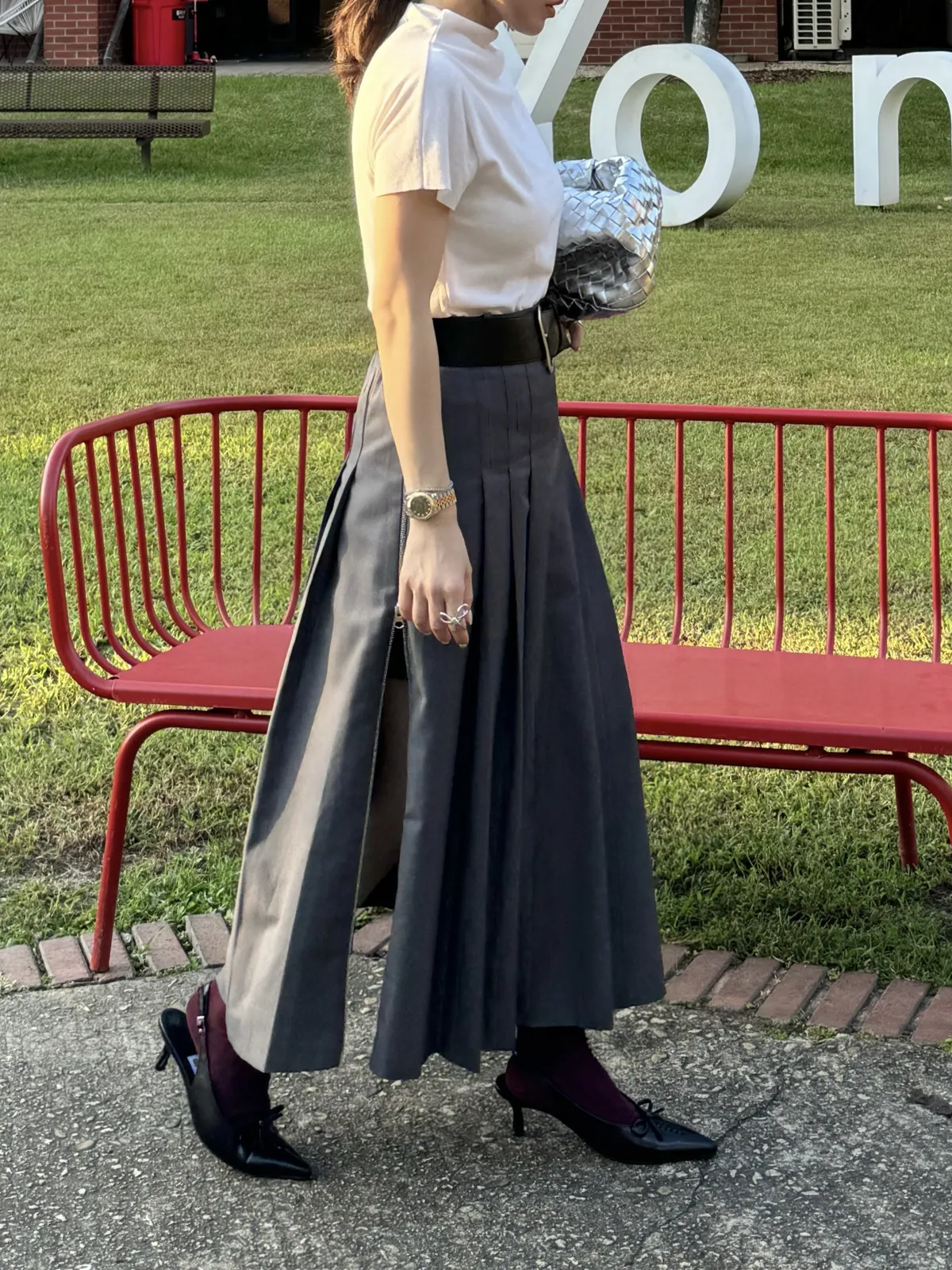 7286 獨家訂製款高級灰摺拉鏈百褶長裙
