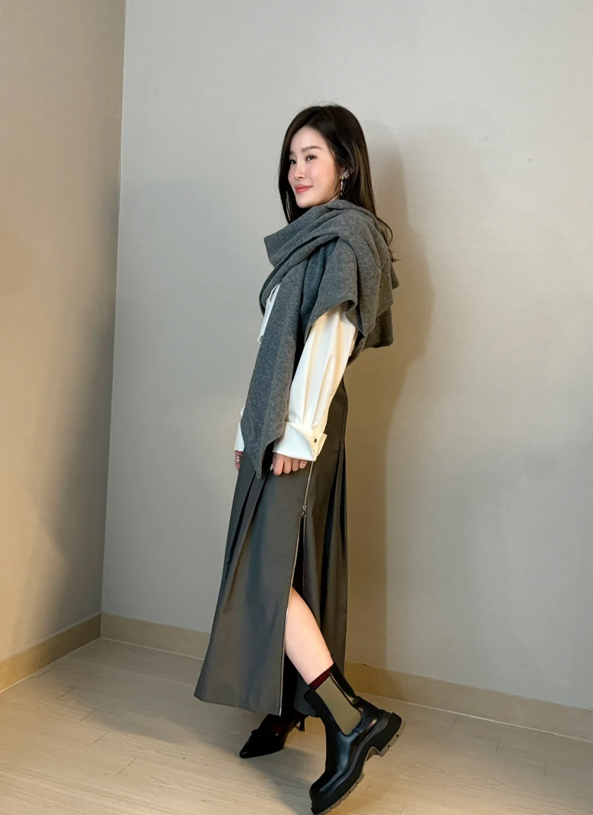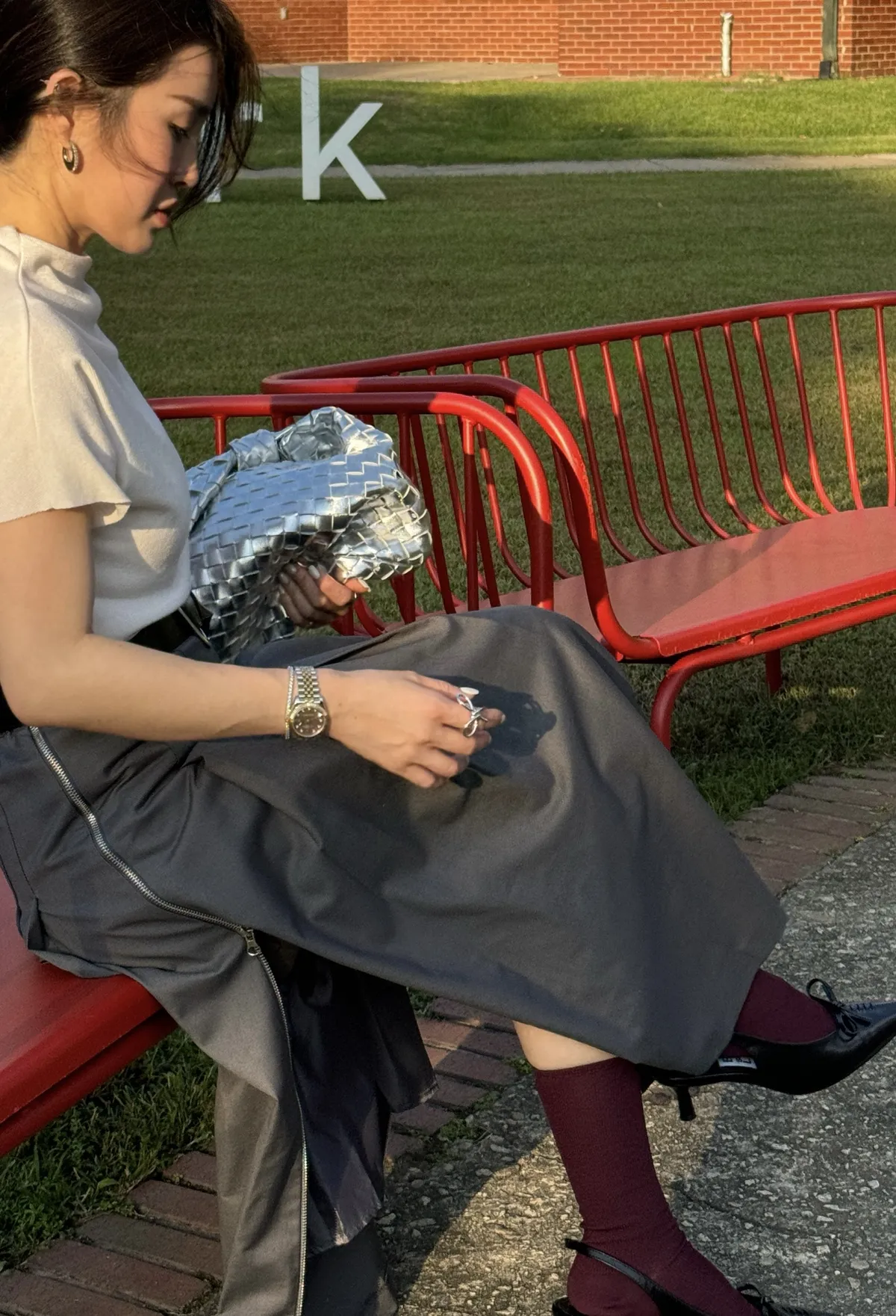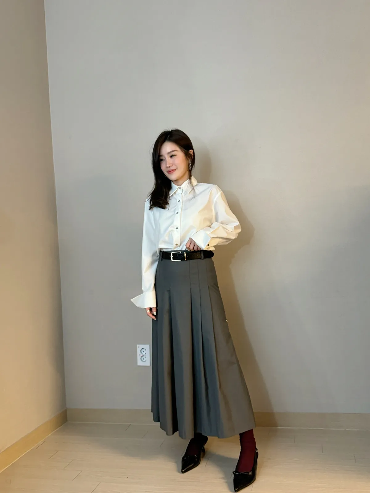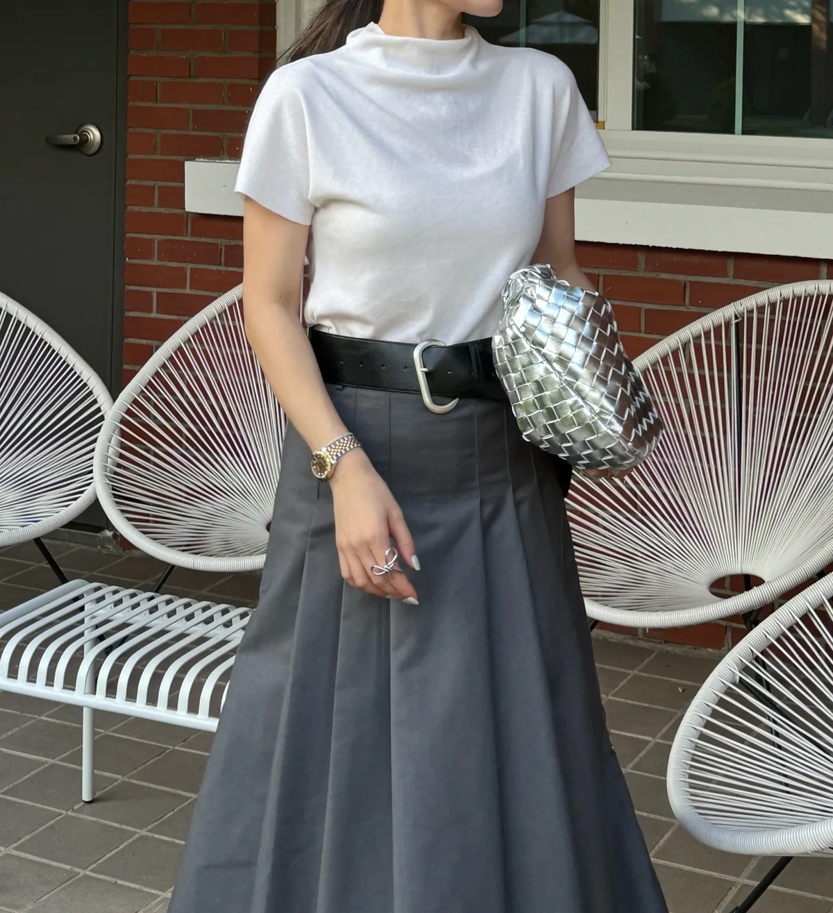 7286 獨家訂製款高級灰摺拉鏈百褶長裙
