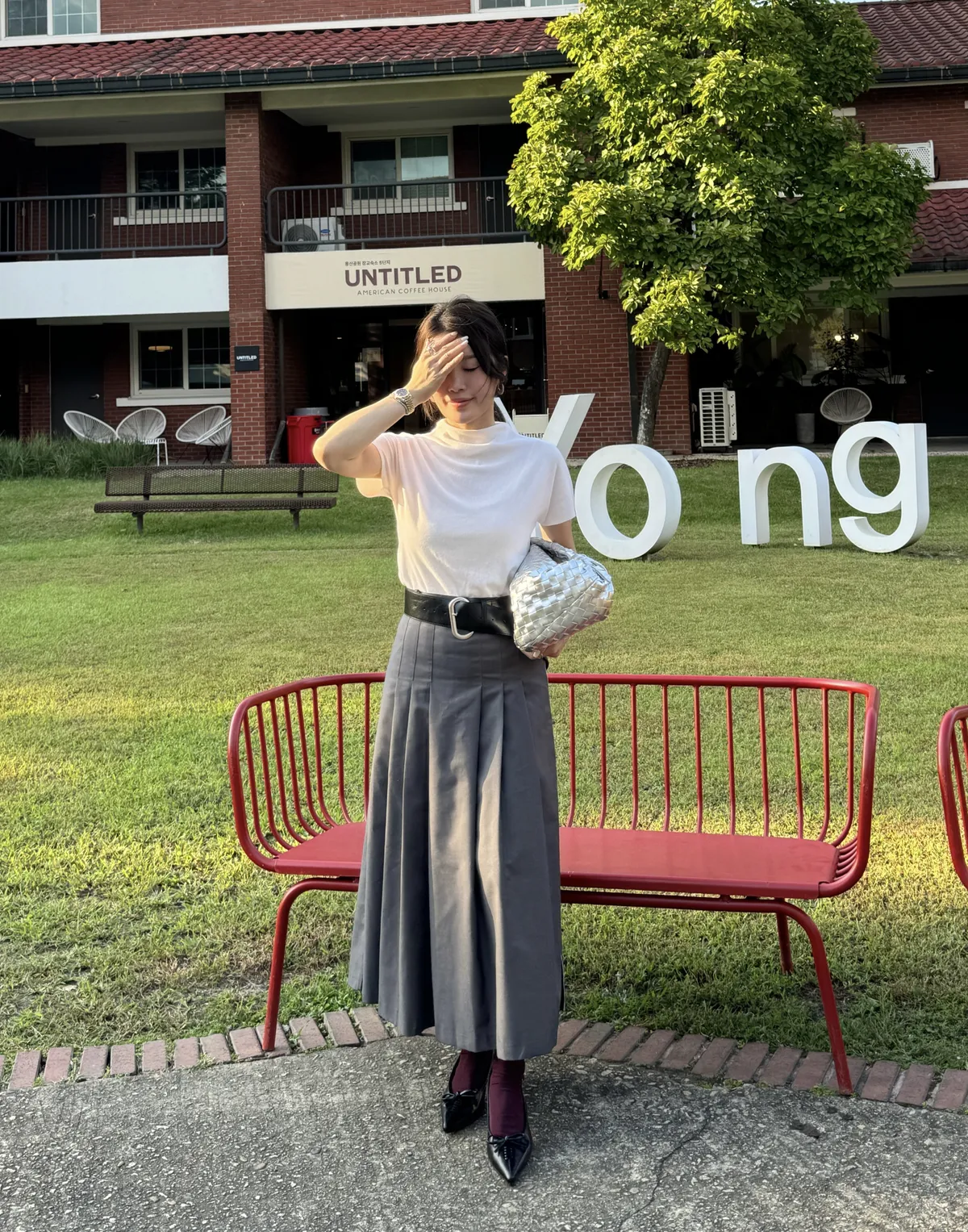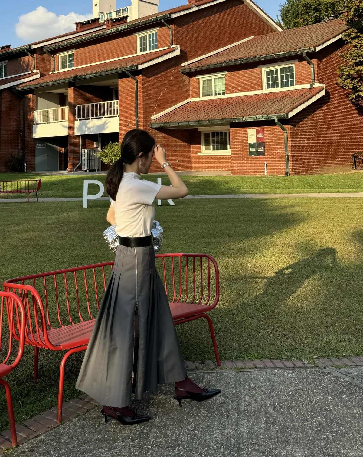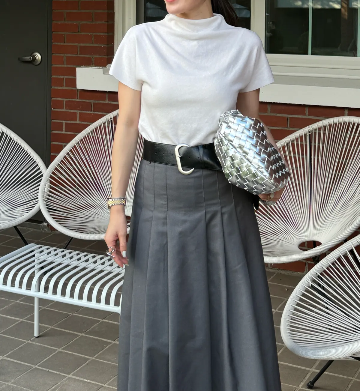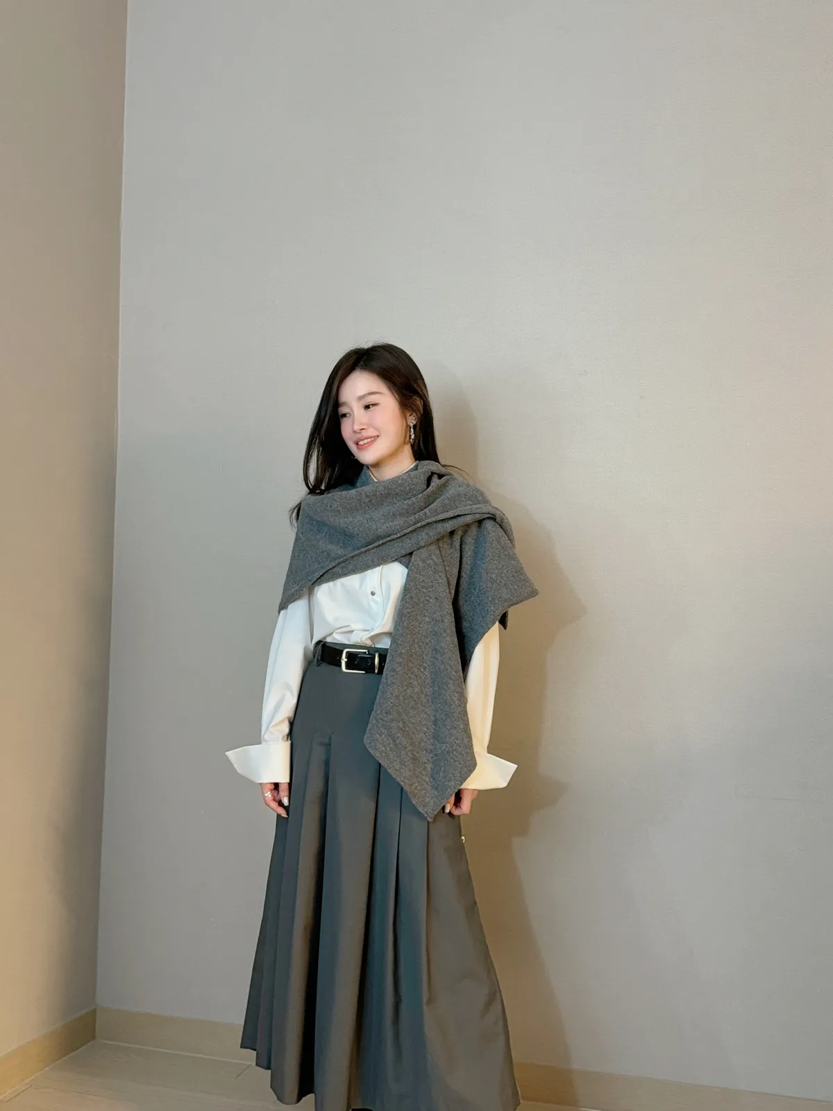 7286 獨家訂製款高級灰摺拉鏈百褶長裙
