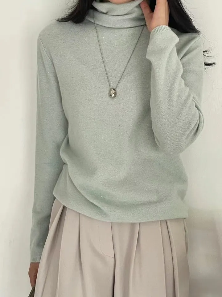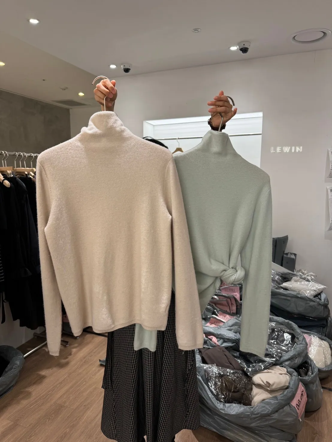 7337低飽和色系微奢閃亮高領氣質毛衣