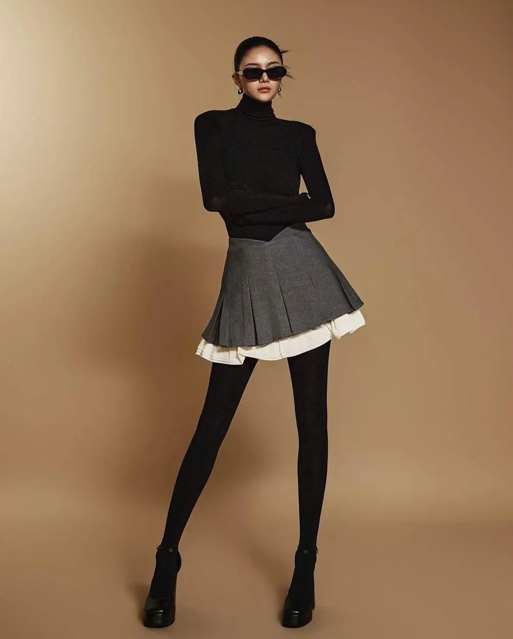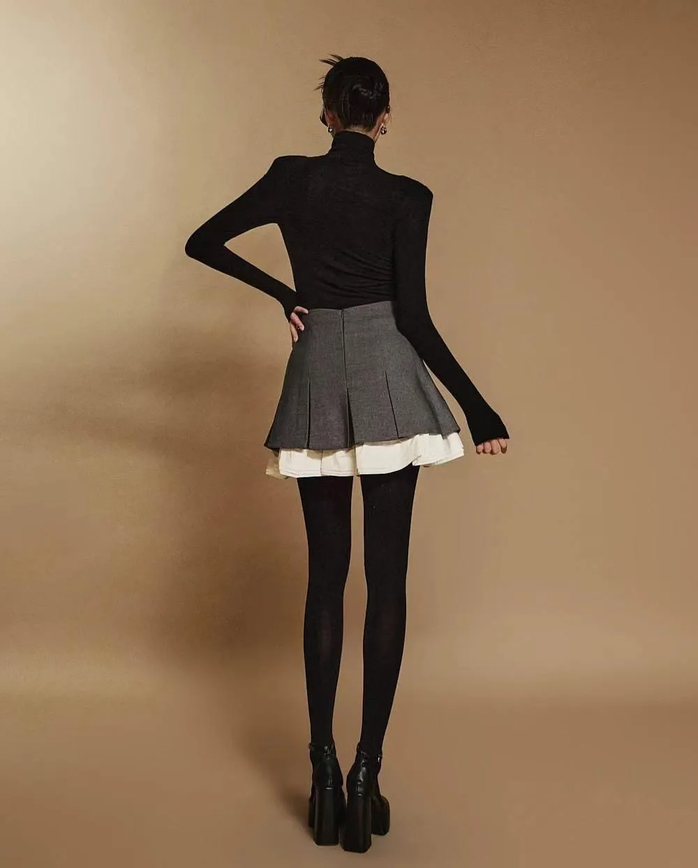 7342巴黎鐵塔穿搭百褶層次裙襬