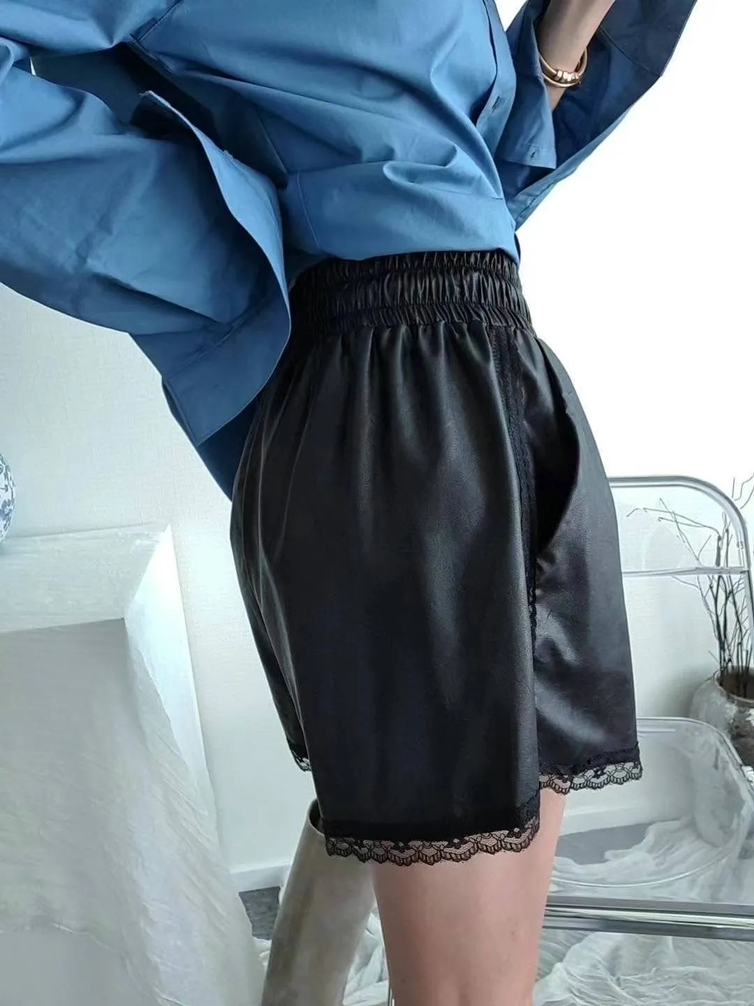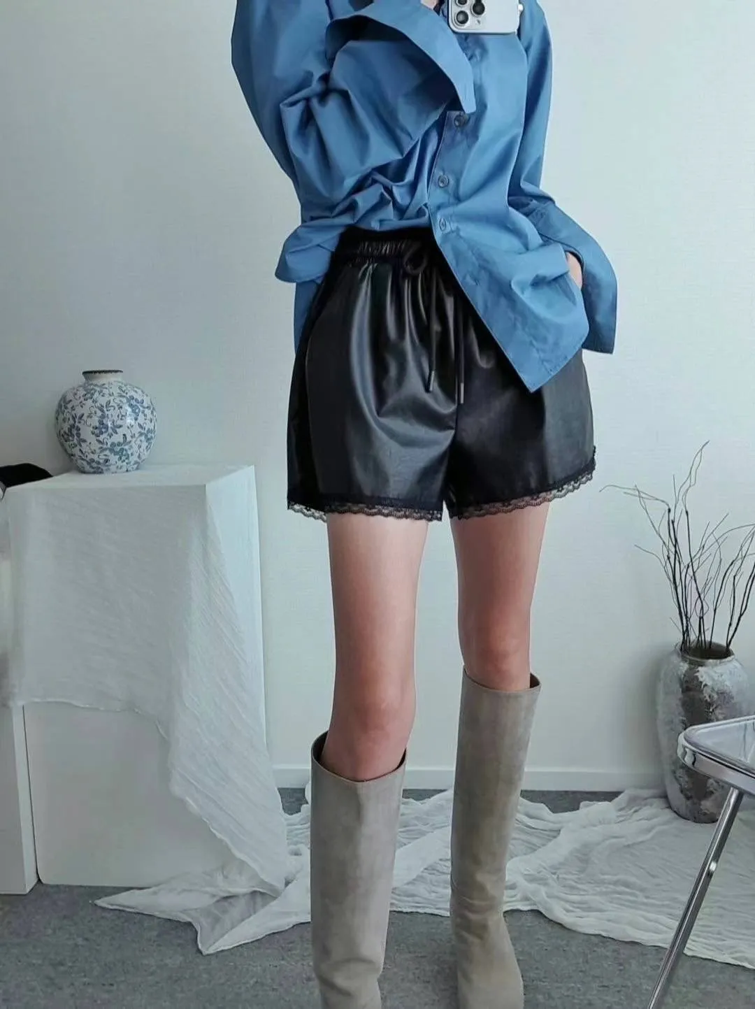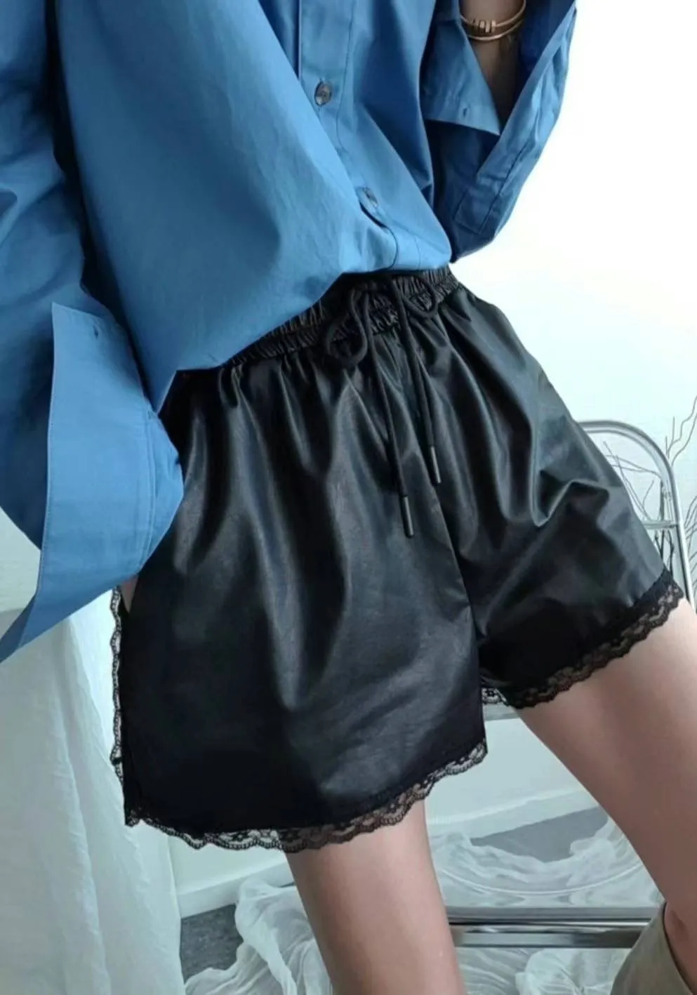 7389不放過一絲浪漫蕾絲滾邊皮短褲