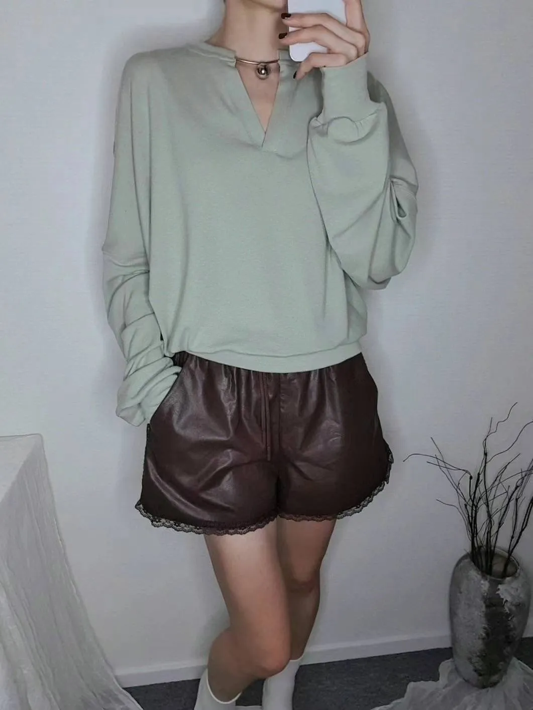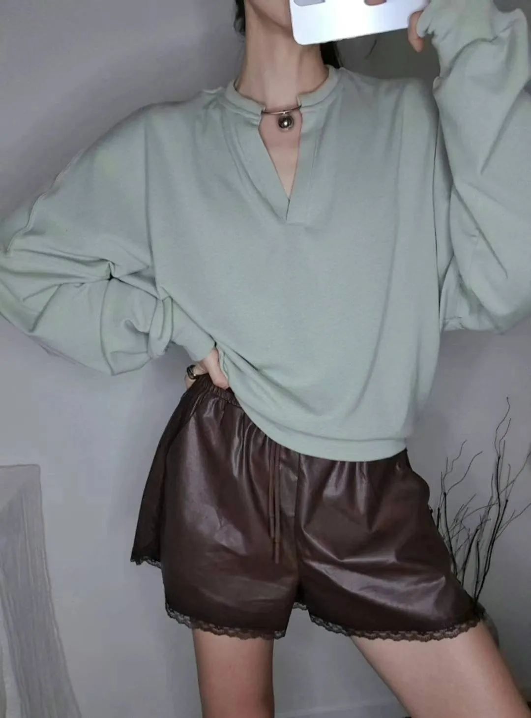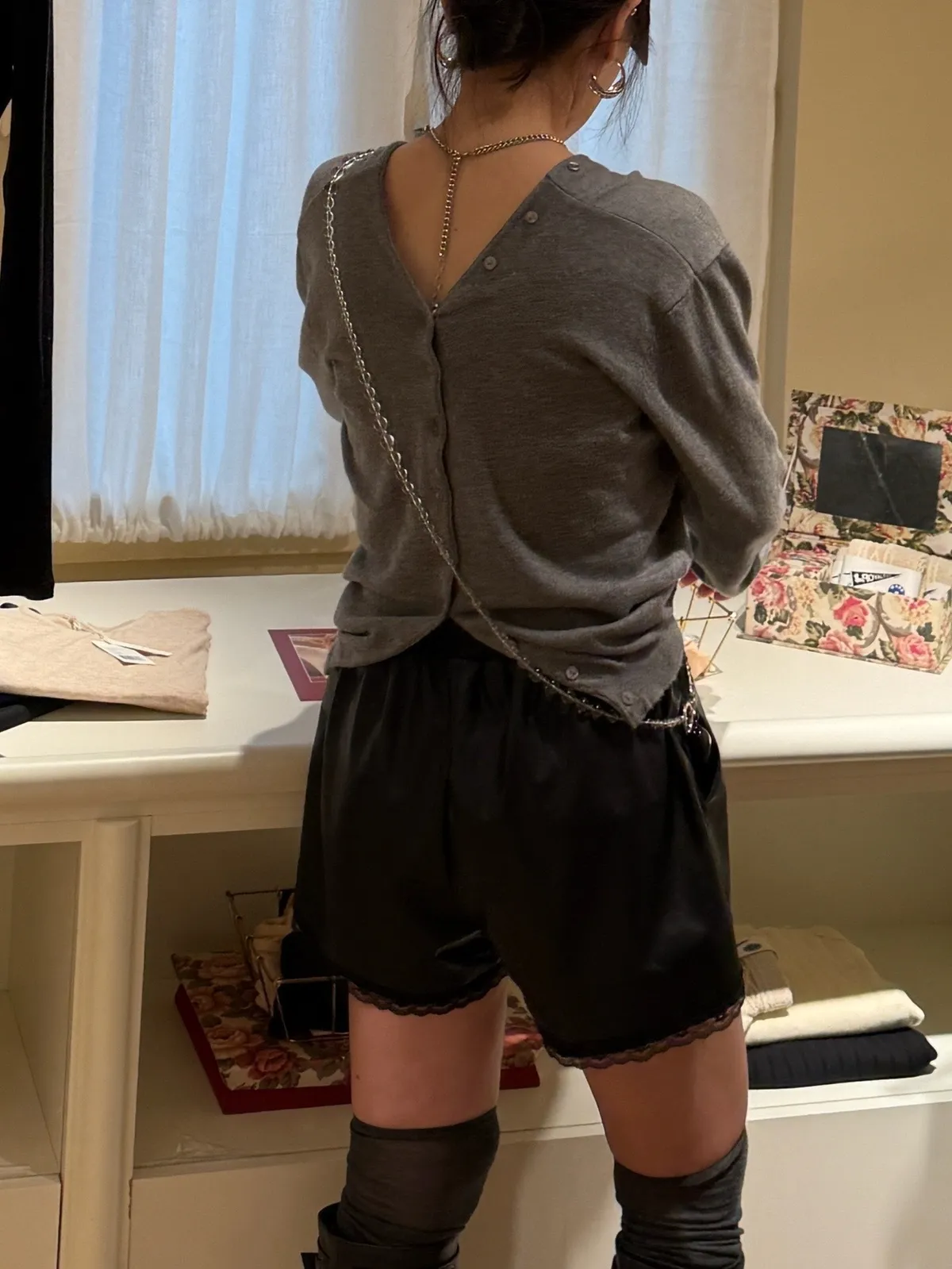 7389不放過一絲浪漫蕾絲滾邊皮短褲