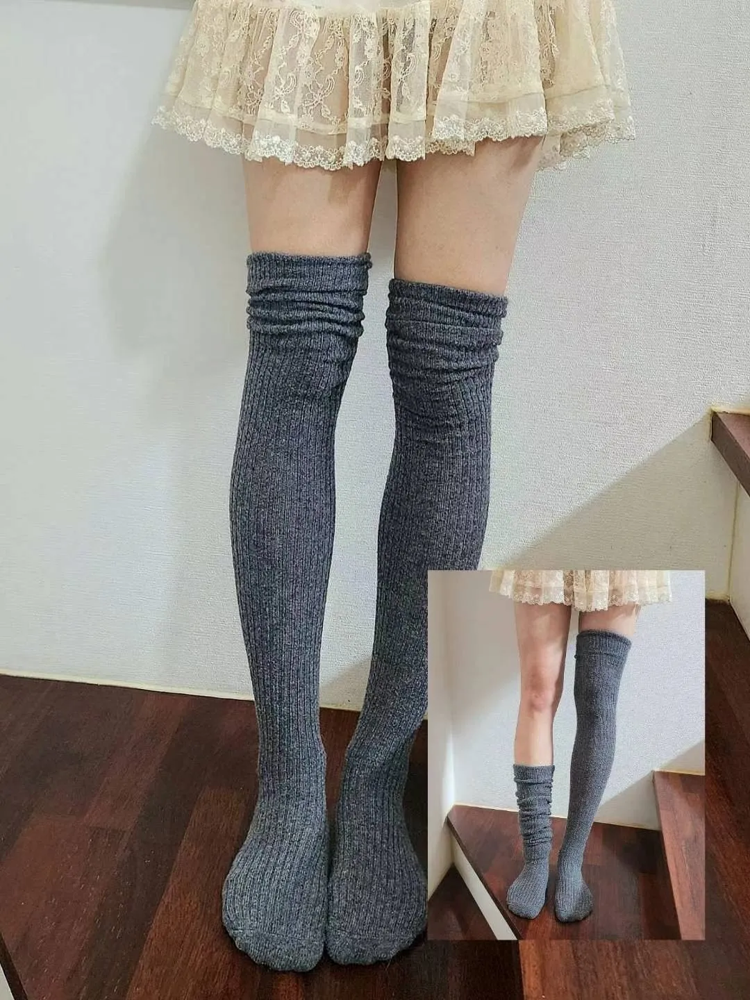 7558羊毛膝上長襪(含羊絨)
