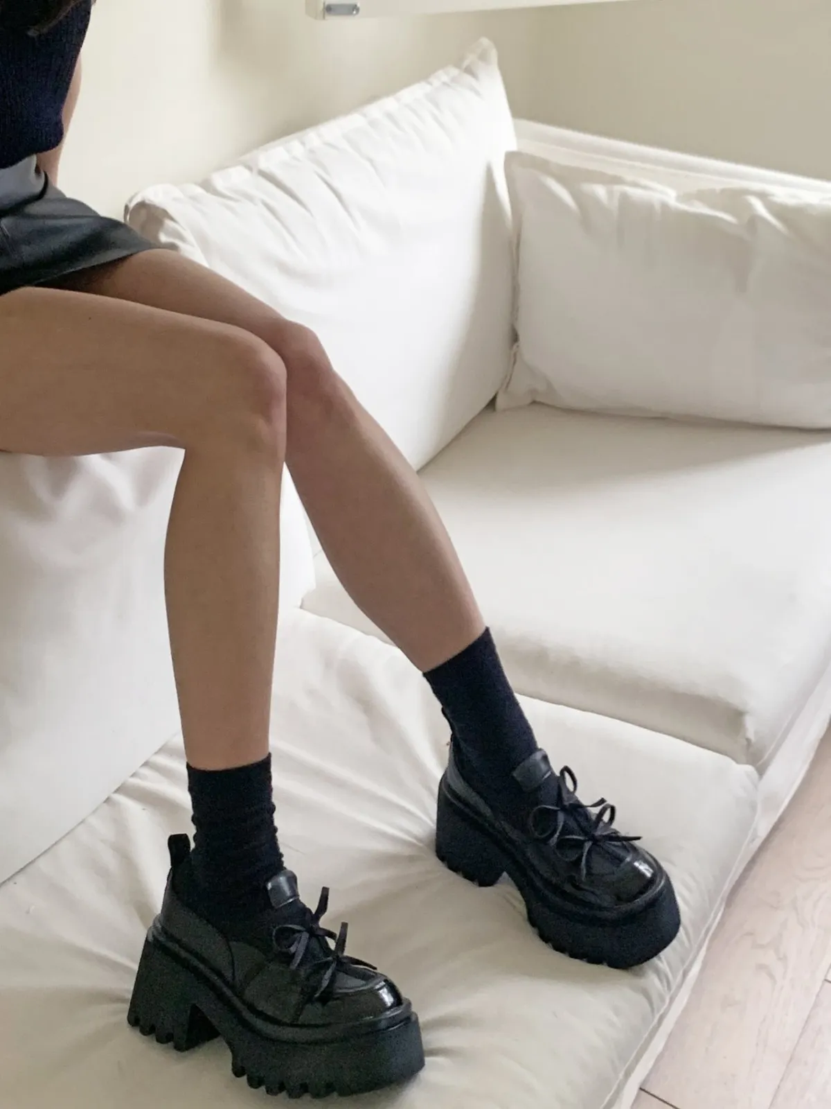 7817巨可愛!我要增高!厚底蝴蝶結粗跟皮鞋