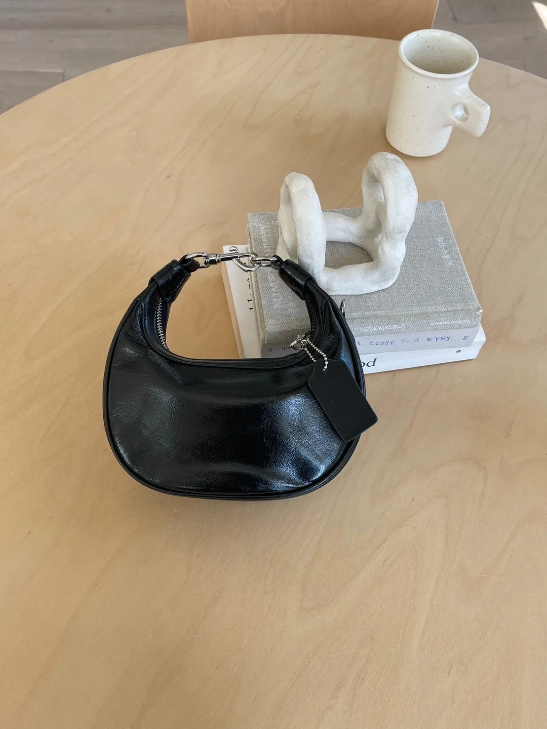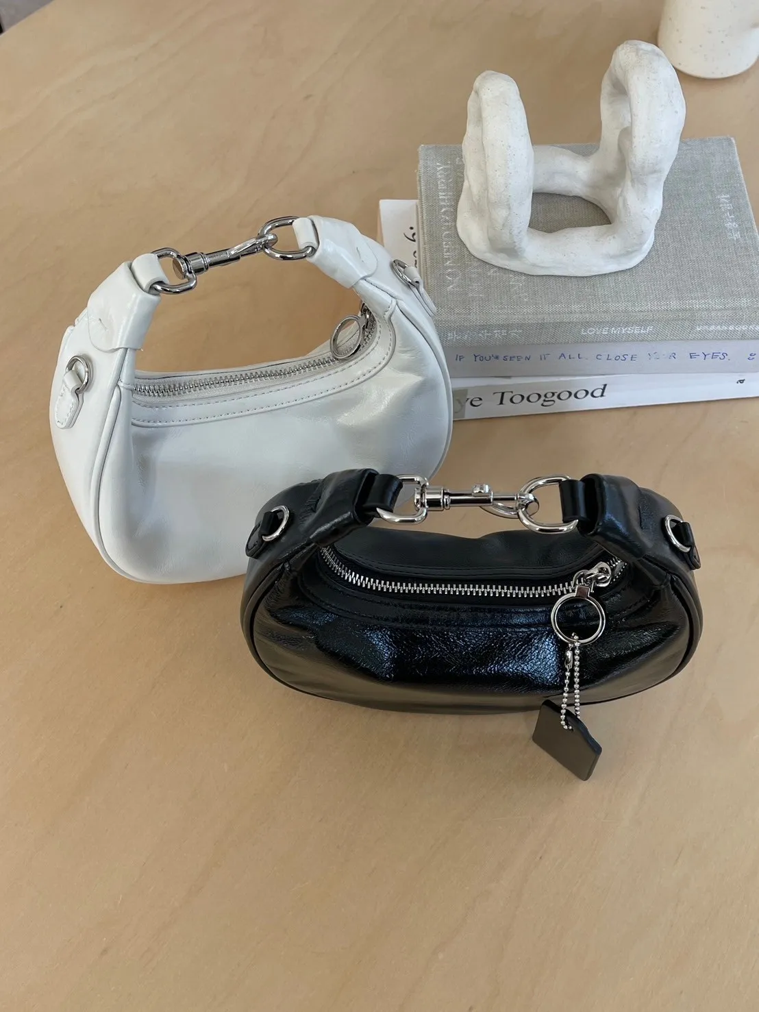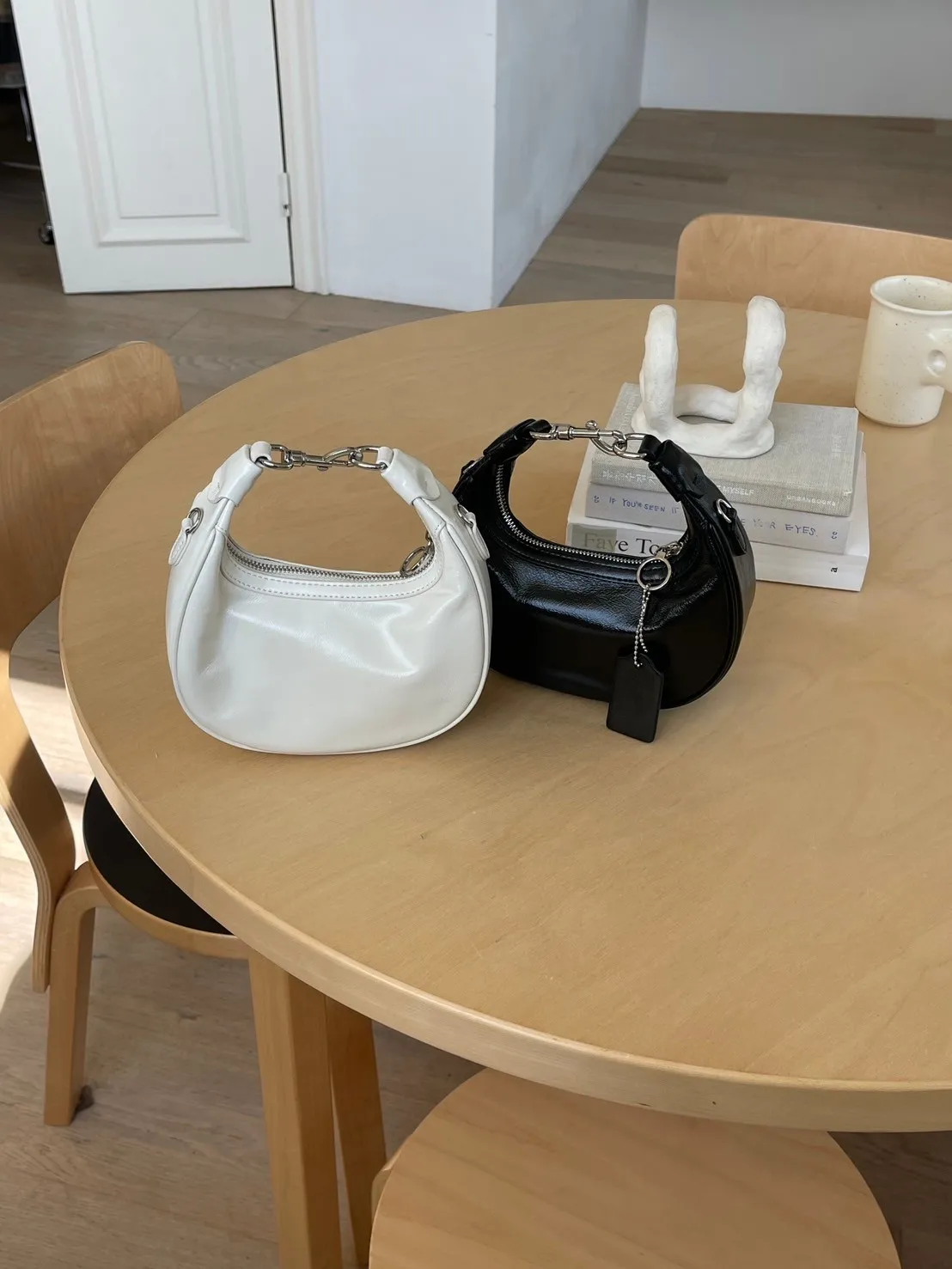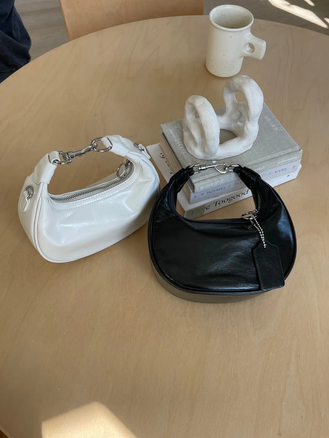 7875 牛皮小眾感扣飾月牙包 彎月包 附背帶