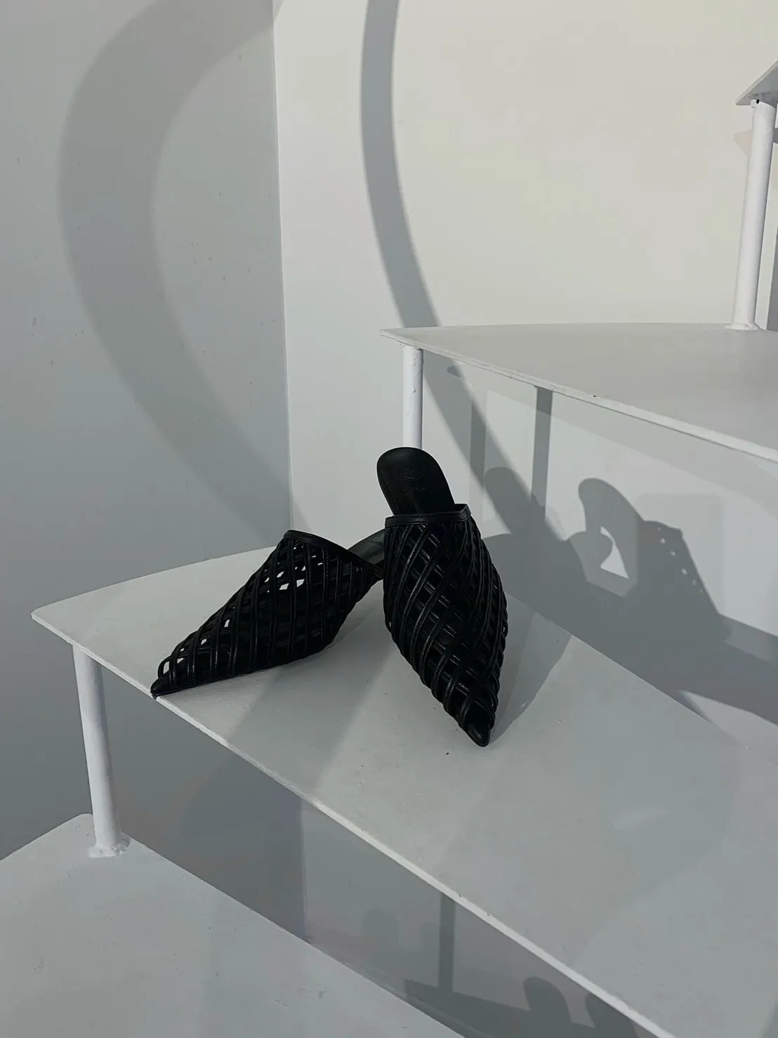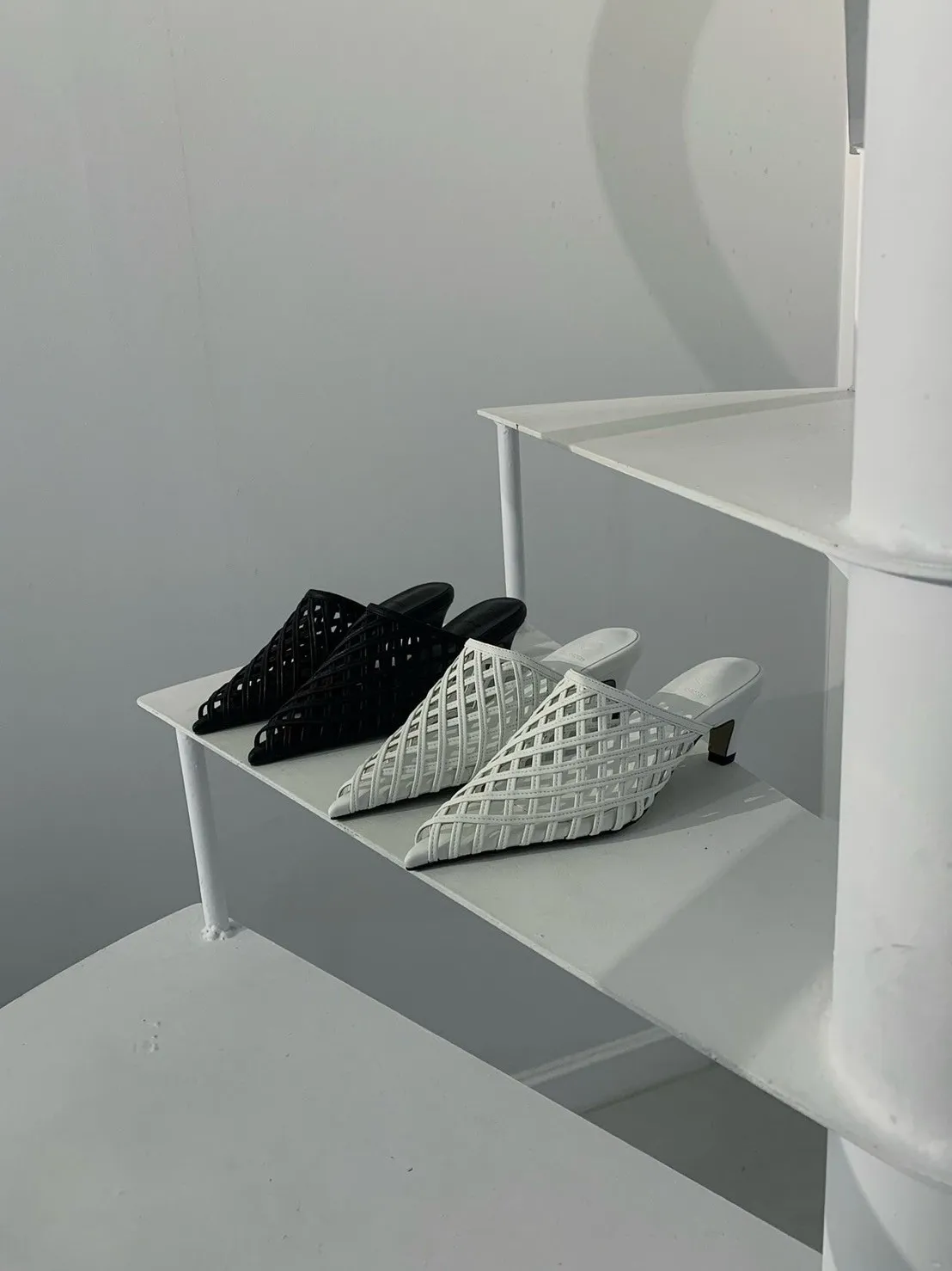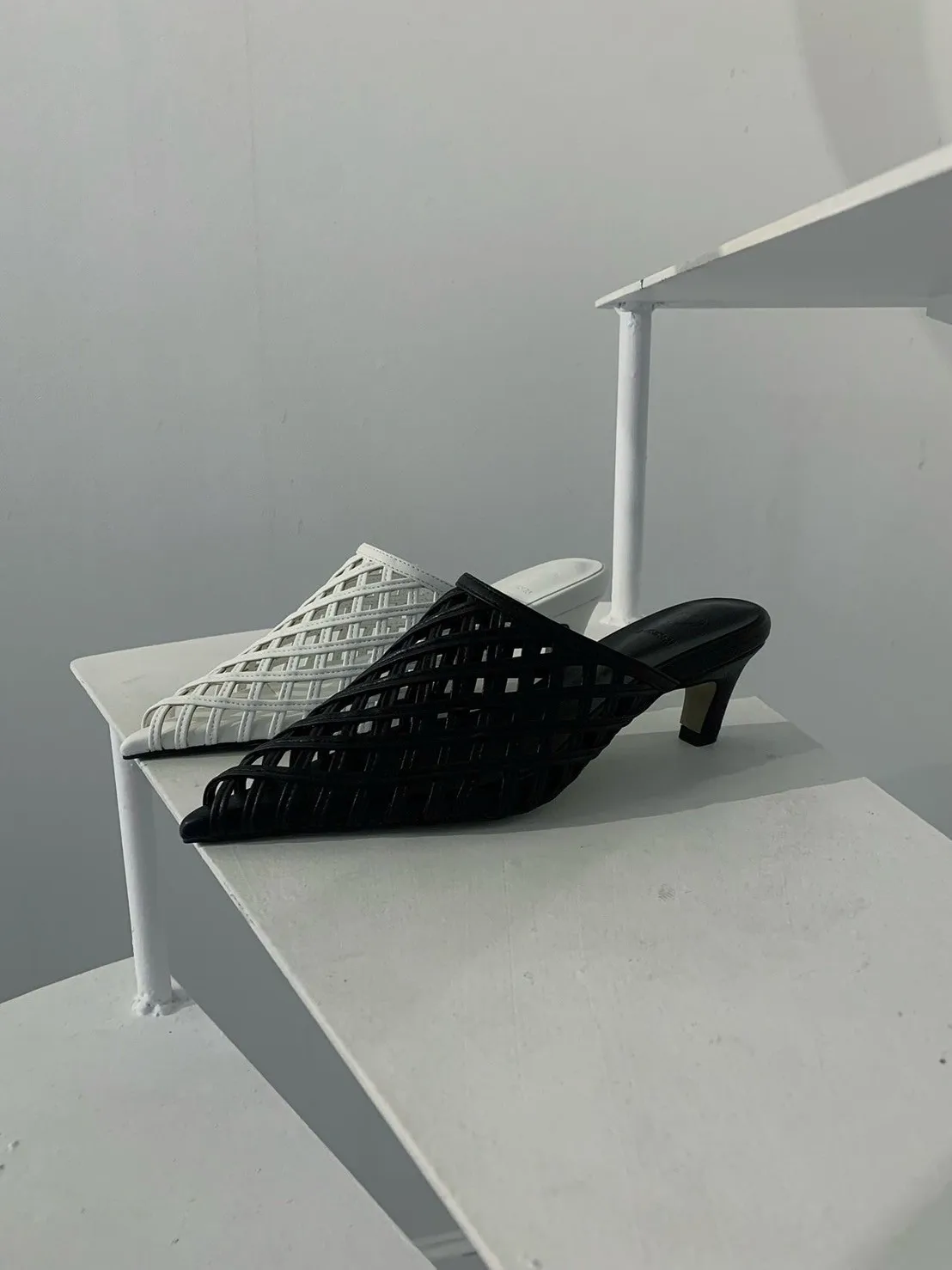 7884 小巴黎優雅網格尖頭貓眼涼鞋