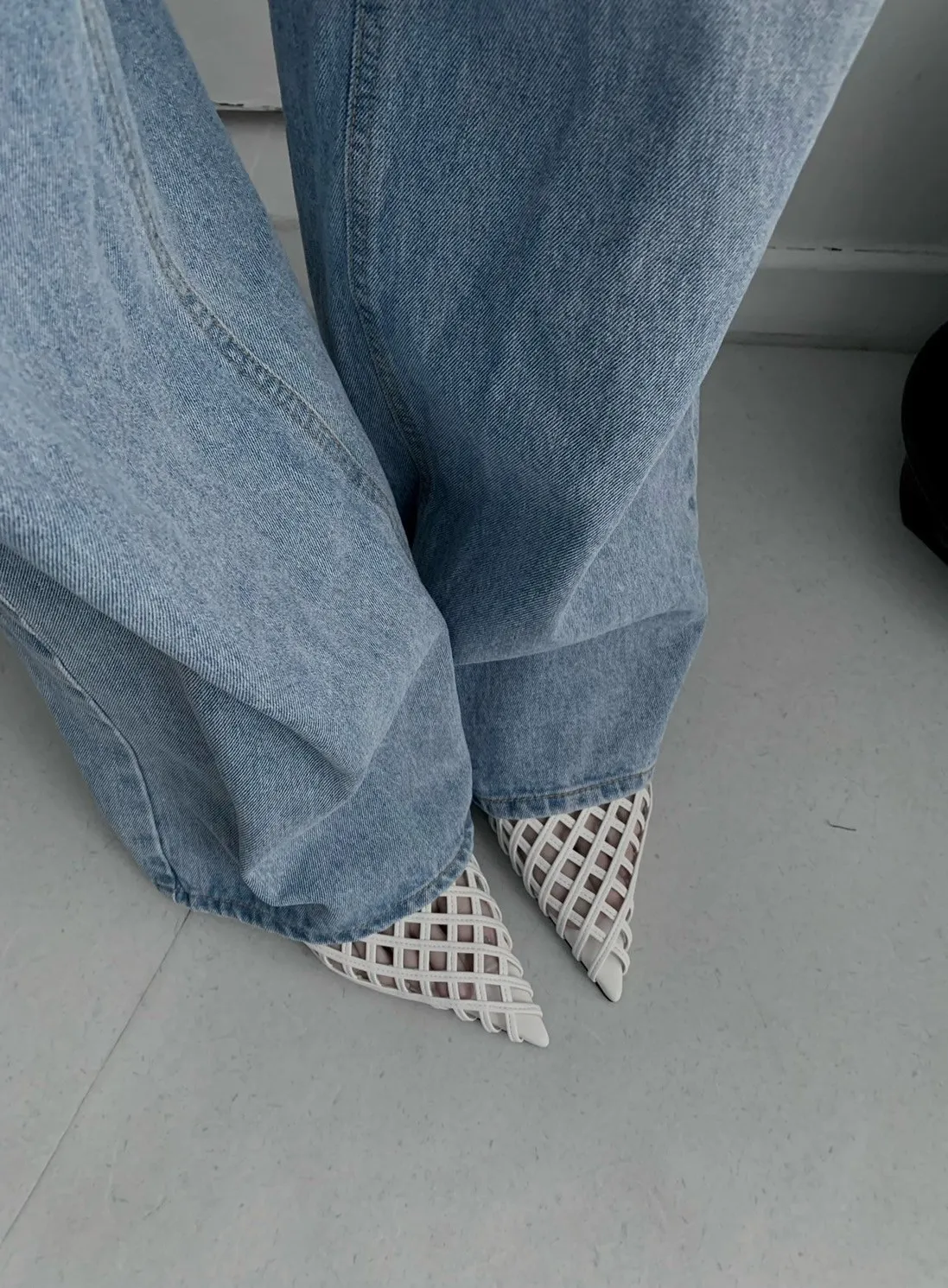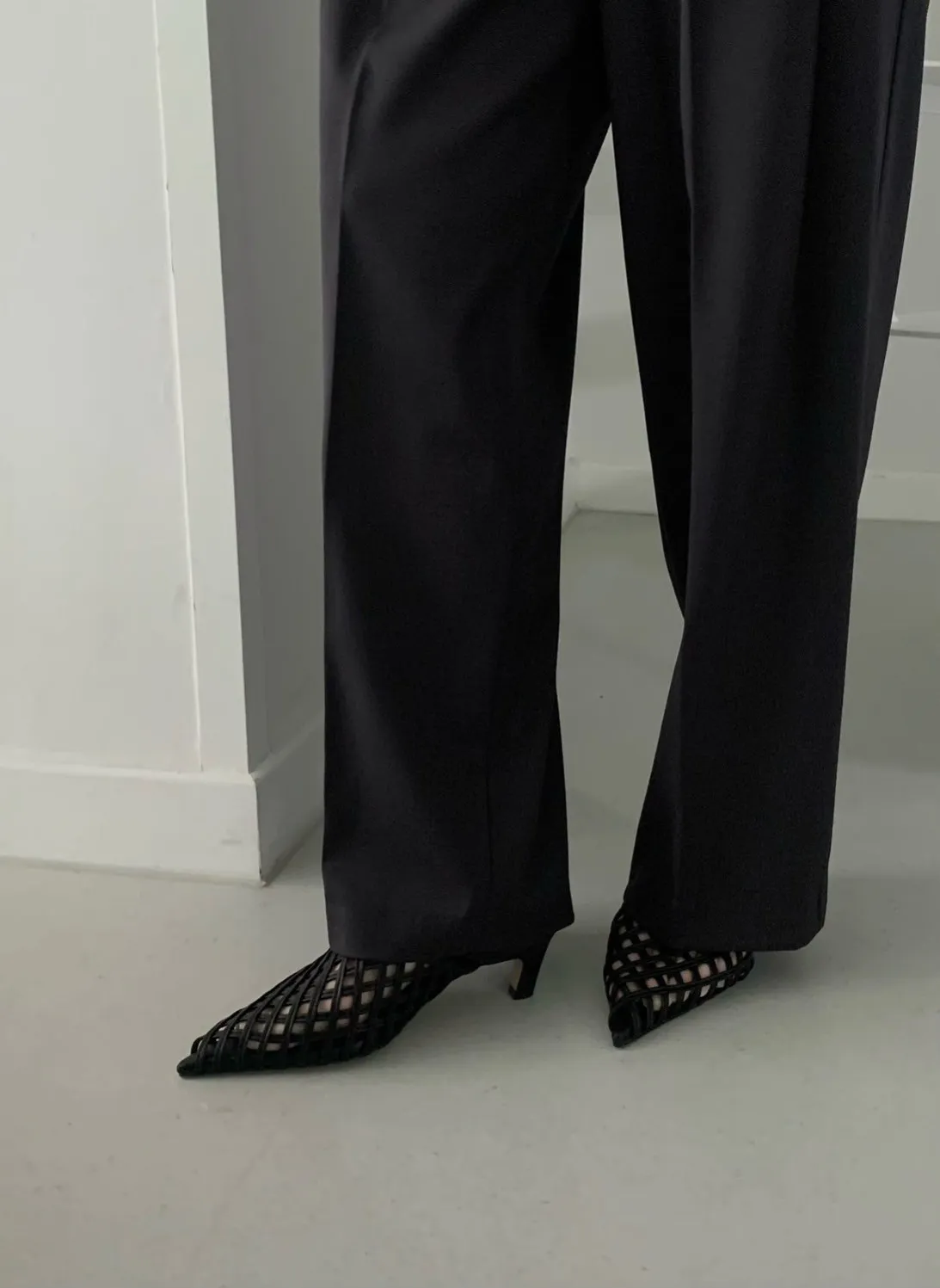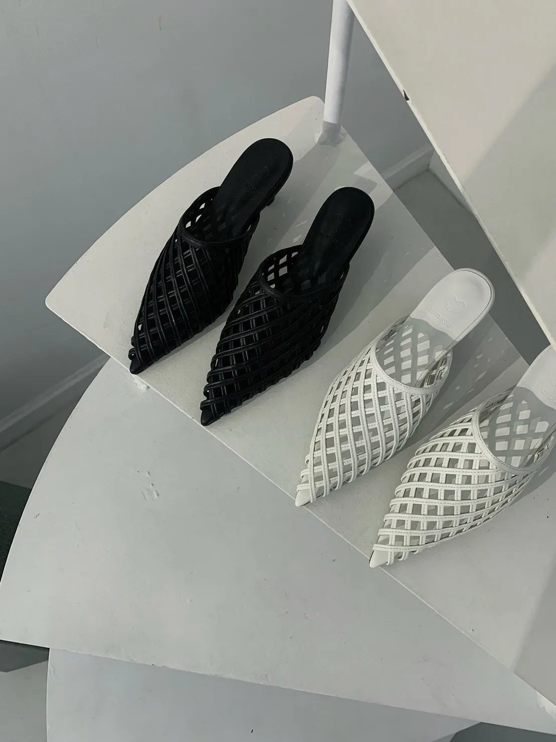 7884 小巴黎優雅網格尖頭貓眼涼鞋