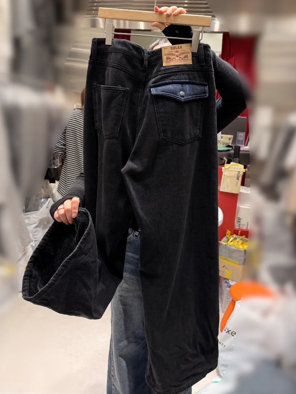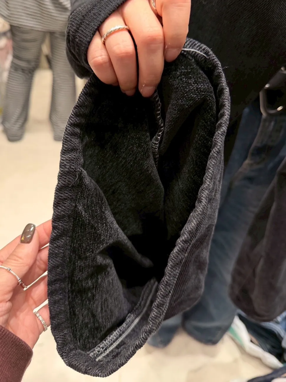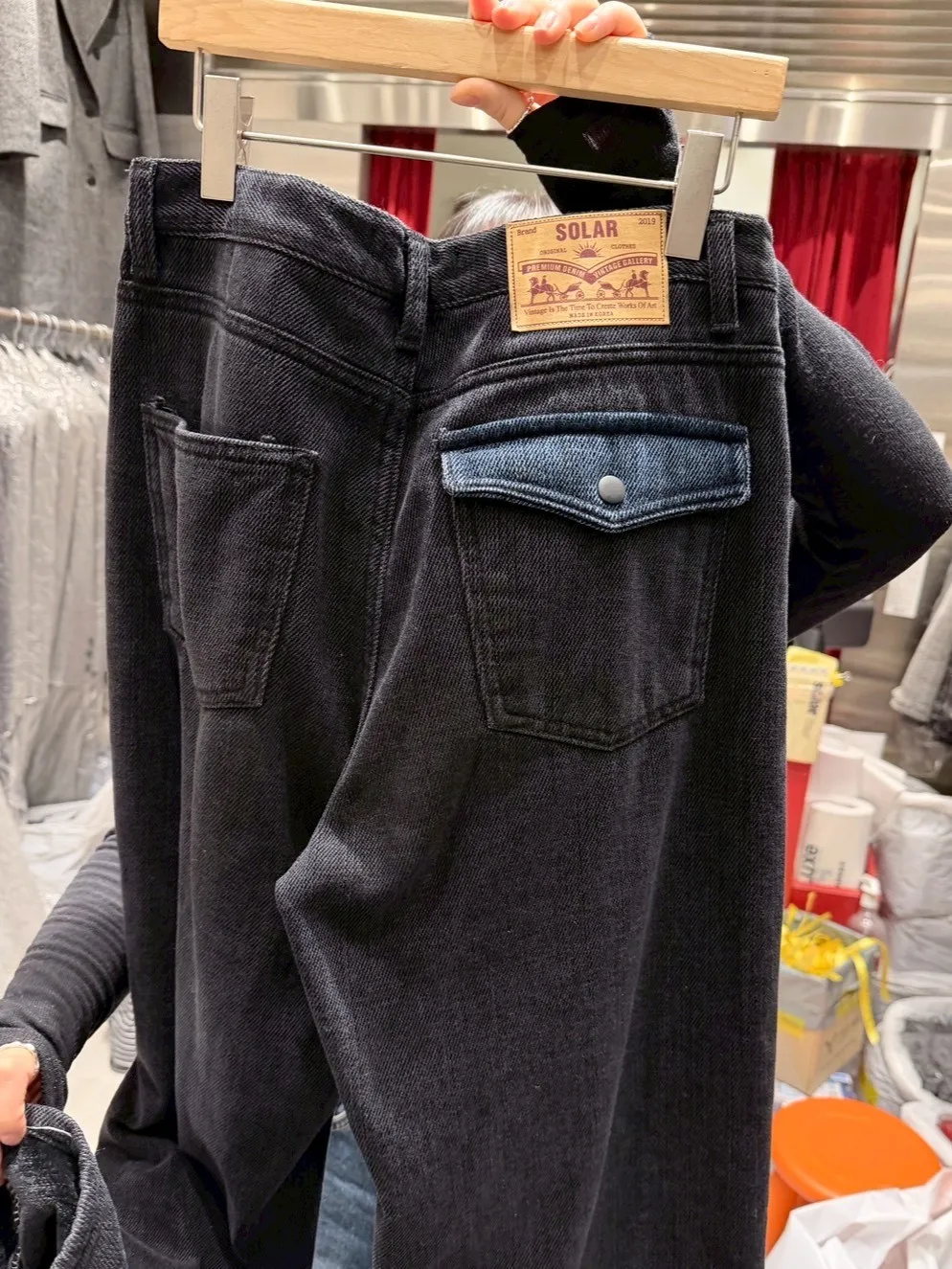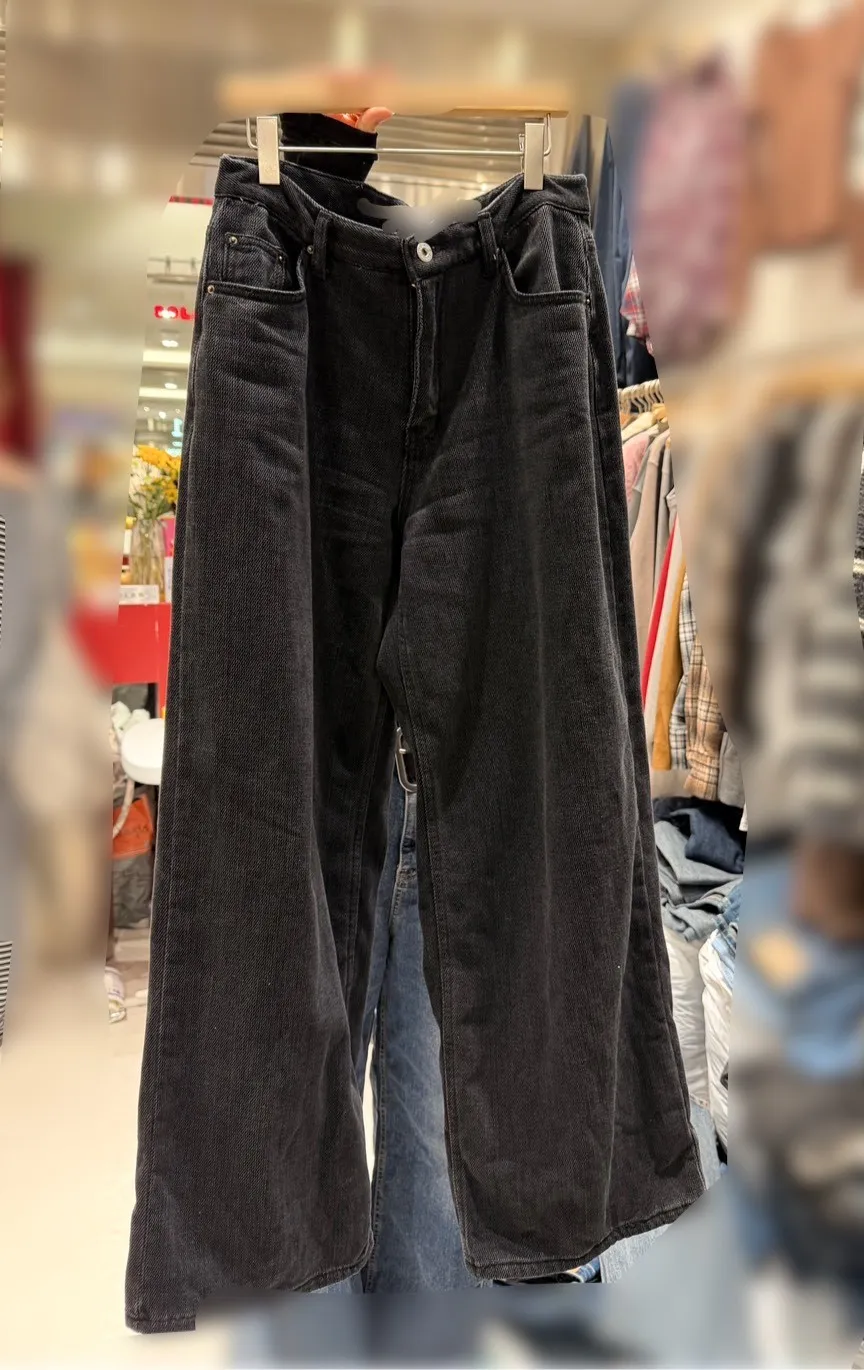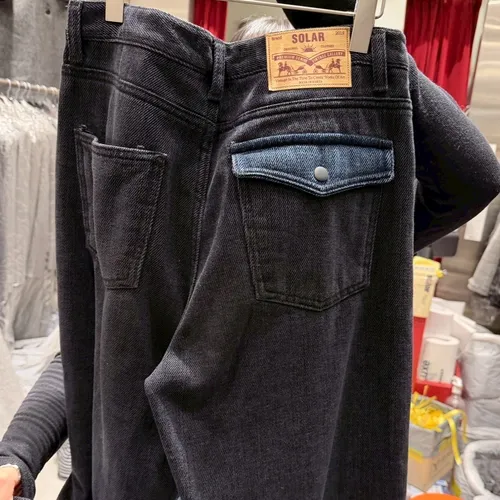 A12007 拼色口袋內裡絲絨牛仔褲