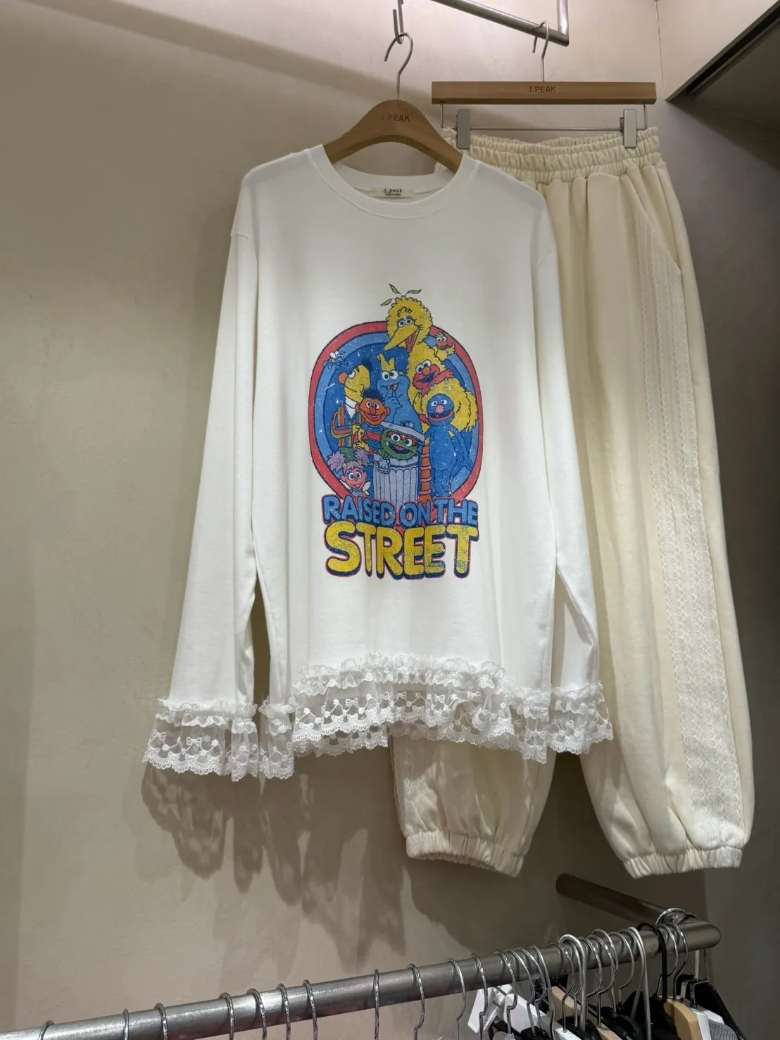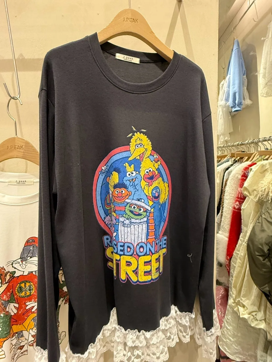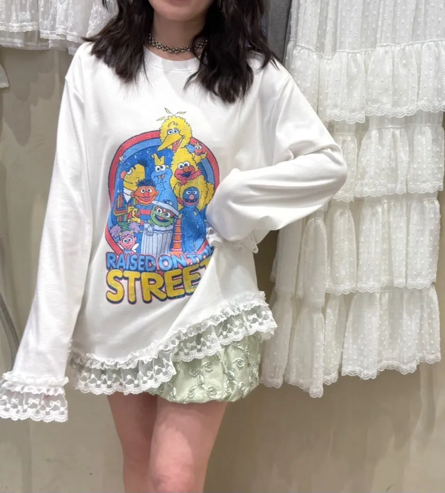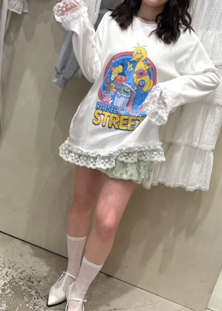 8028 芝麻街蕾絲拼接軟綿長袖TEE