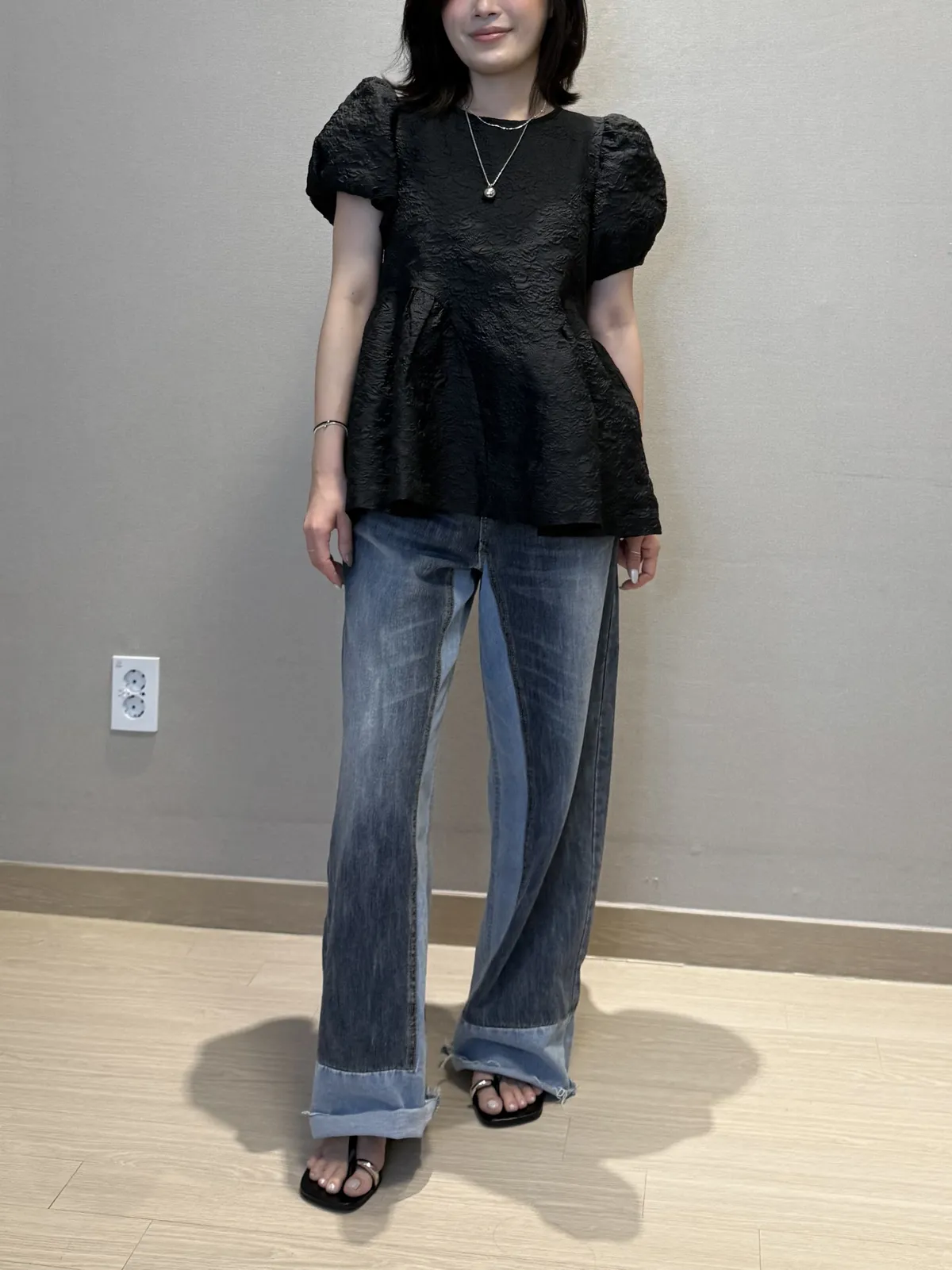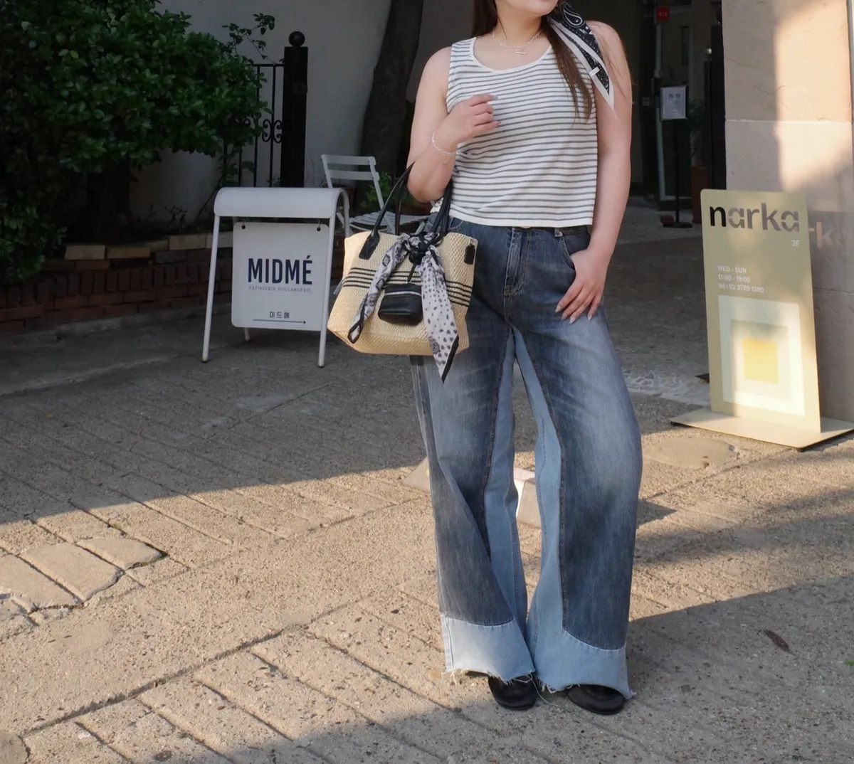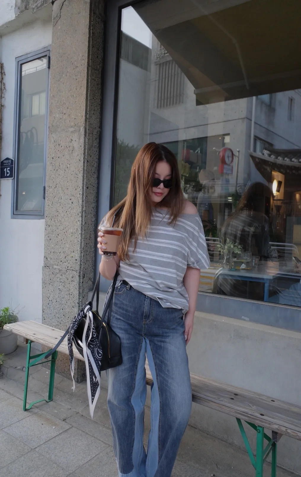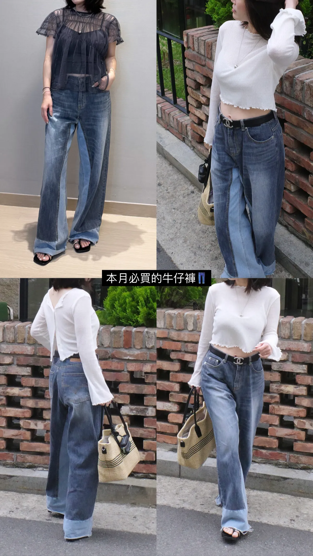 8421 雙色拼接牛仔褲