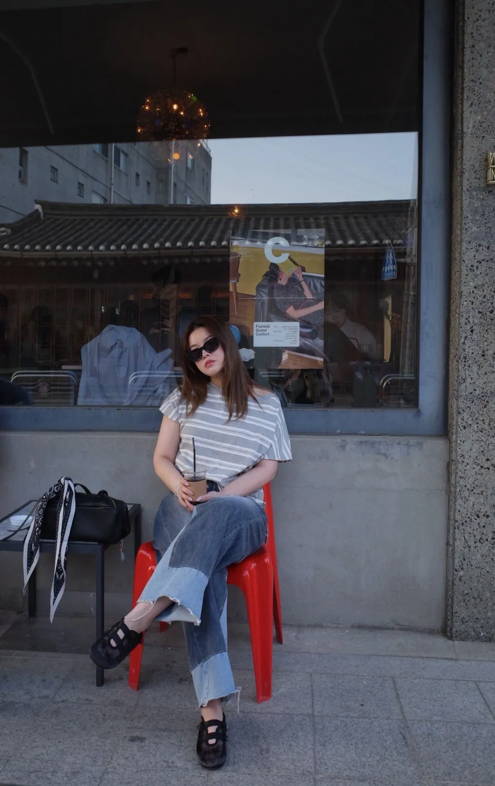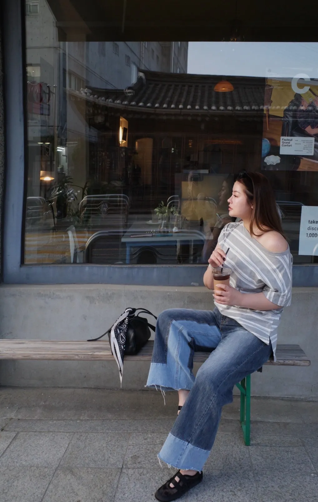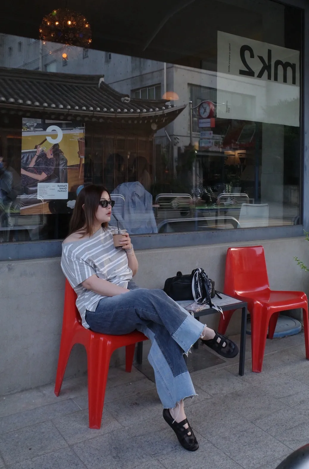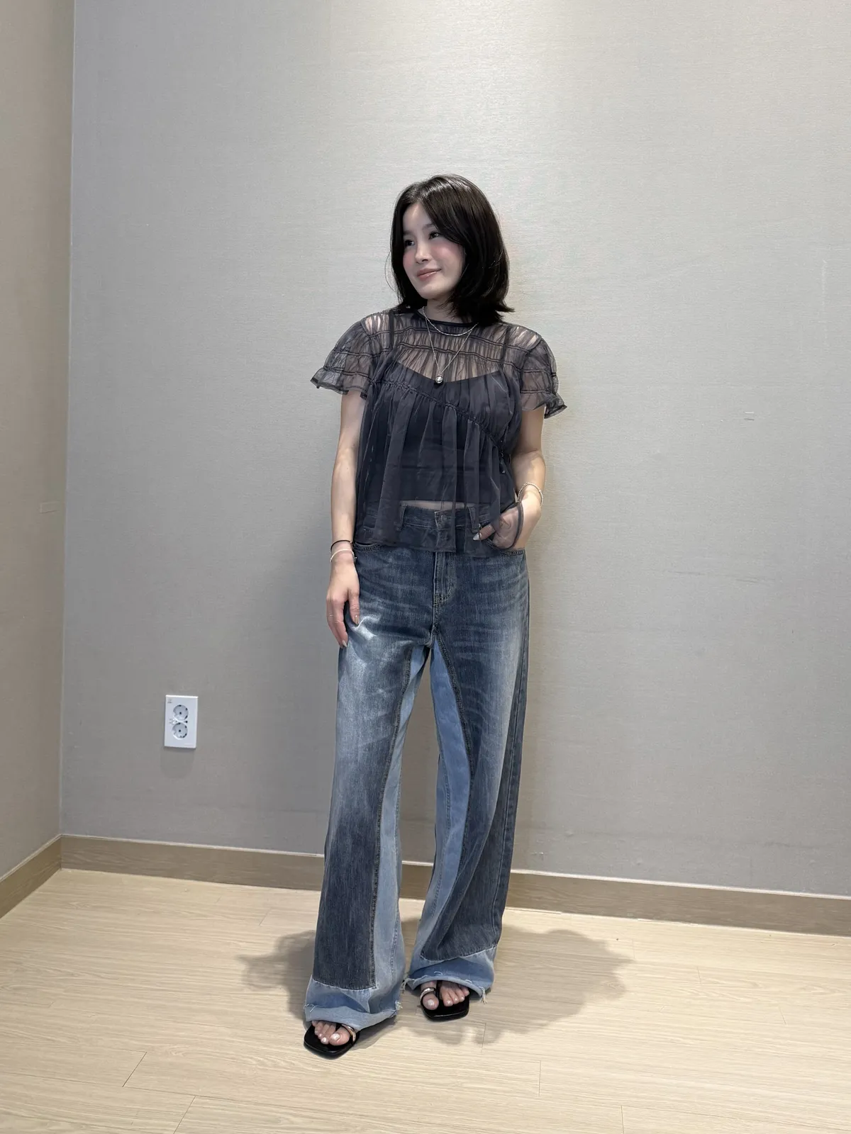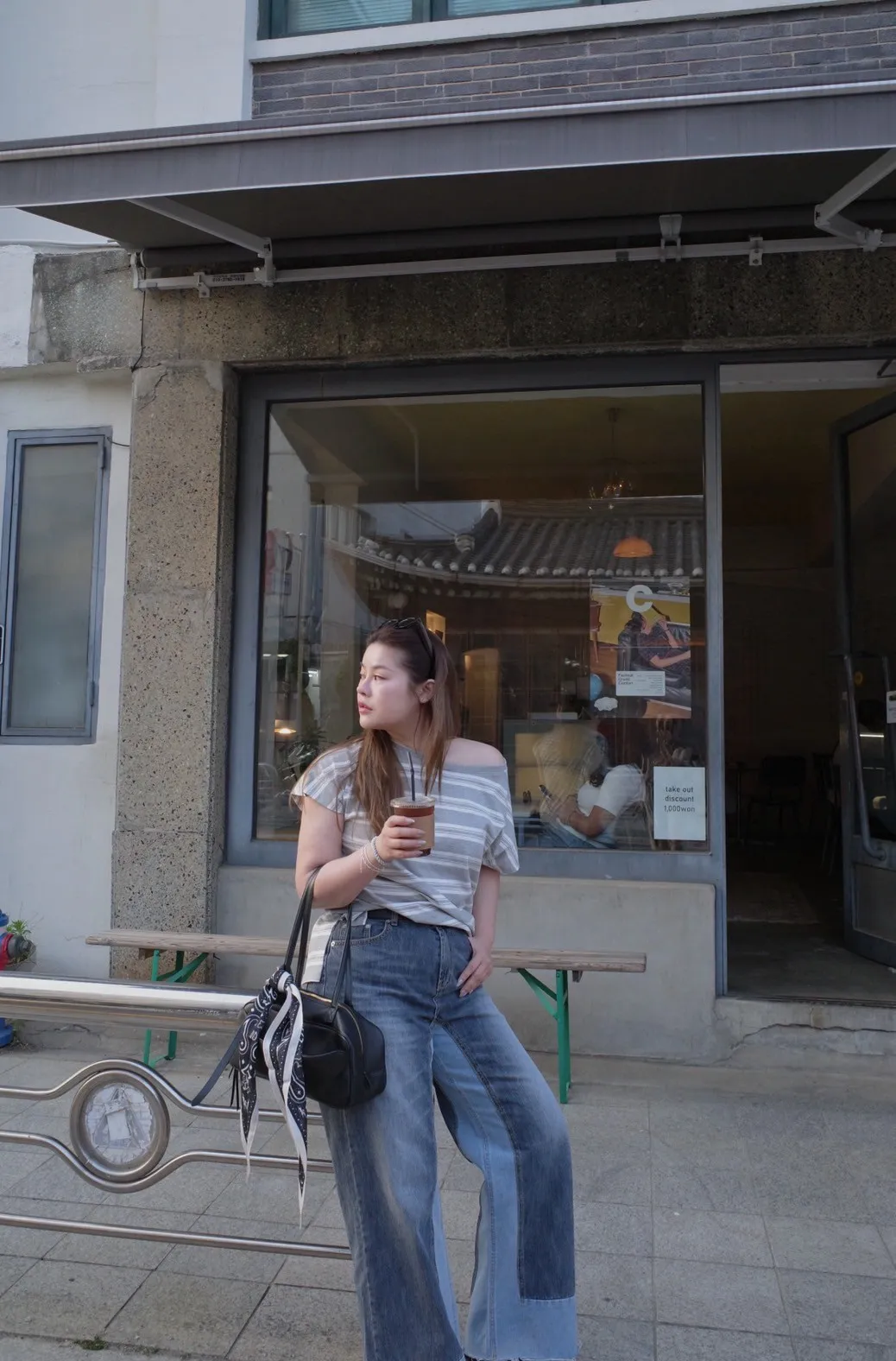 8421 雙色拼接牛仔褲