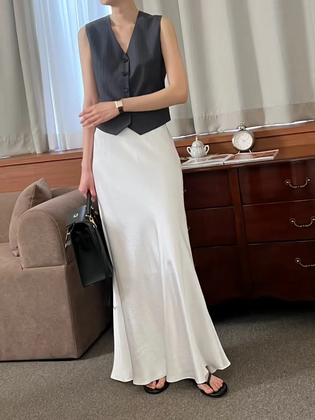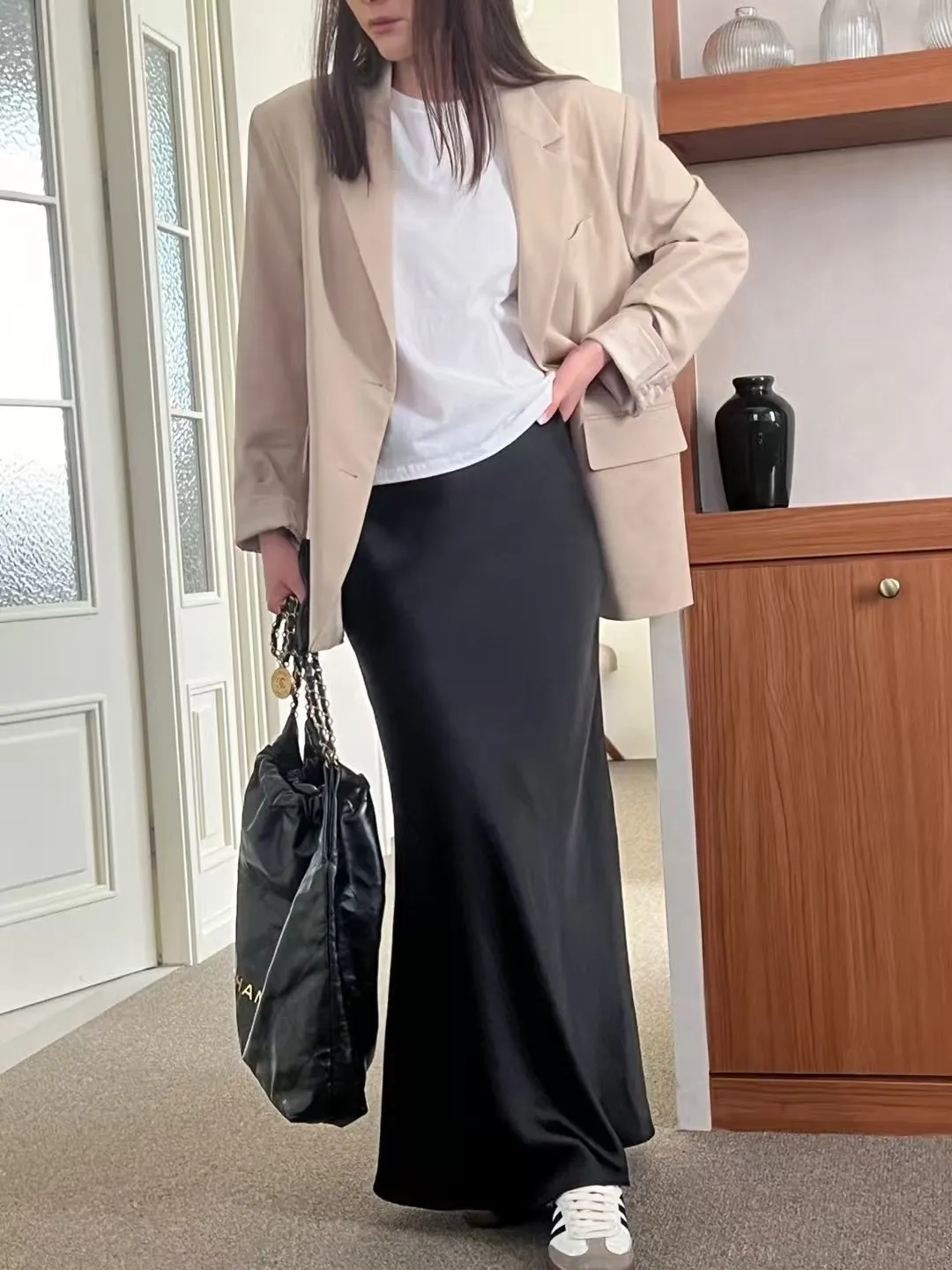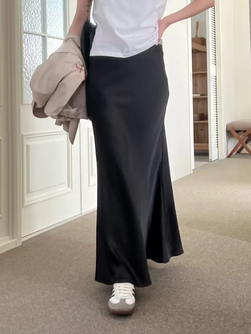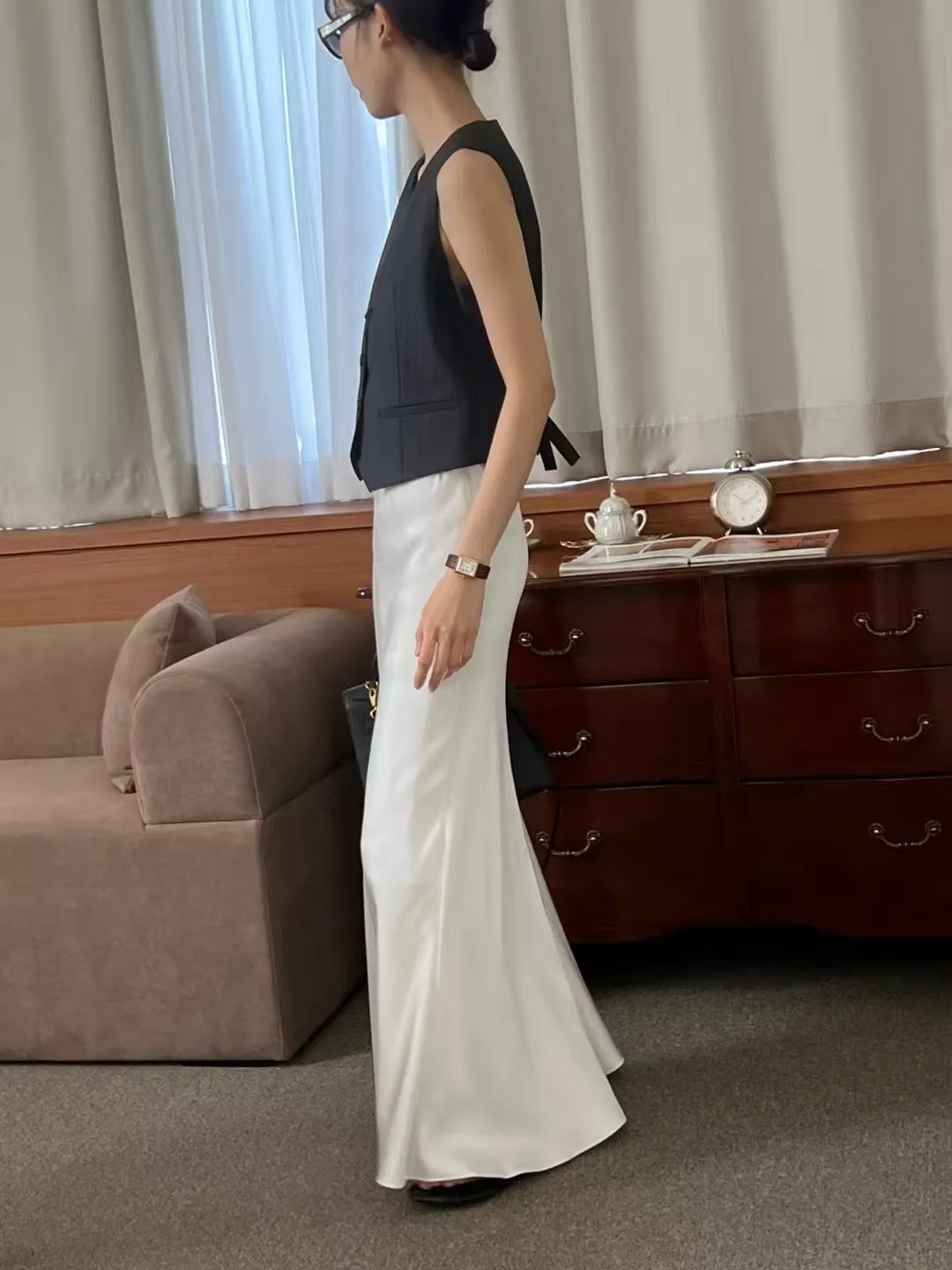 8433 珍珠緞光後開衩魚尾彈性長裙