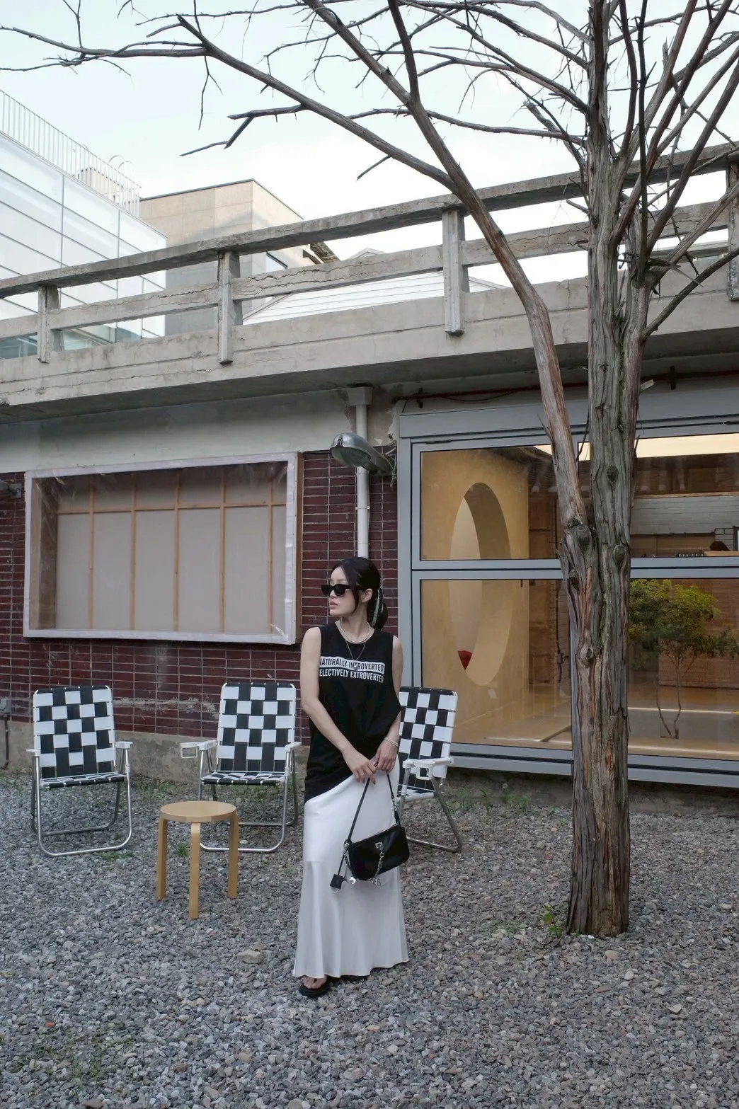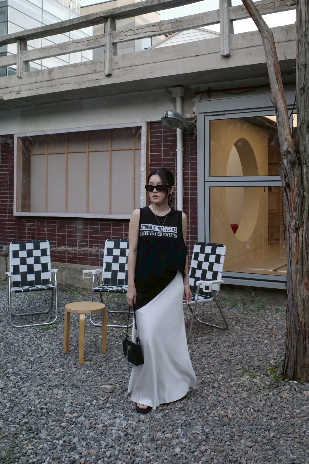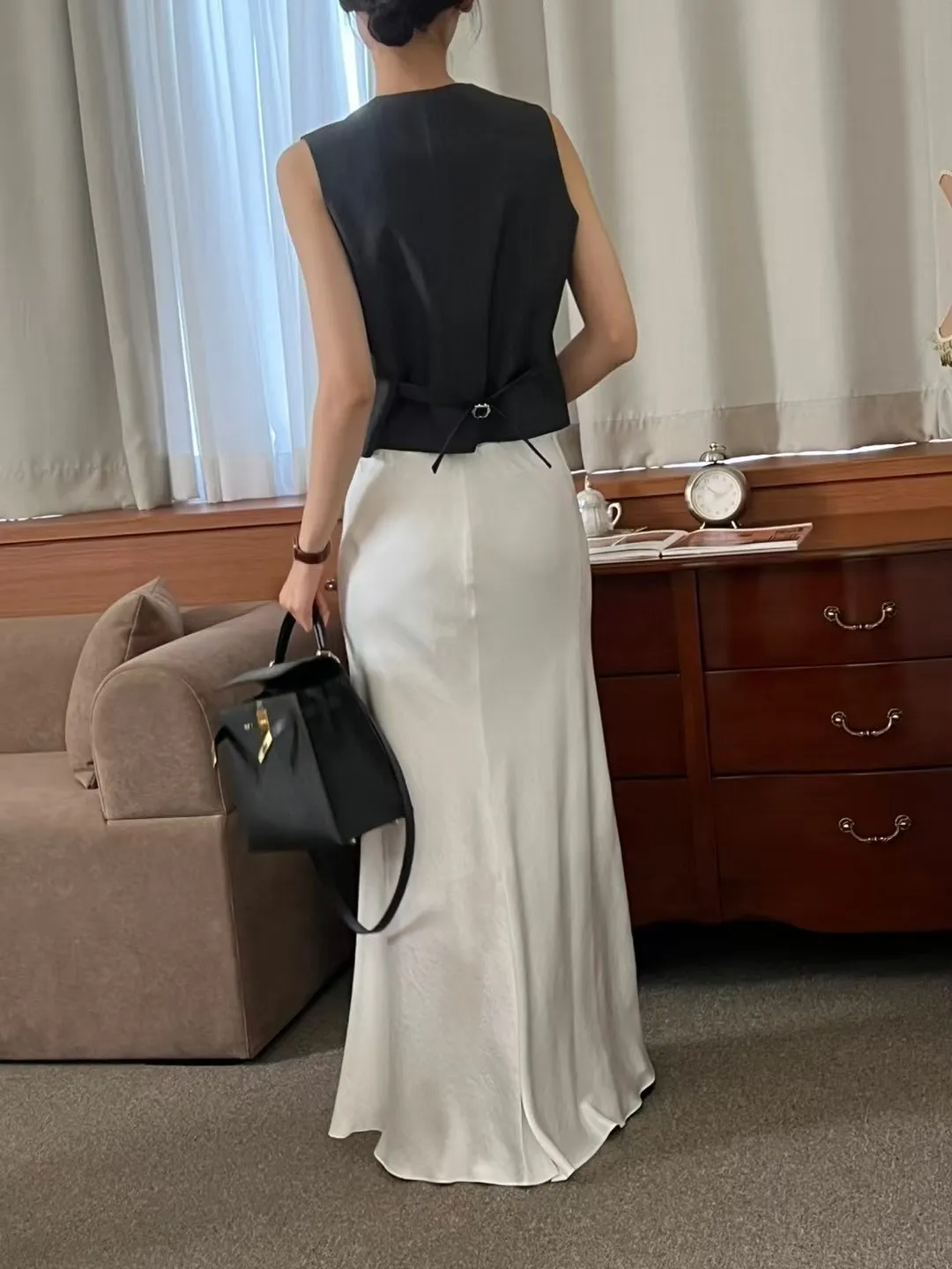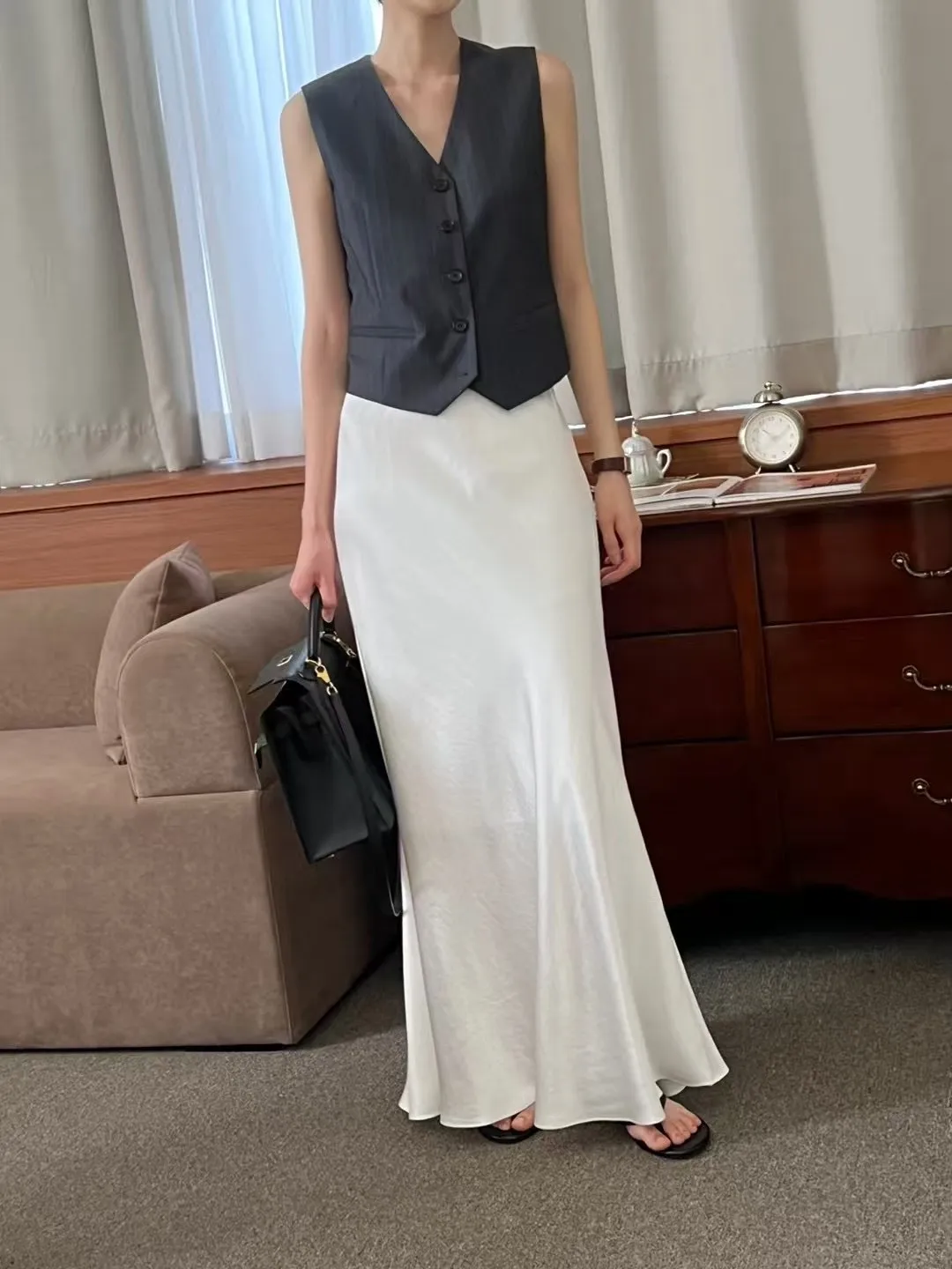 8433 珍珠緞光後開衩魚尾彈性長裙