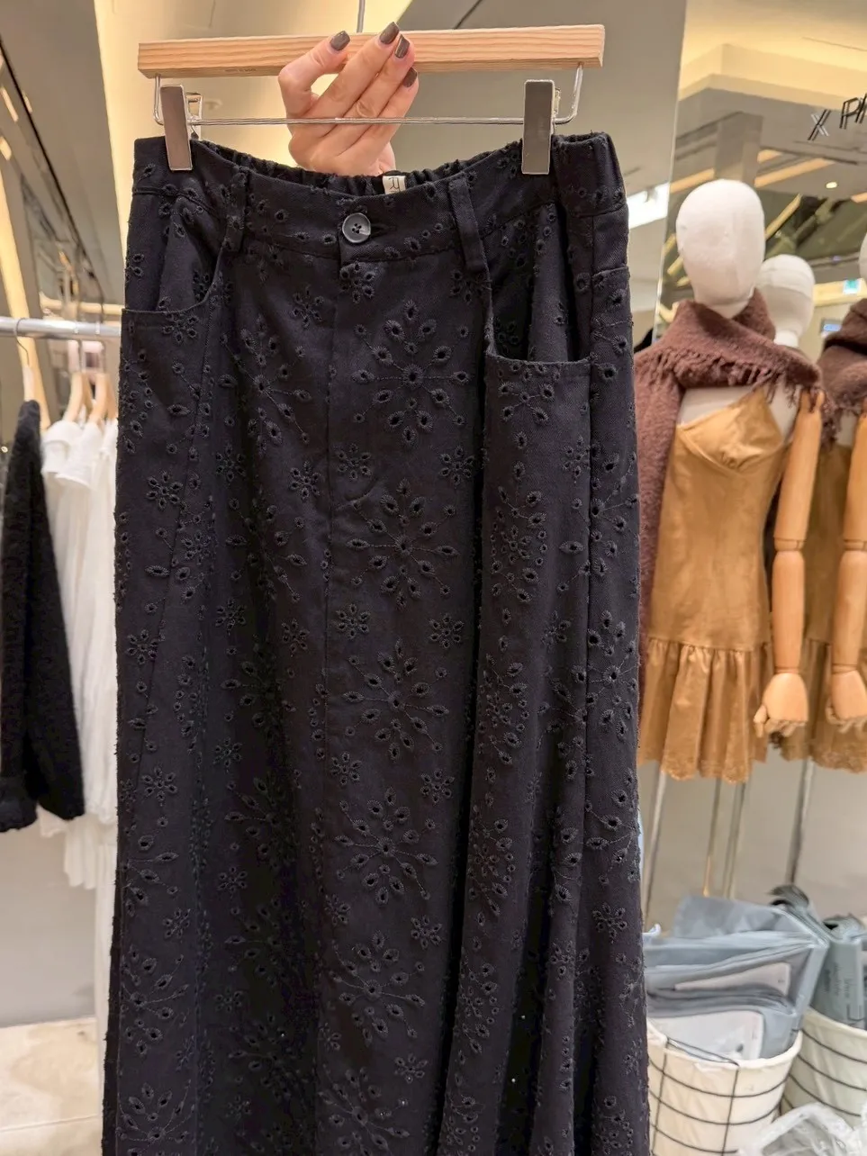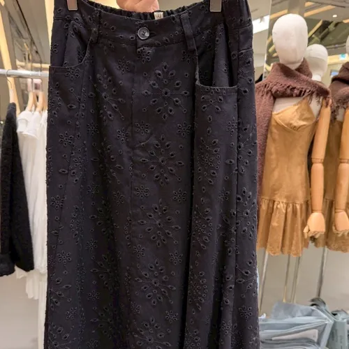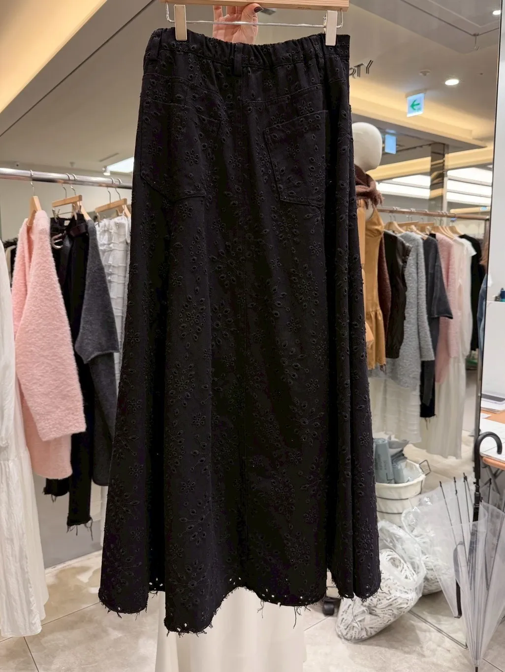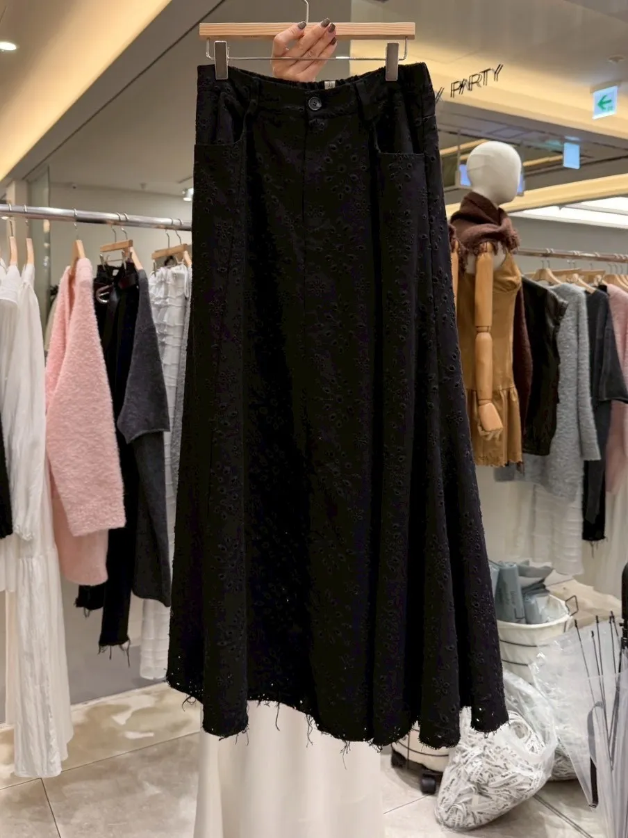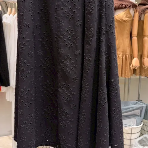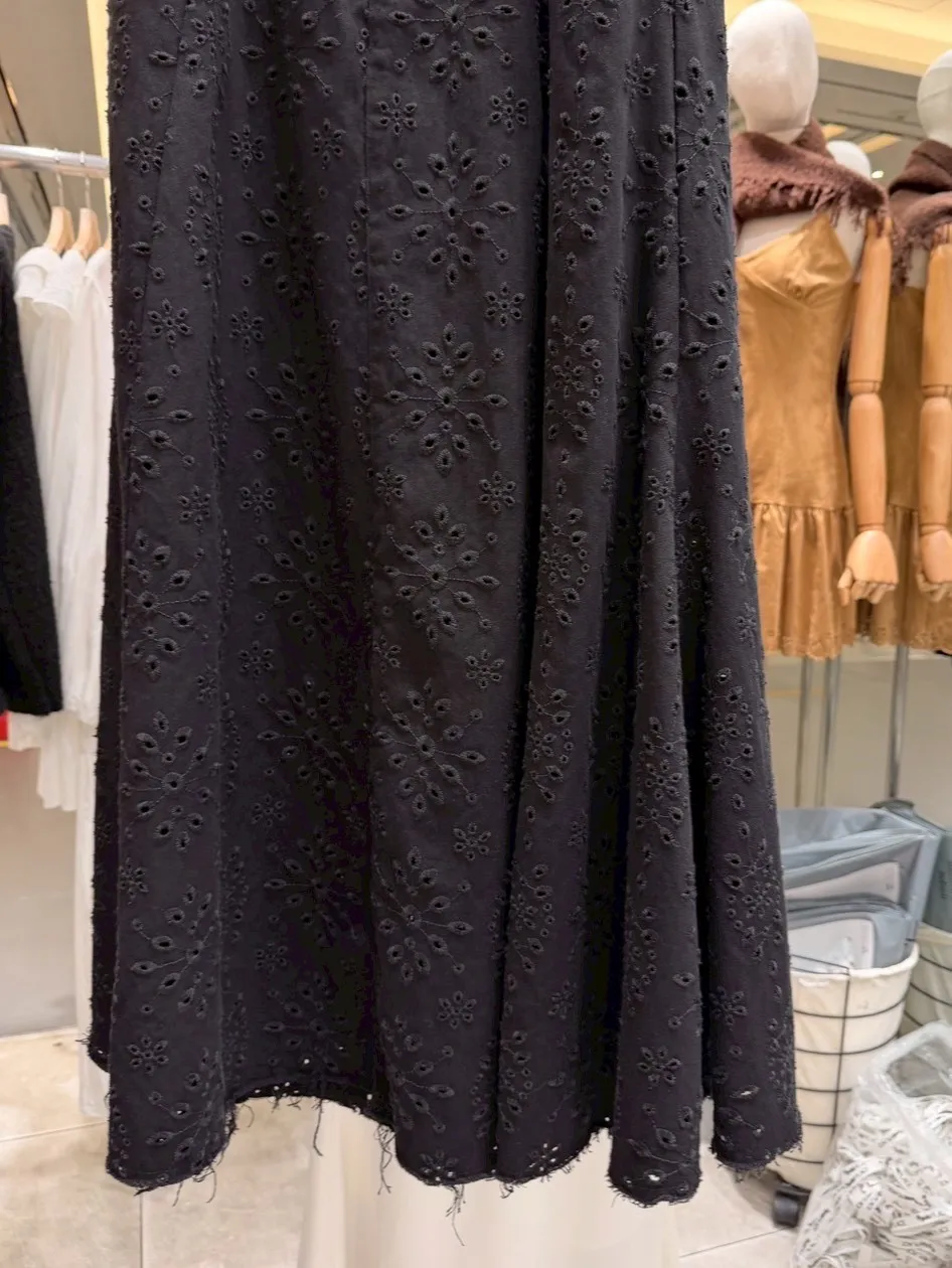 A10010 甜帥風簍空雕花彈性腰圍長裙