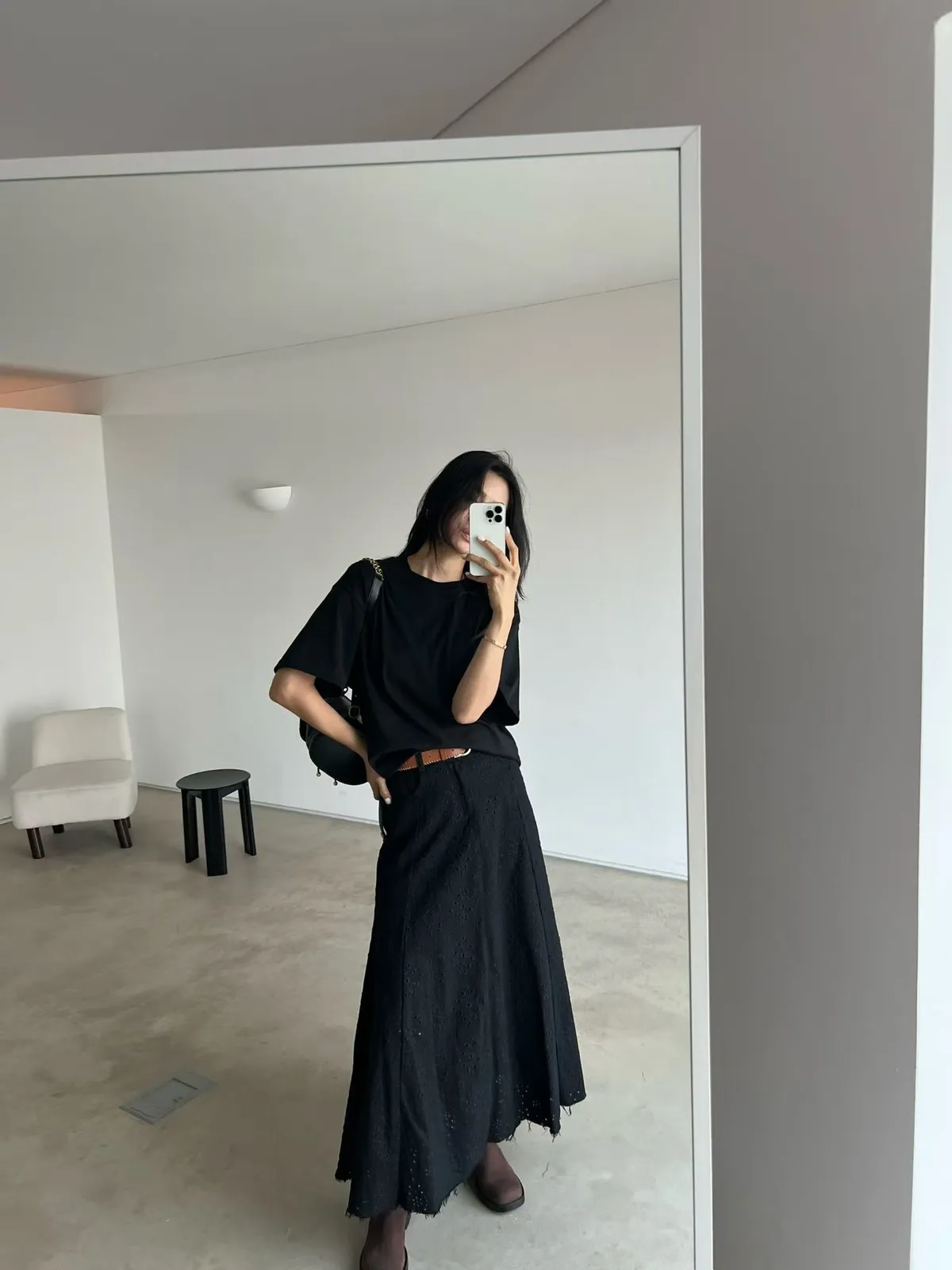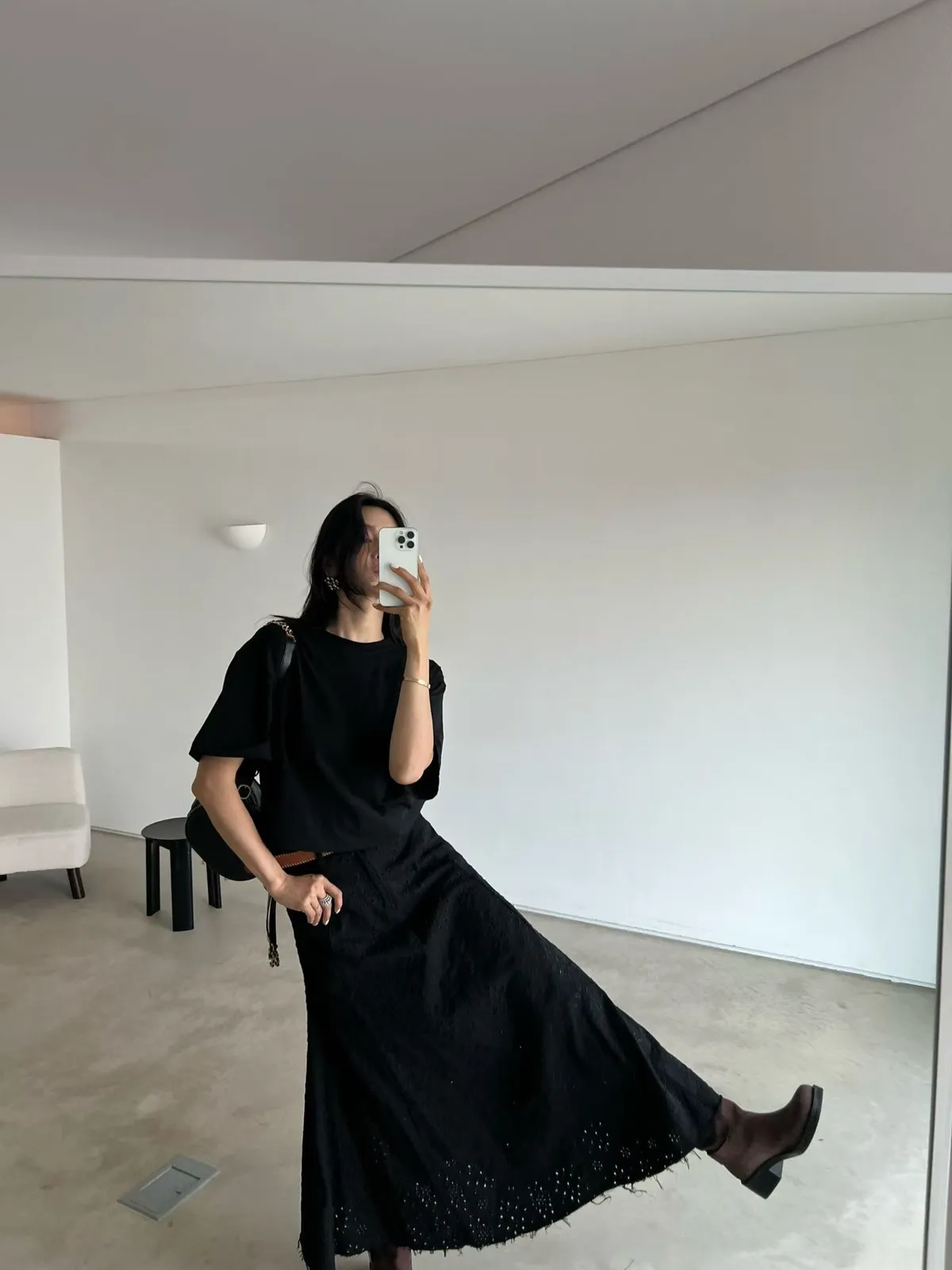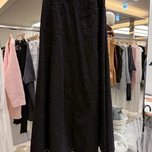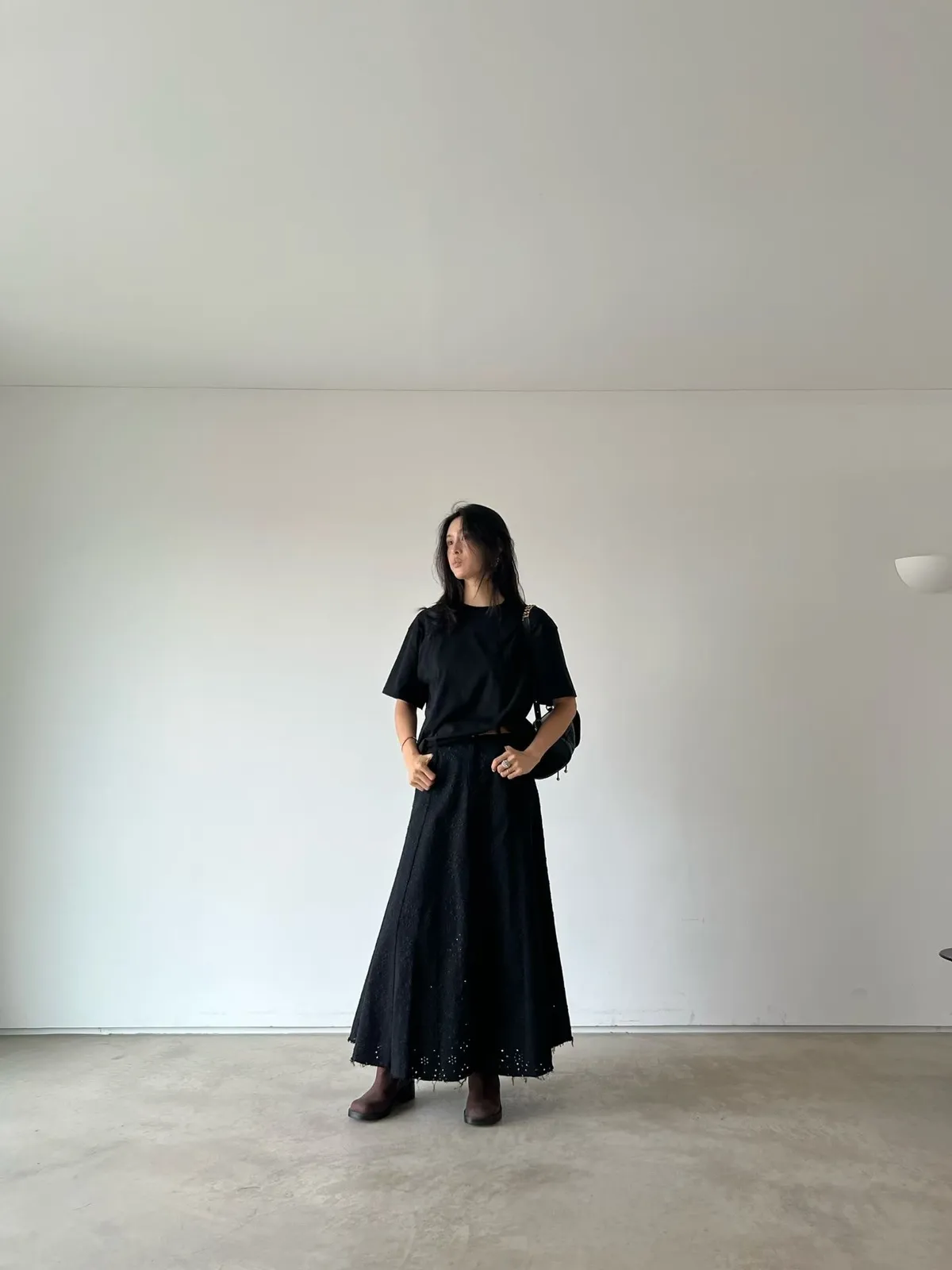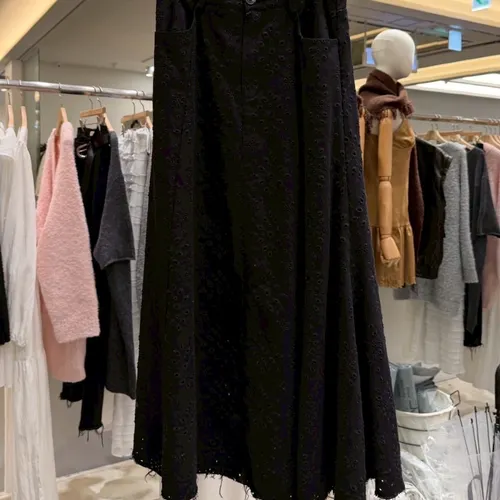 A10010 甜帥風簍空雕花彈性腰圍長裙