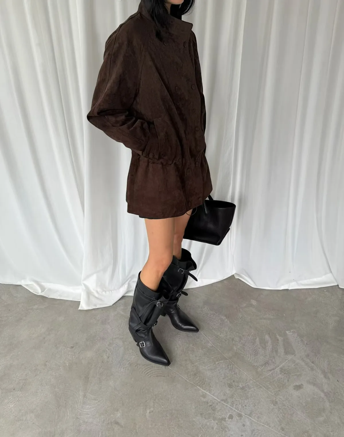 A10028 雙排釦麂皮絨外套