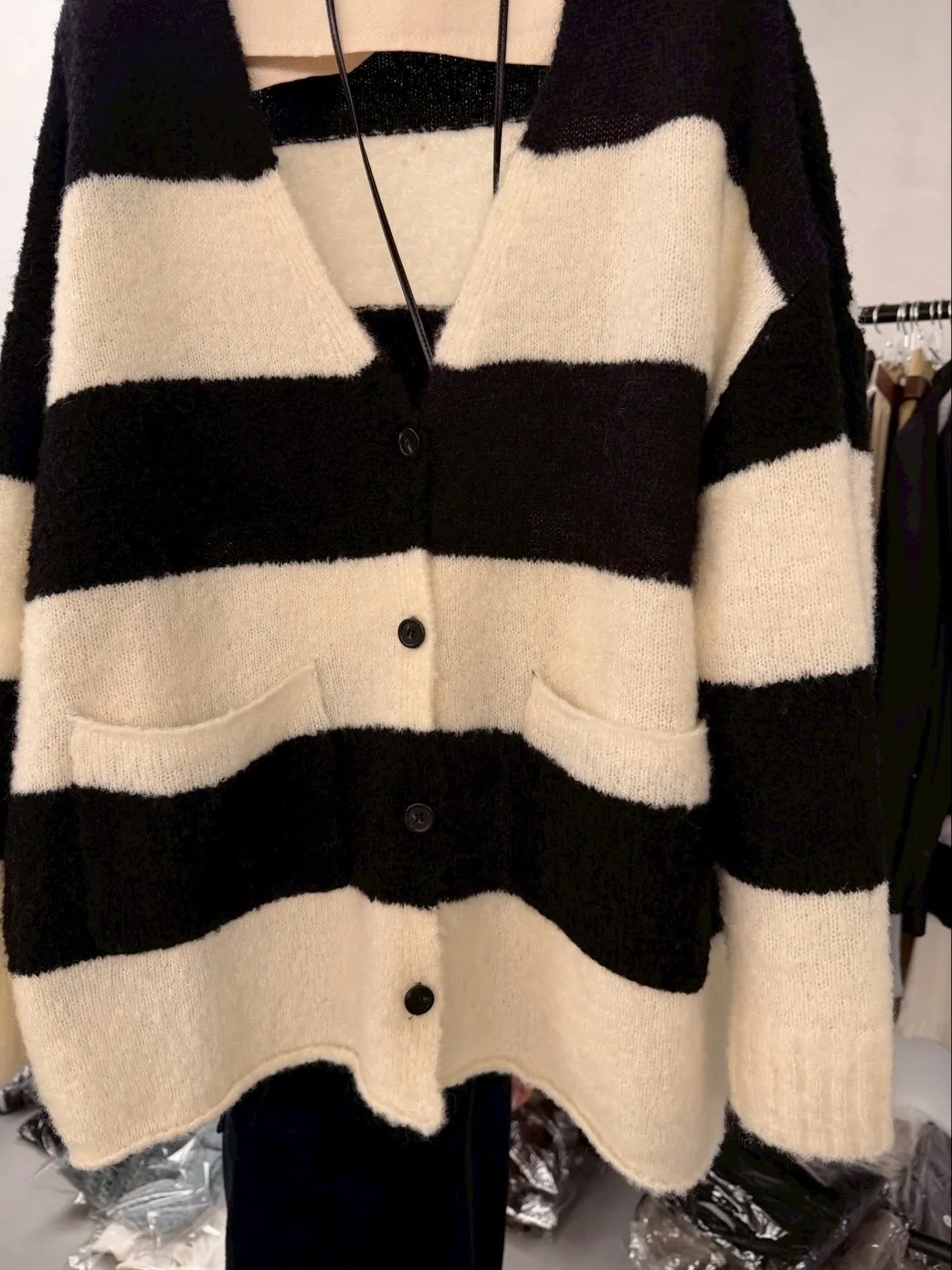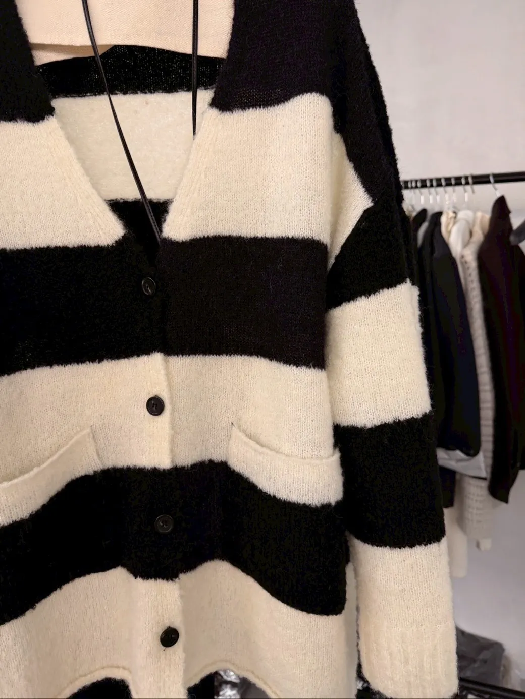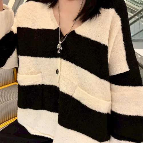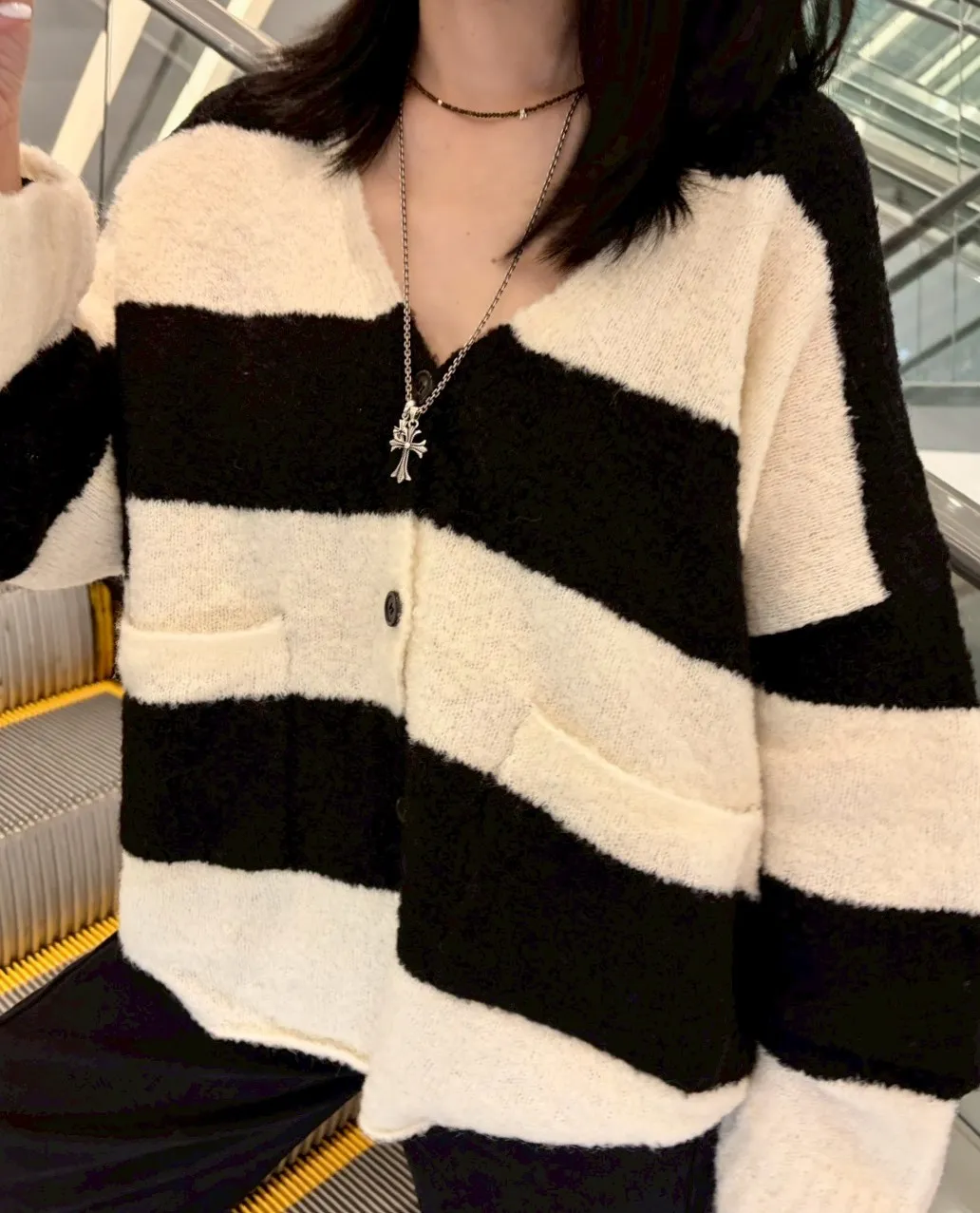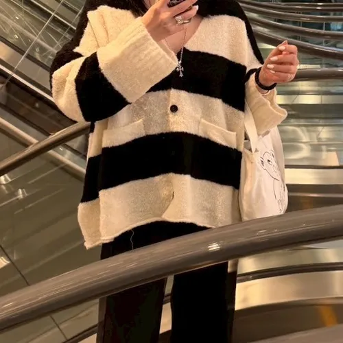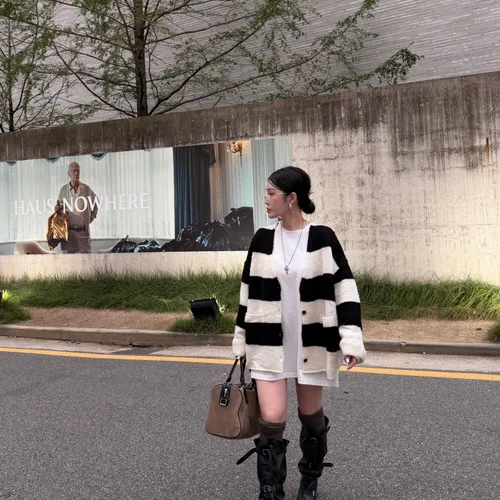 A10031 神搭款黑白條紋開襟外套(羊毛)