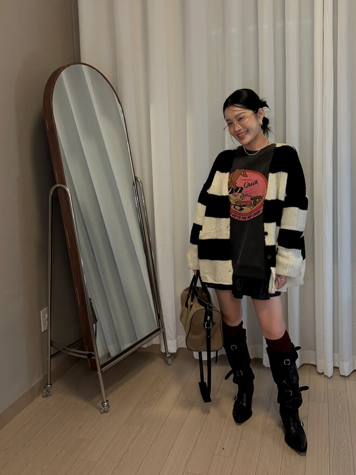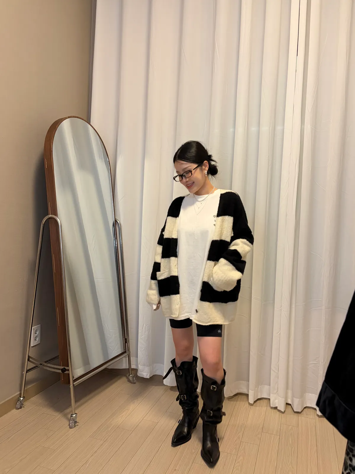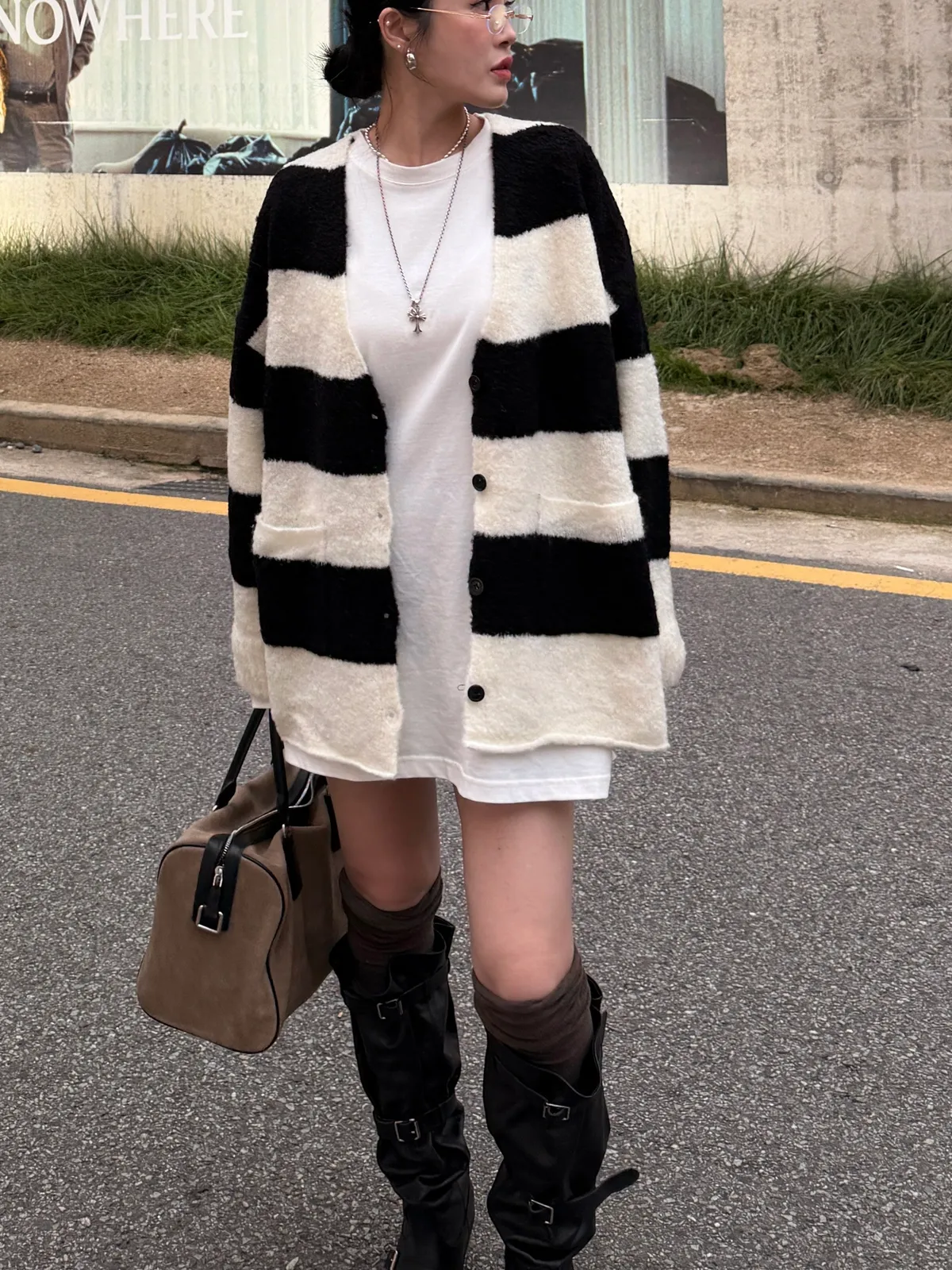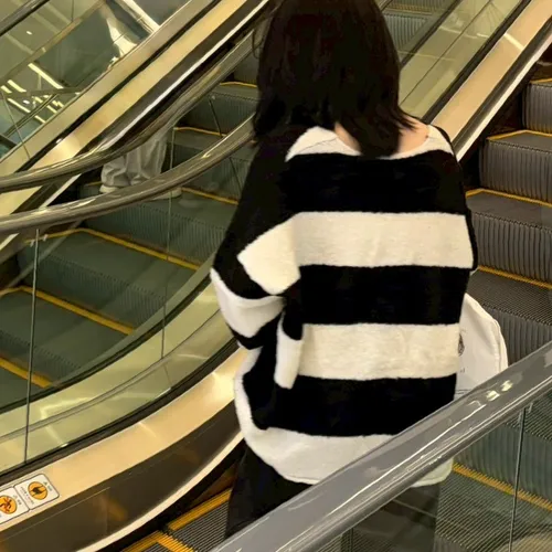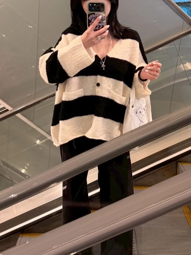 A10031 神搭款黑白條紋開襟外套(羊毛)